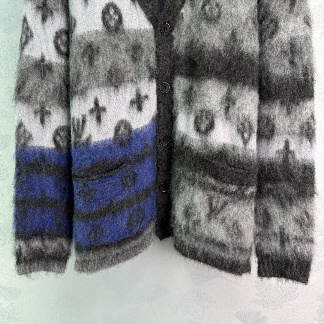 Details: Early Autumn Mohair Knit Cardigan, Loose Fit, Gradient老花, Unisex, High-end Customization, Fine Workmanship