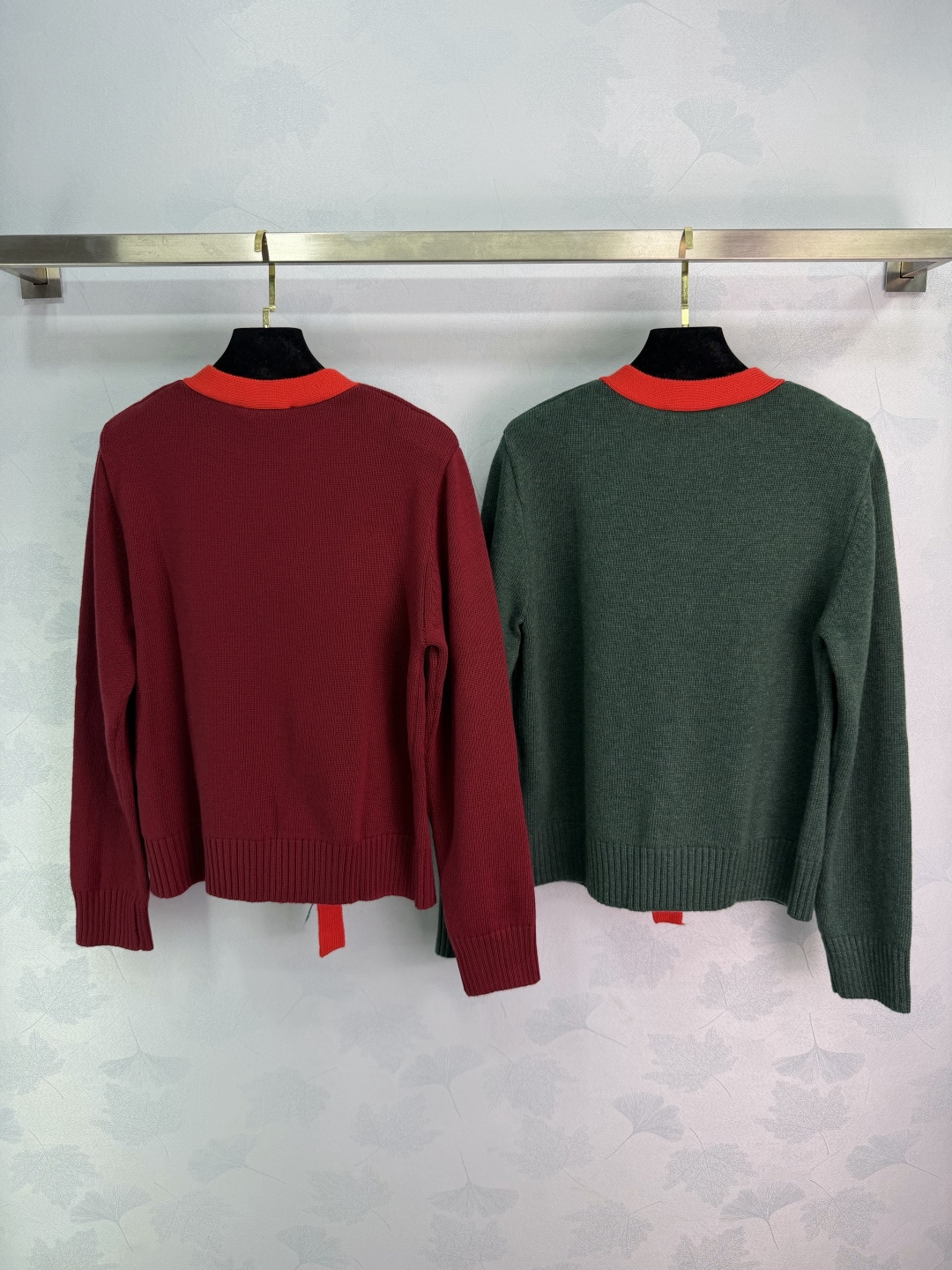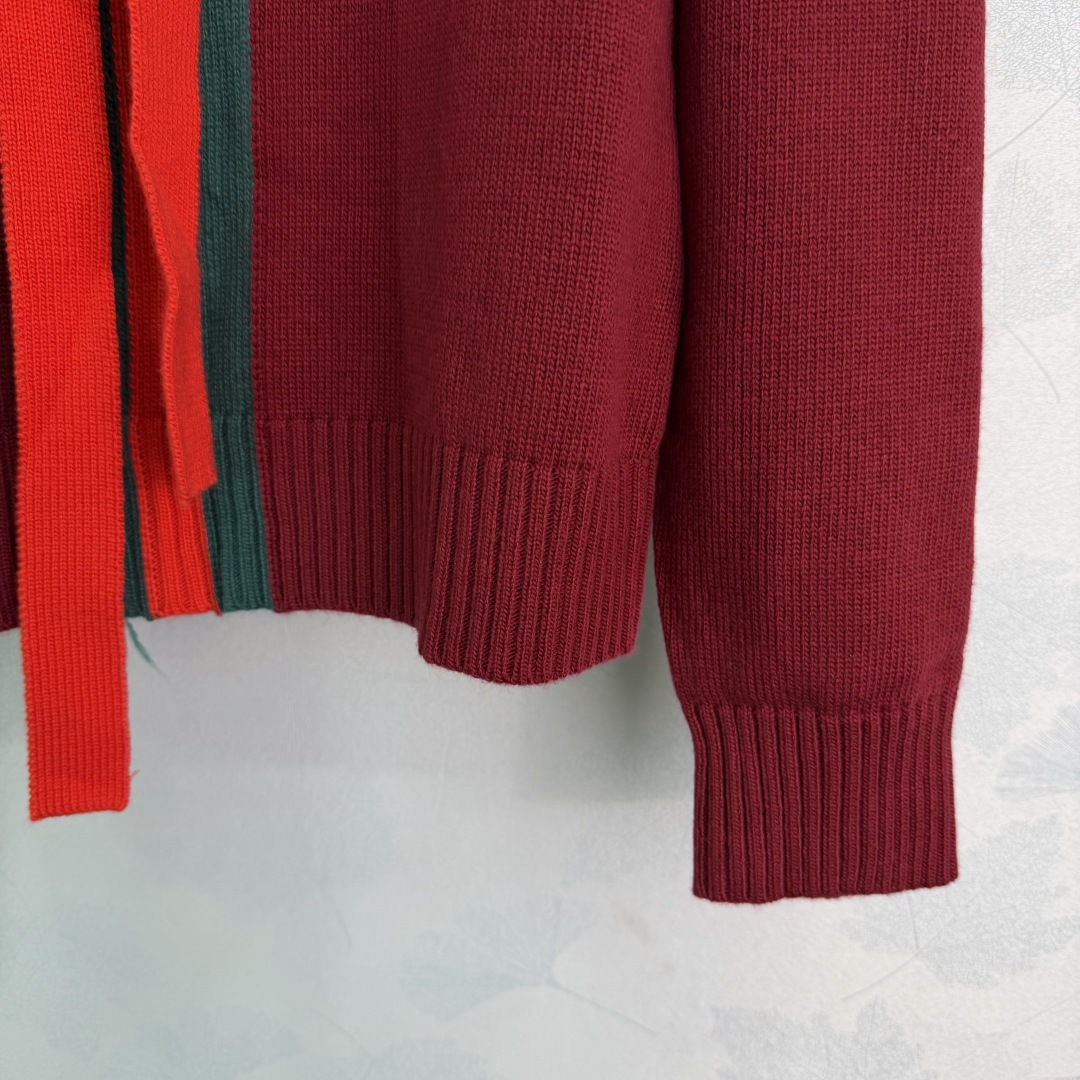 Details: Spring knitted long-sleeved sweater with color-blocking and ties, soft and stylish, a wardrobe staple.