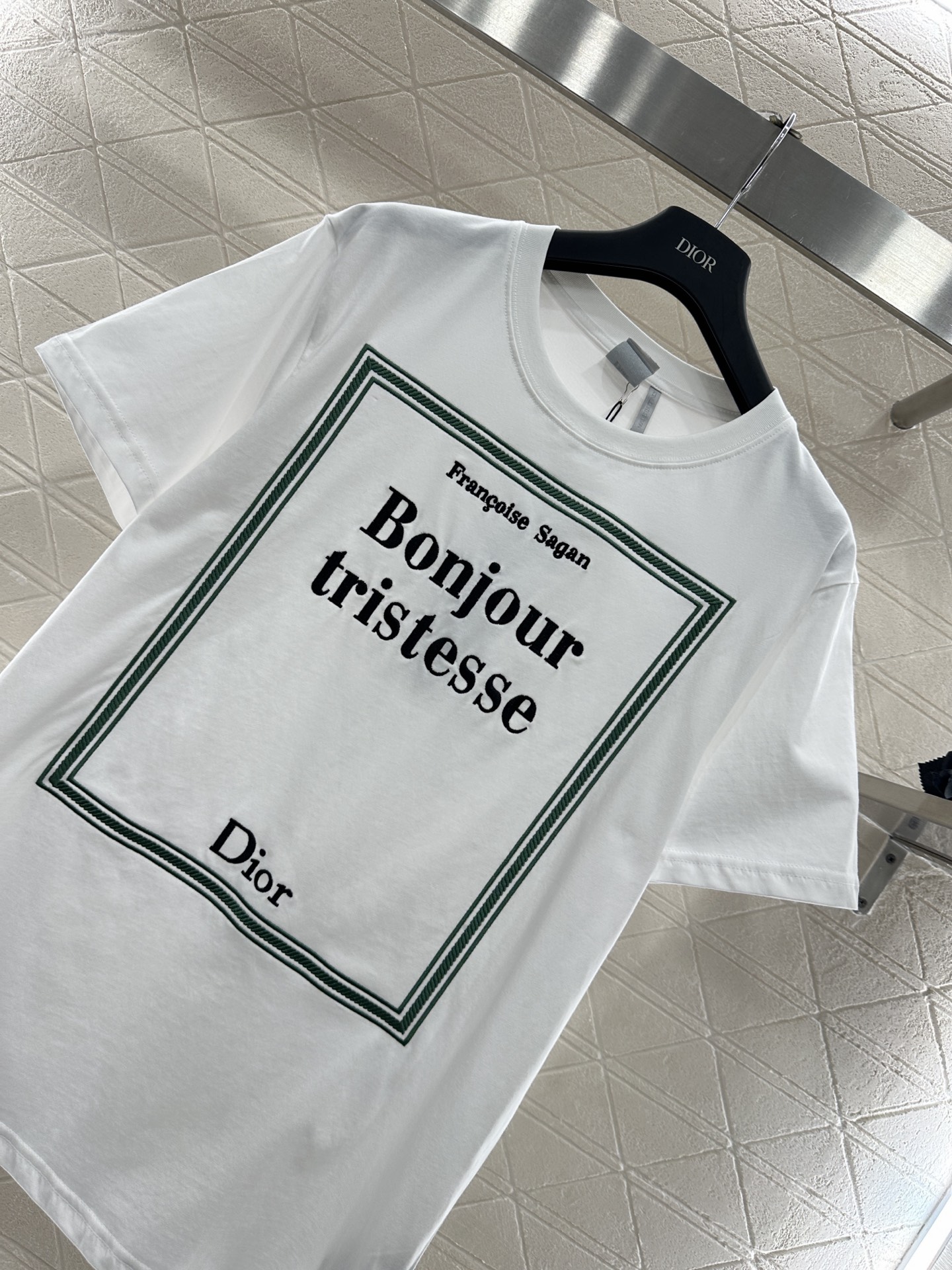Details: New white T-shirt, cotton, comfortable, loose, with embroidery, suitable for jeans or skirts