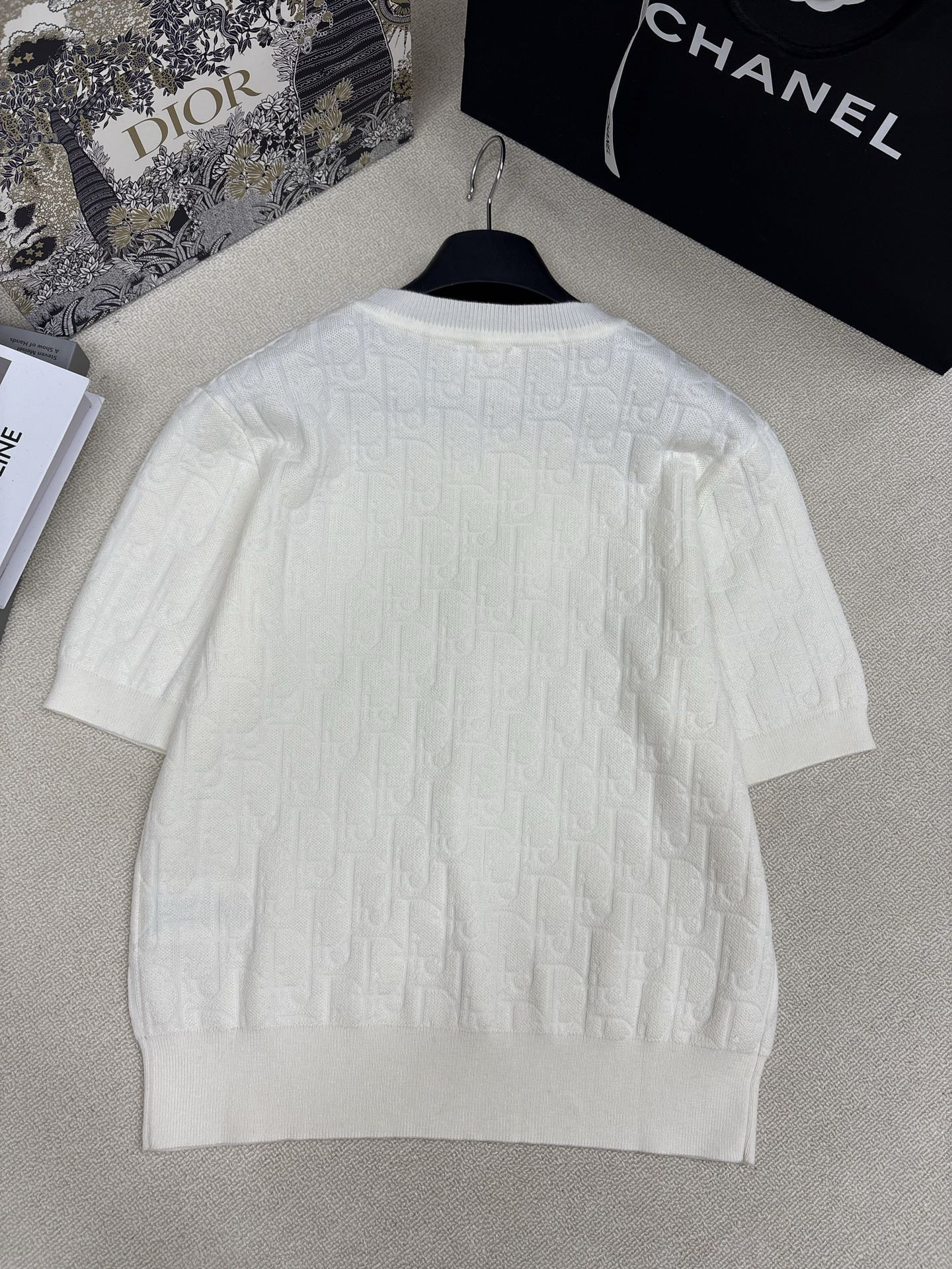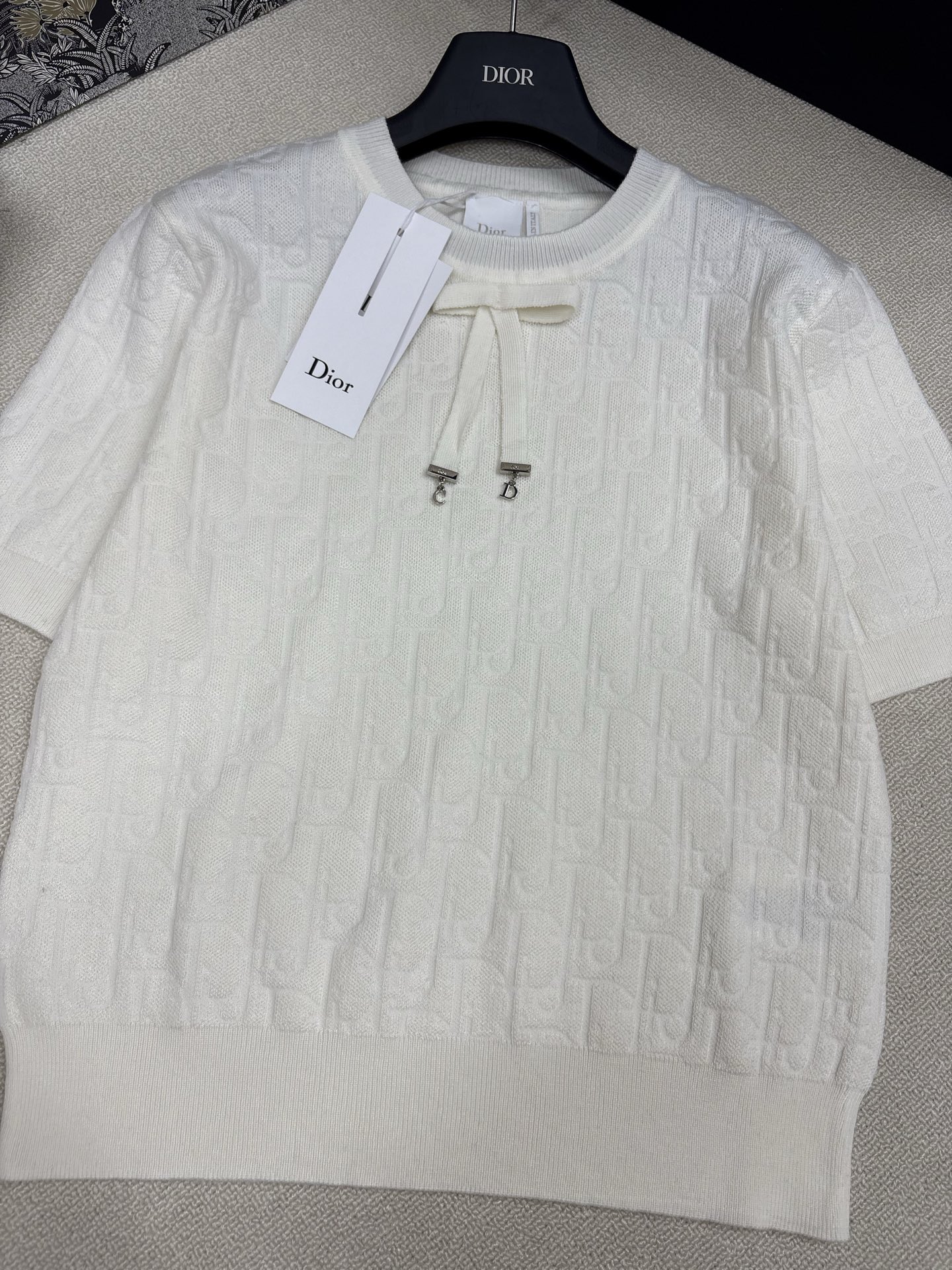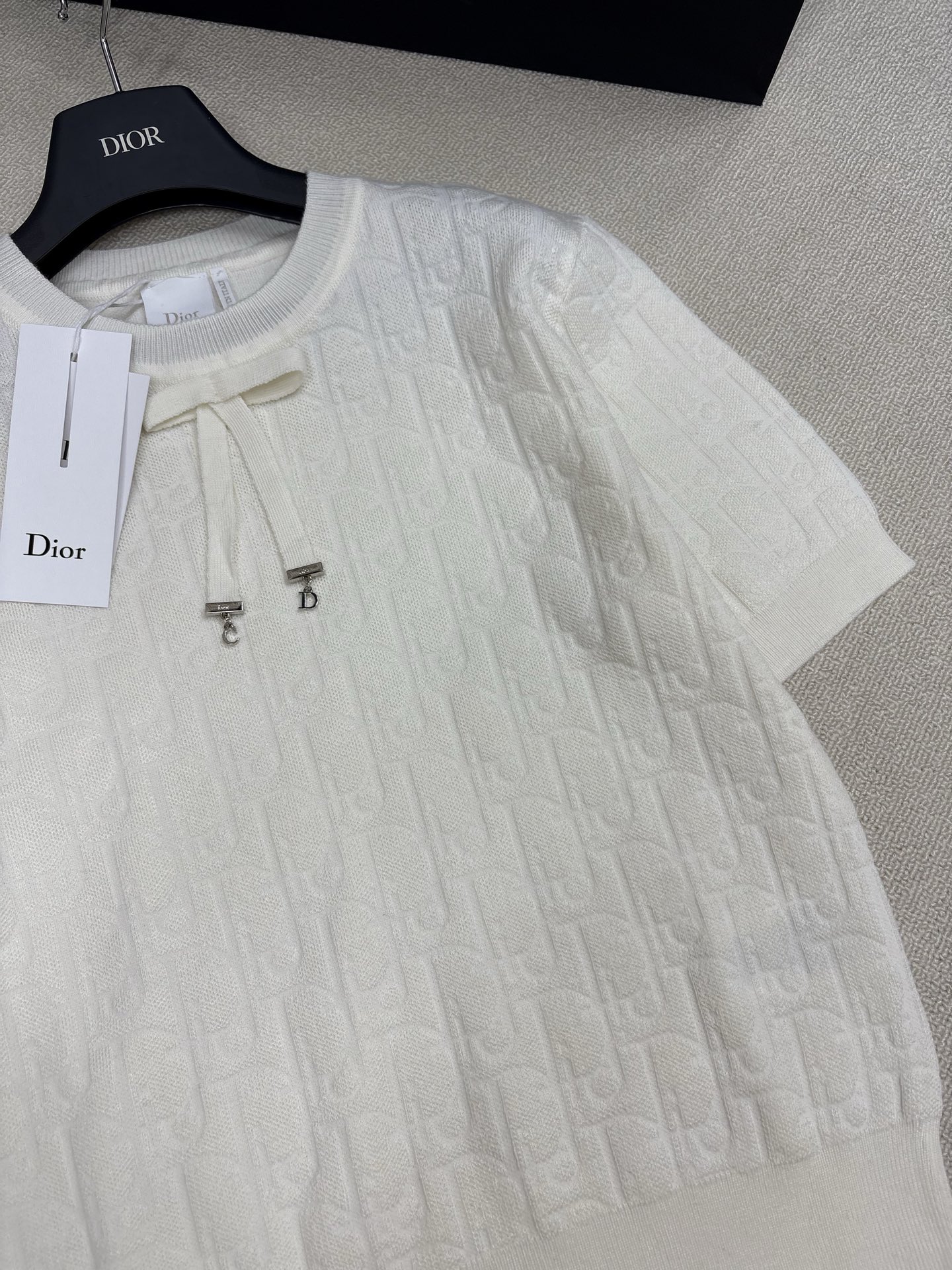 Dior Refined Knit Round Neck Tee with Logo & Bowknot Detail