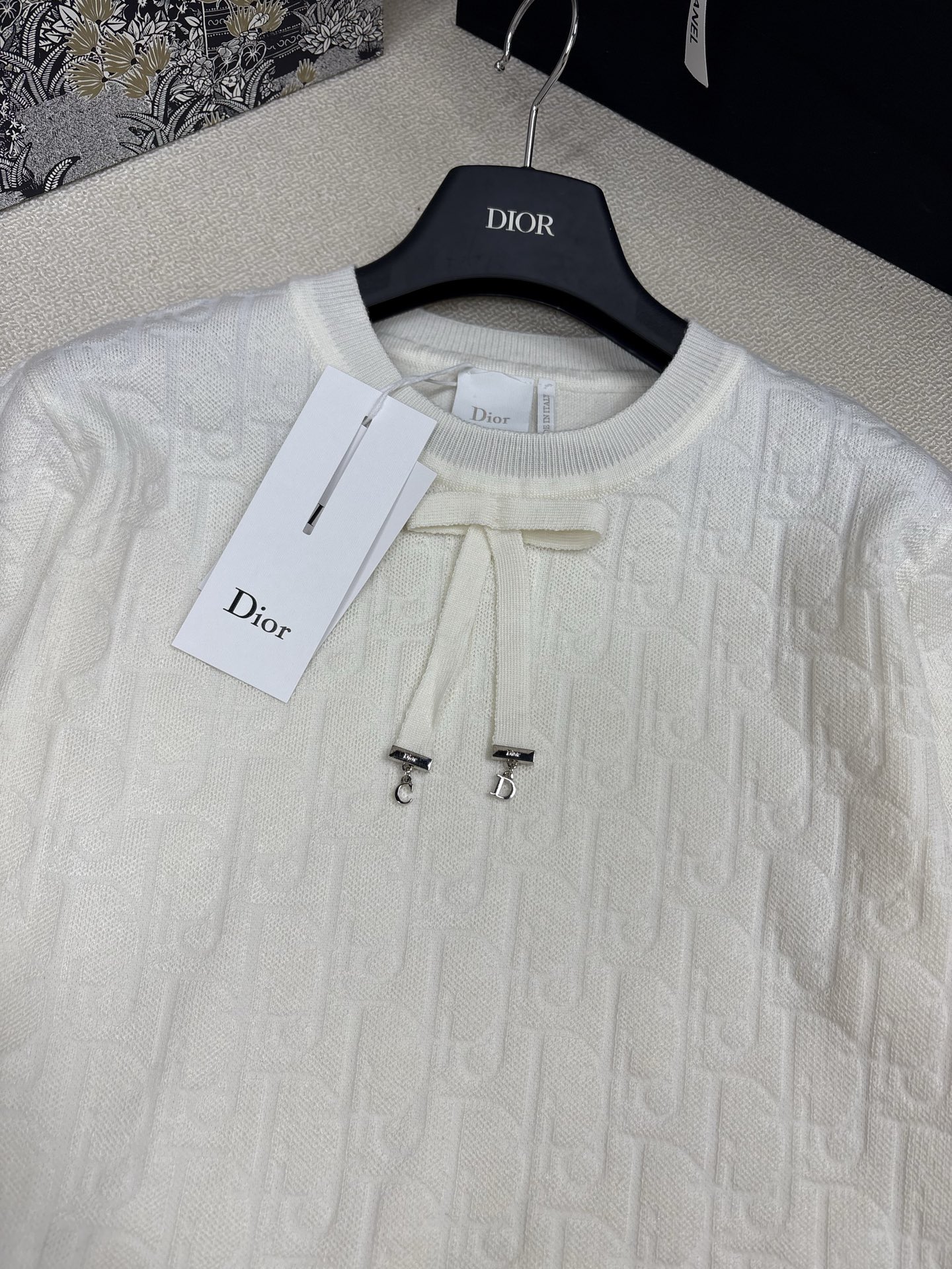 here:home > WOMENS > Christian Dior > Pullover Dior (W) > Dior Refined Knit Round Neck Tee with Logo & Bowknot Detail