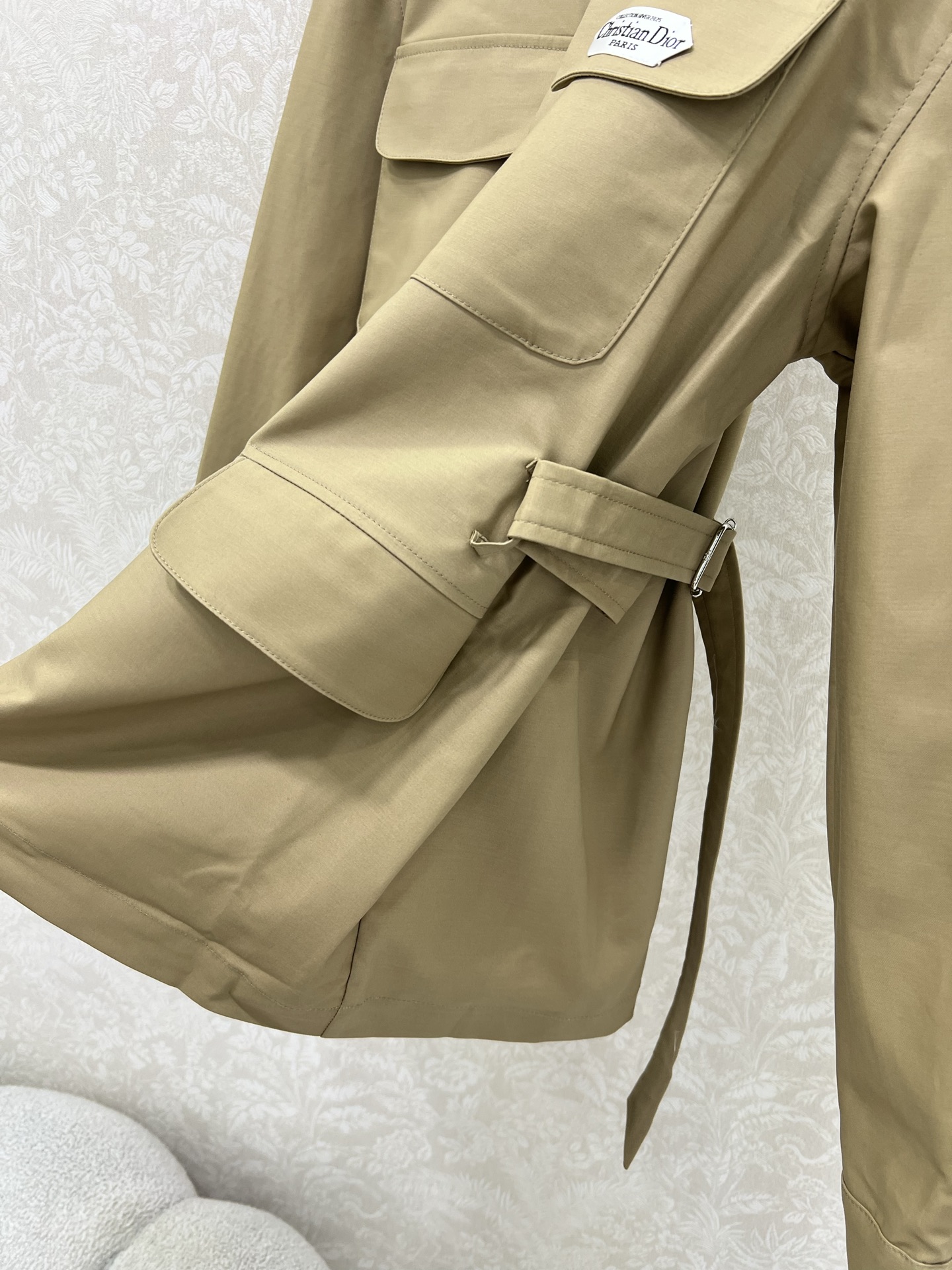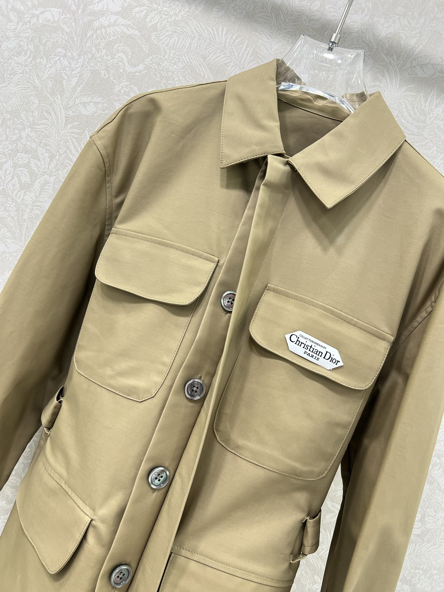 Details: new classic lapel jacket with multiple pockets, tailored logo buttons, belt. British elegant style. High-end customization, exquisite craftsmanship