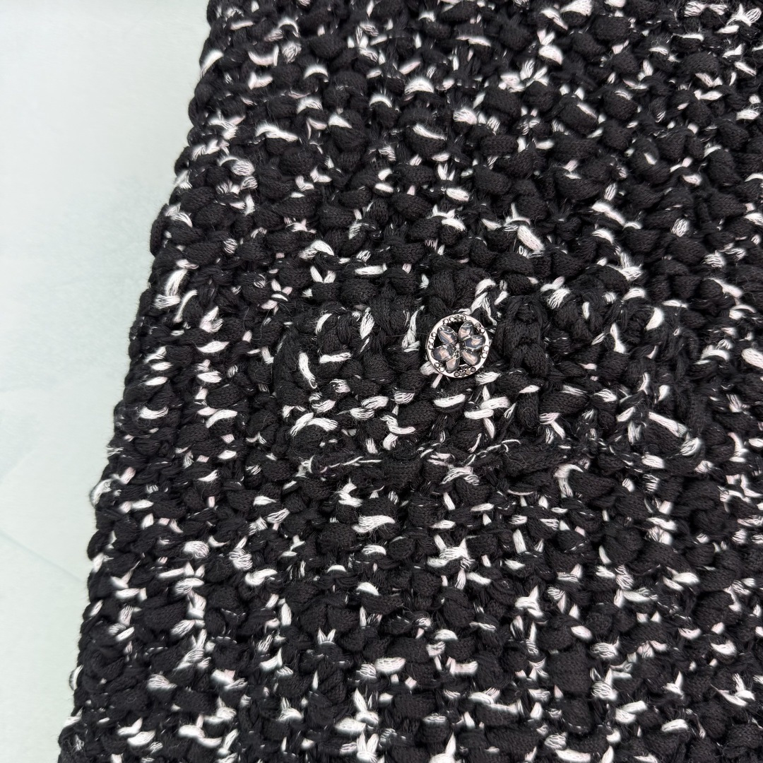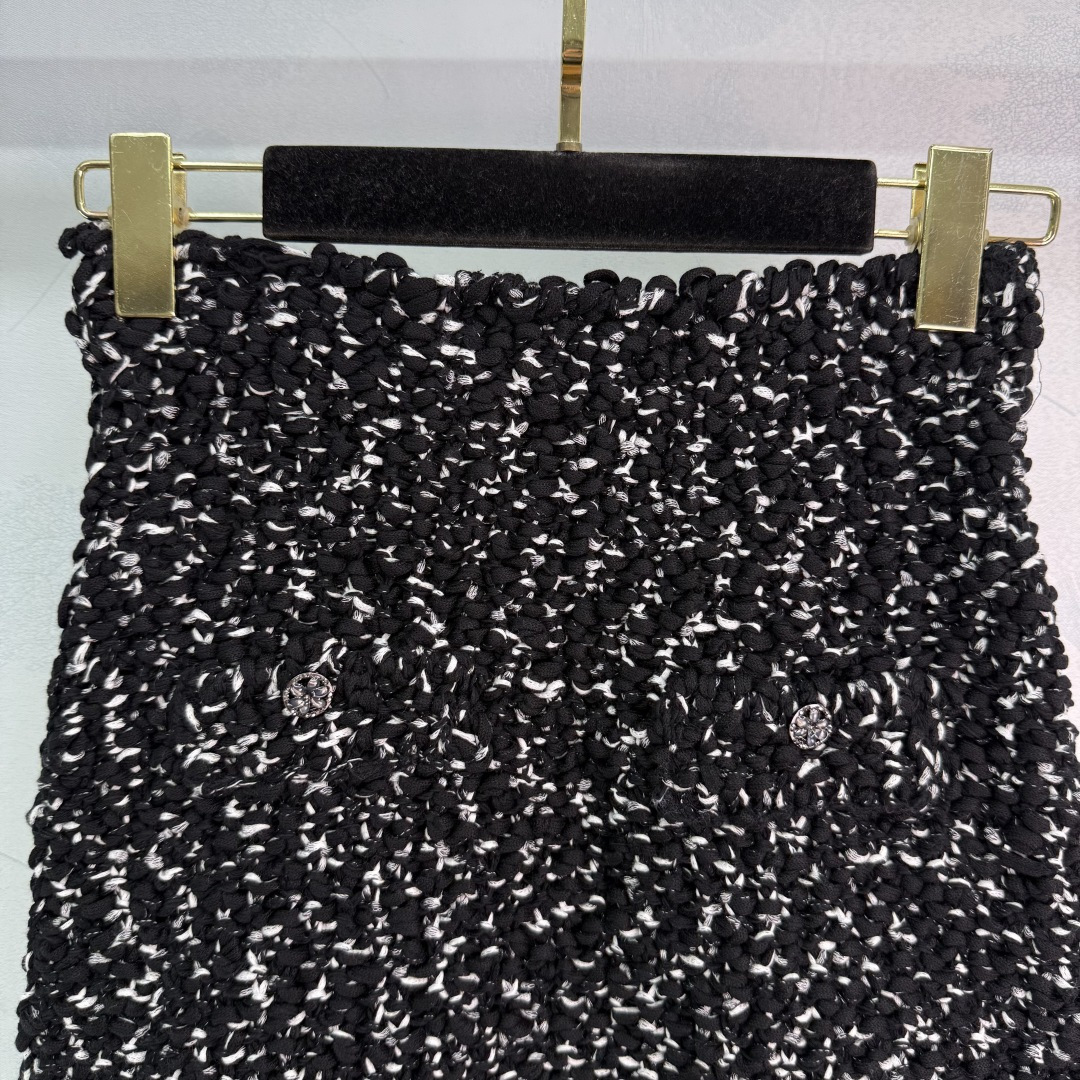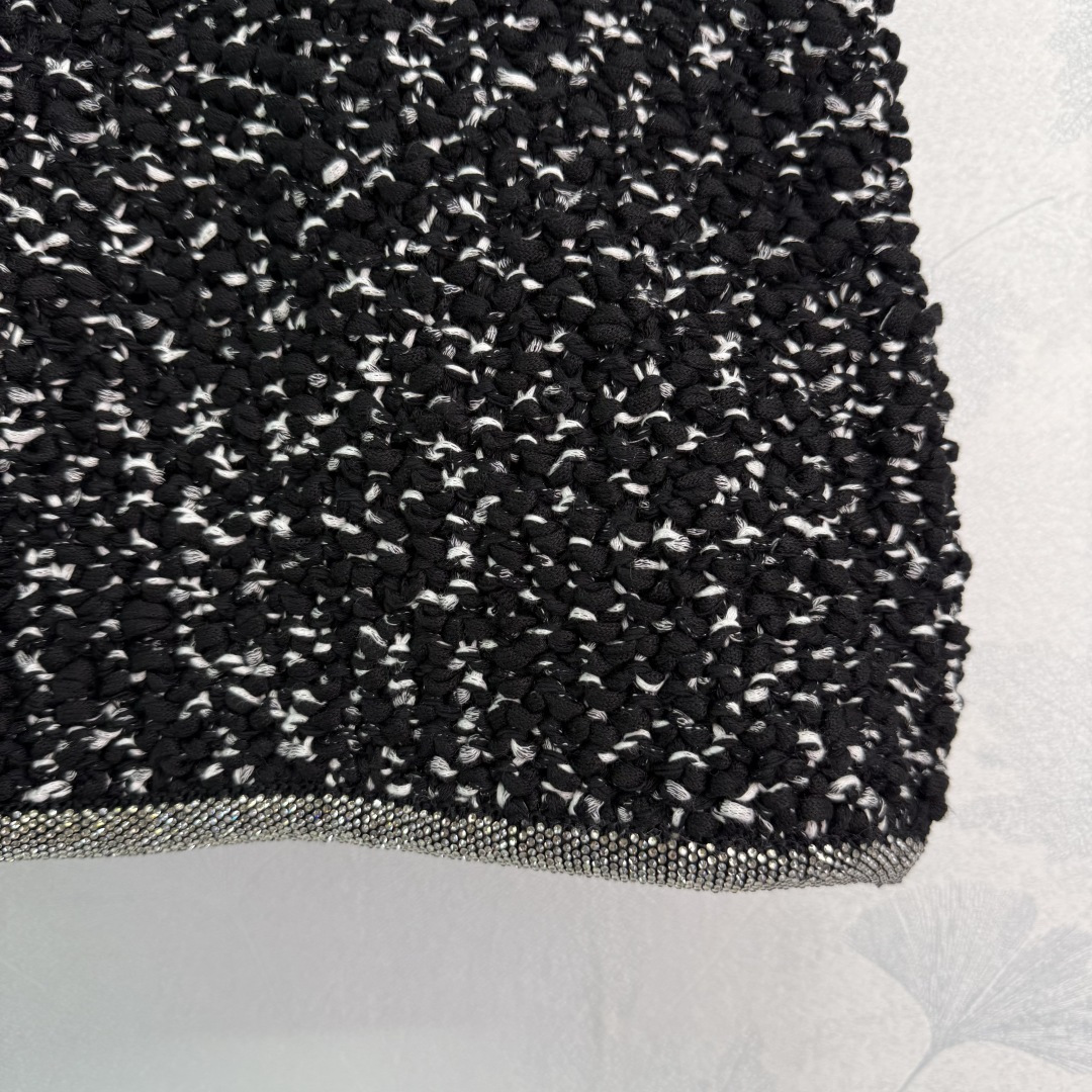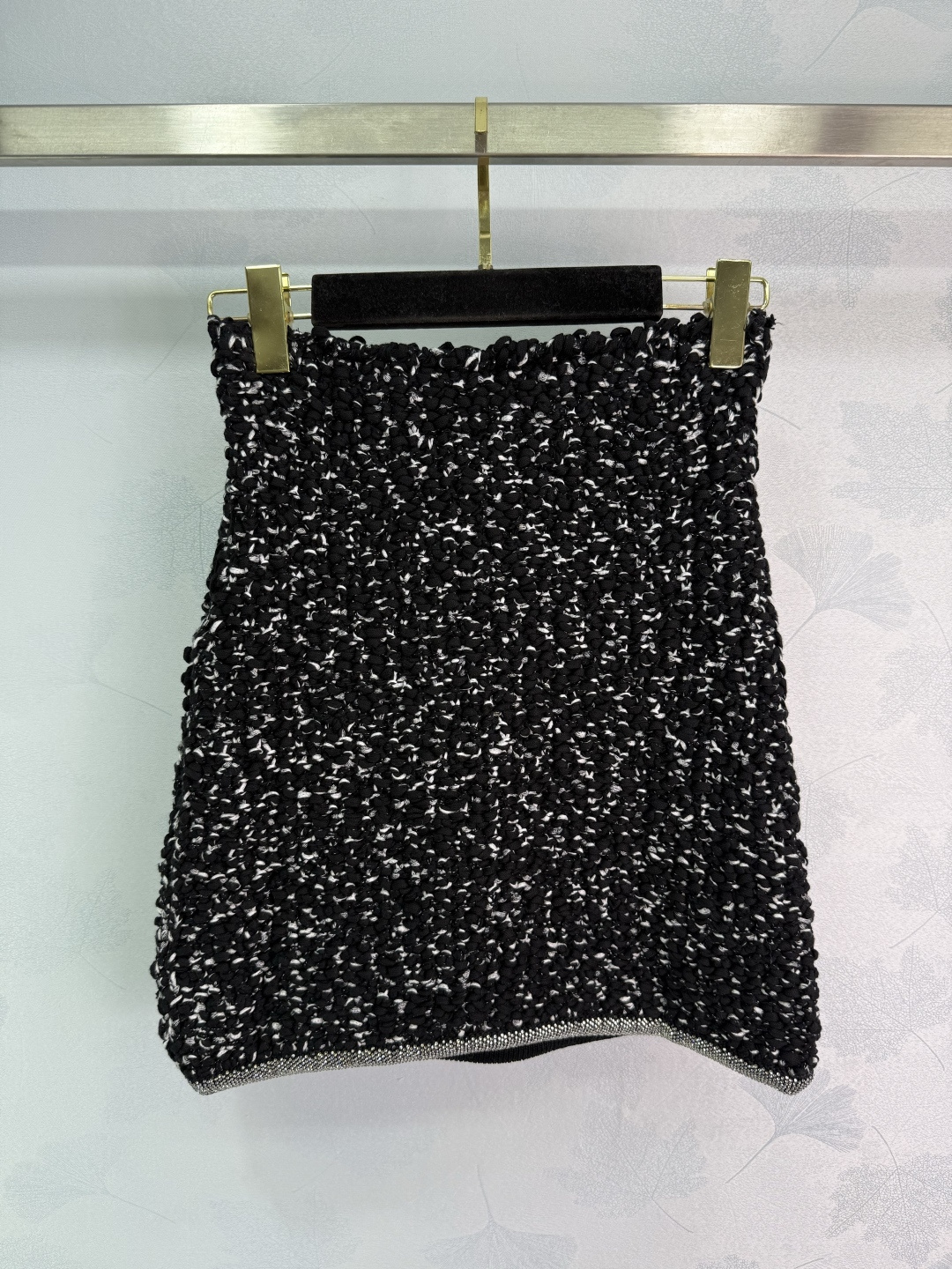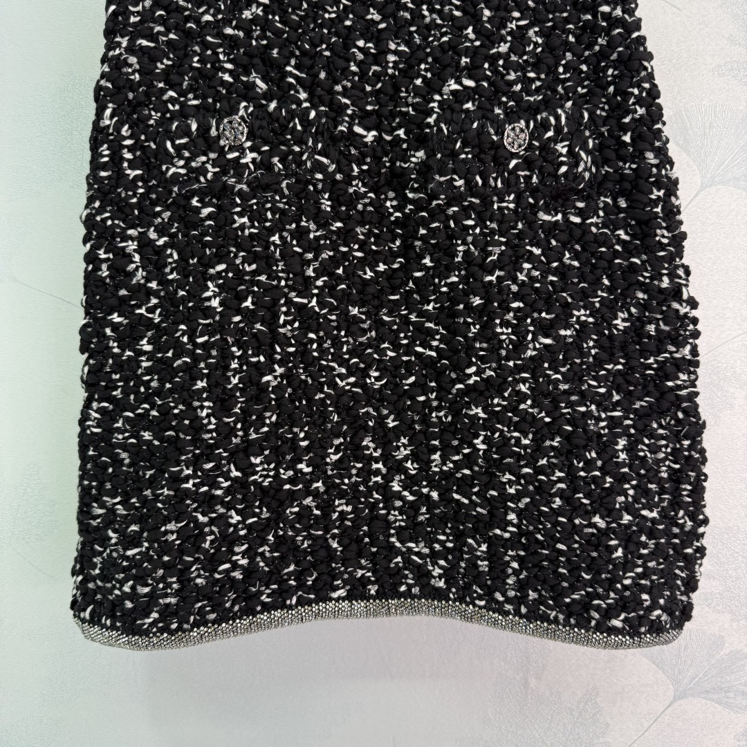 Details: Early autumn knitted vest and skirt set with rhinestone trim, handmade, high - end customization, fine workmanship