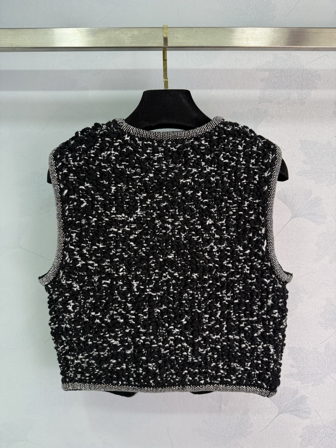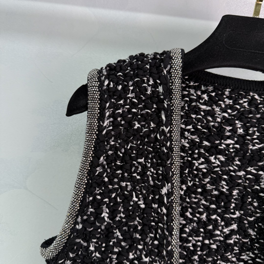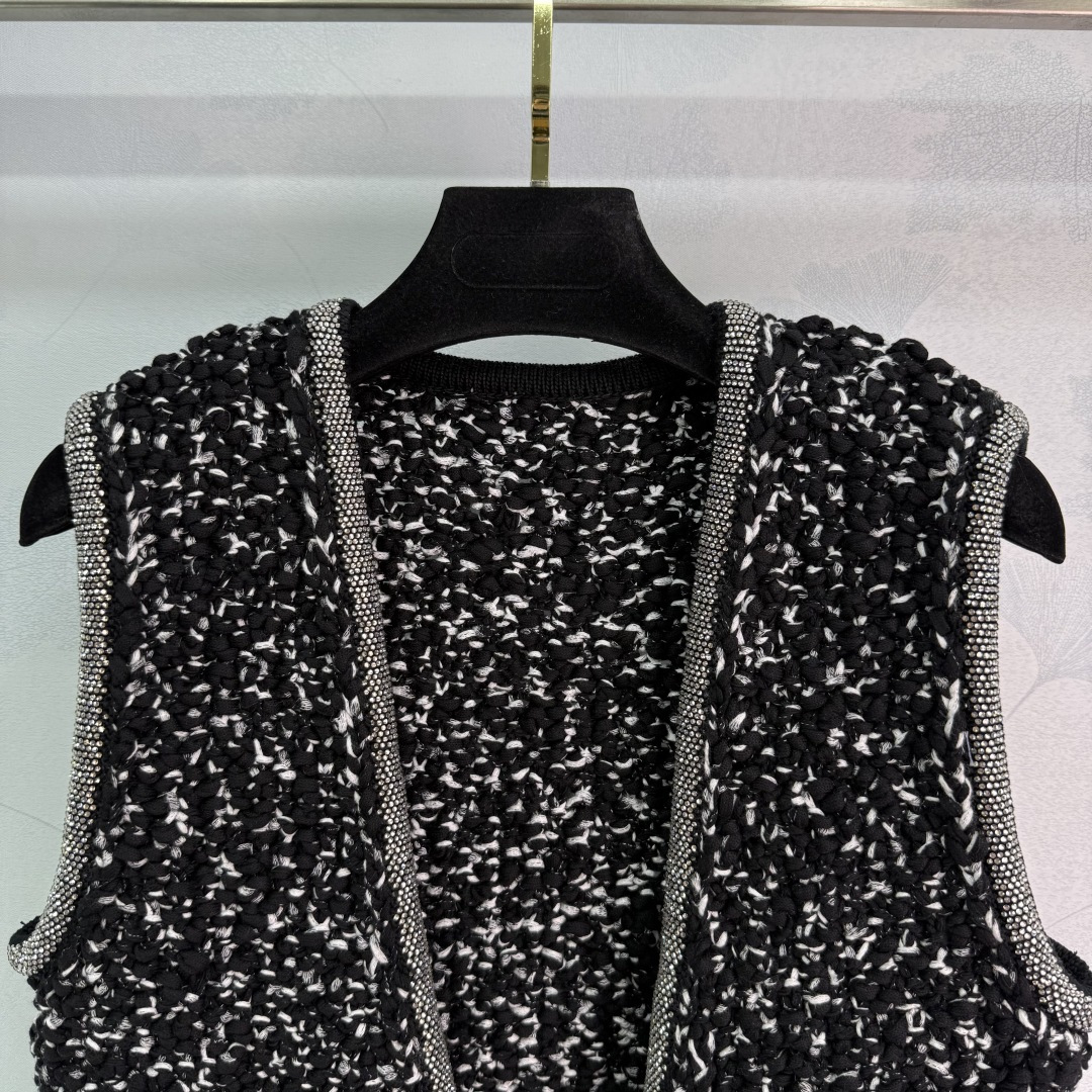 Details: Early autumn knitted vest and skirt set with rhinestone trim, handmade, high - end customization, fine workmanship