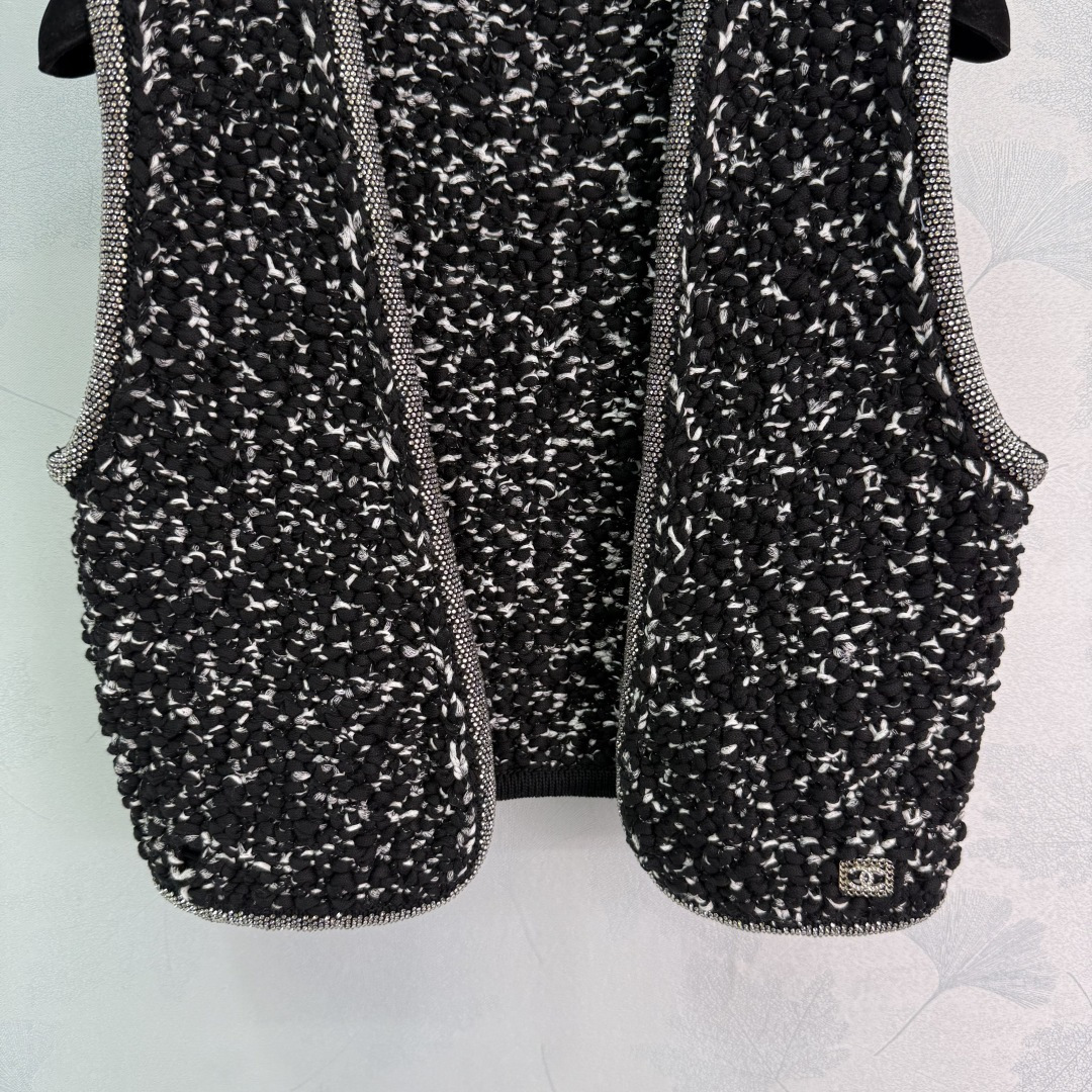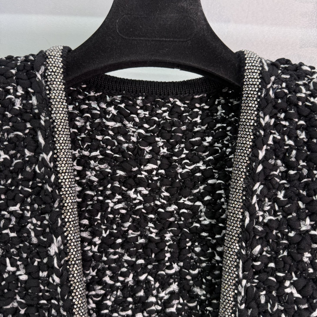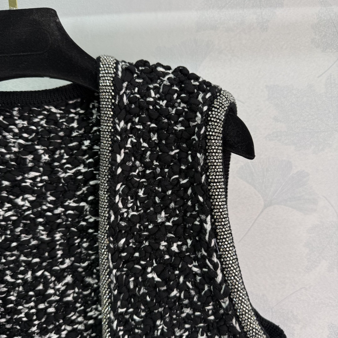 Details: Early autumn knitted vest and skirt set with rhinestone trim, handmade, high - end customization, fine workmanship