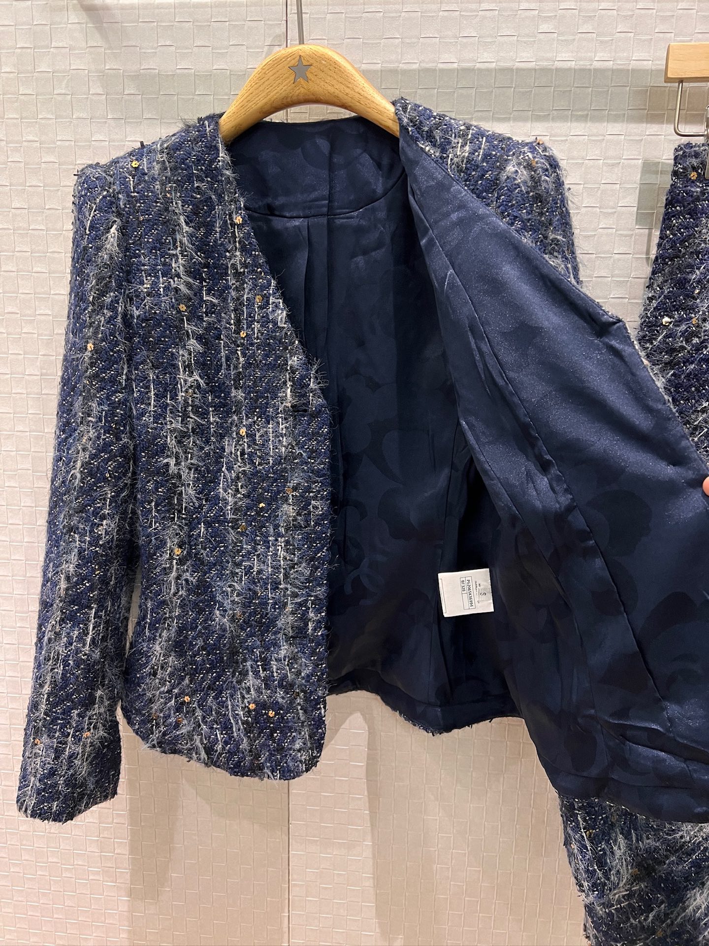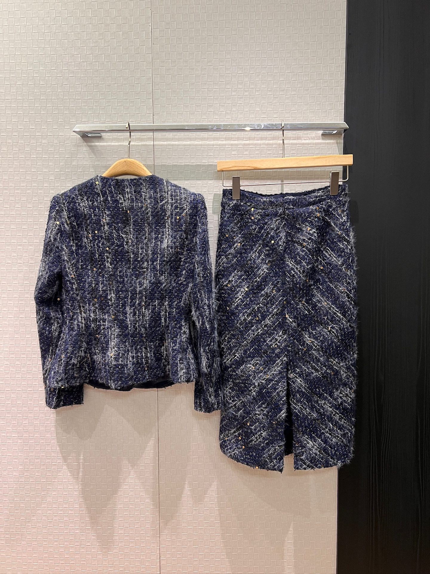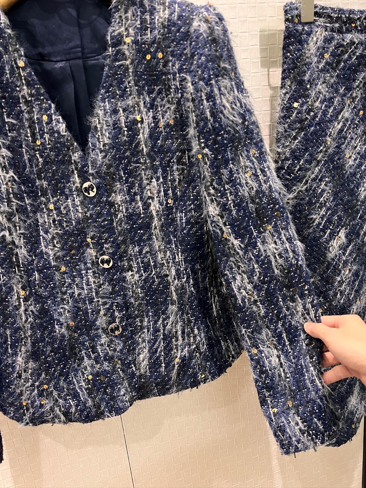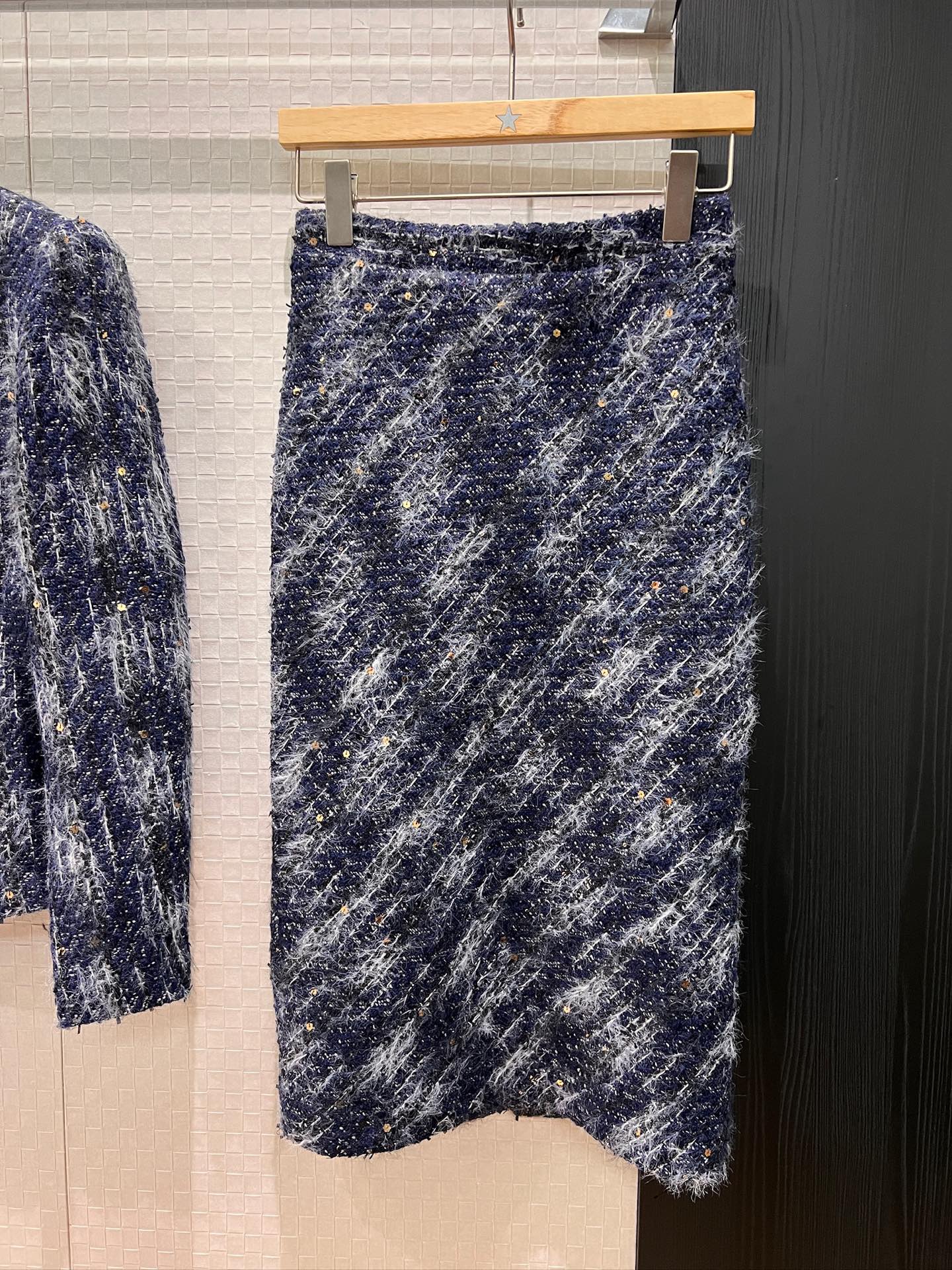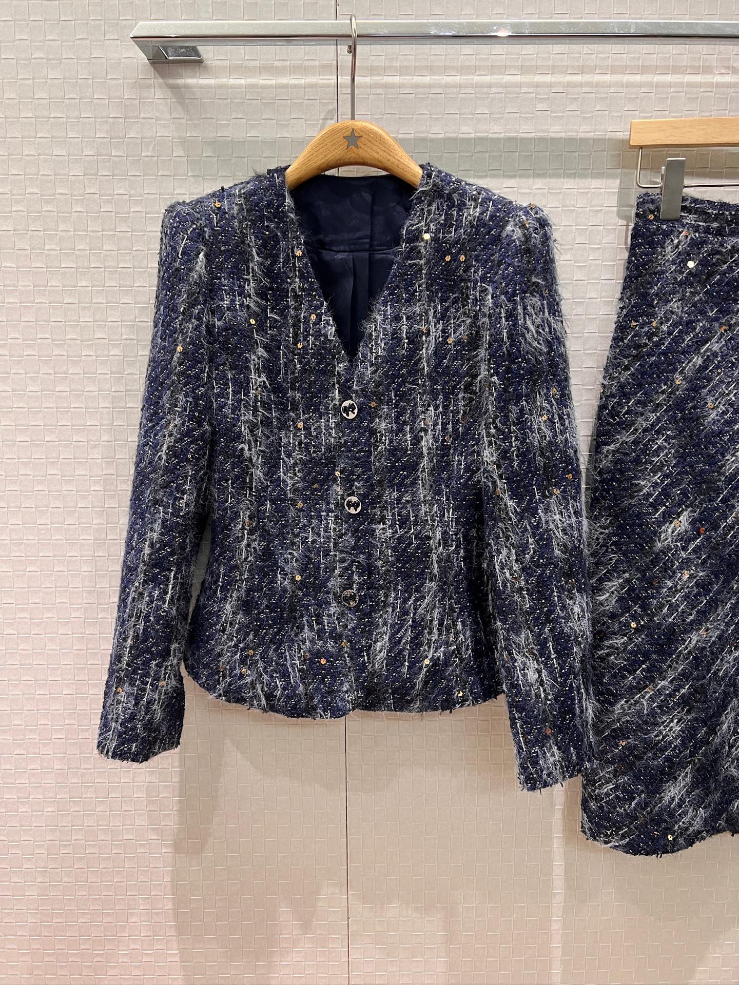 Details: New tasseled woolen V-neck coat and wrap skirt with sequins, elegant and suitable for work.