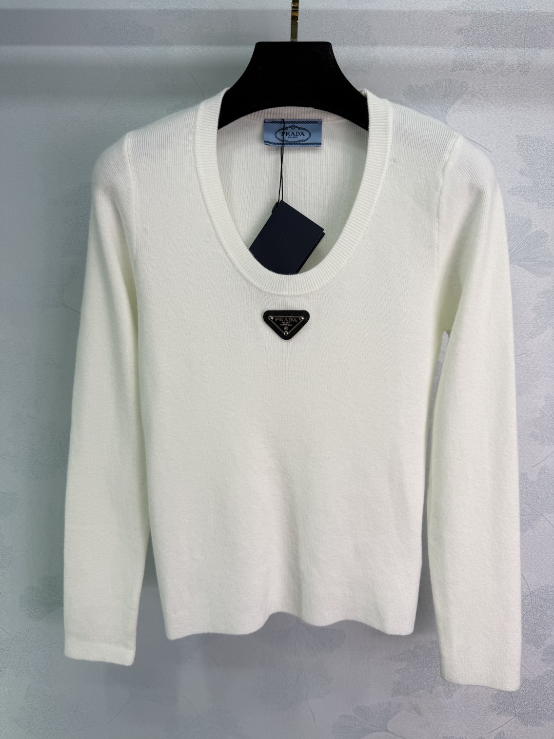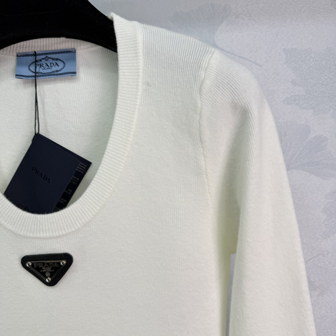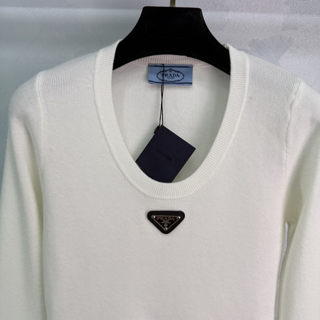 Details: Early autumn U-neck knitted long-sleeve top, wool knitted, with triangle logo, 2 colors, 3 sizes