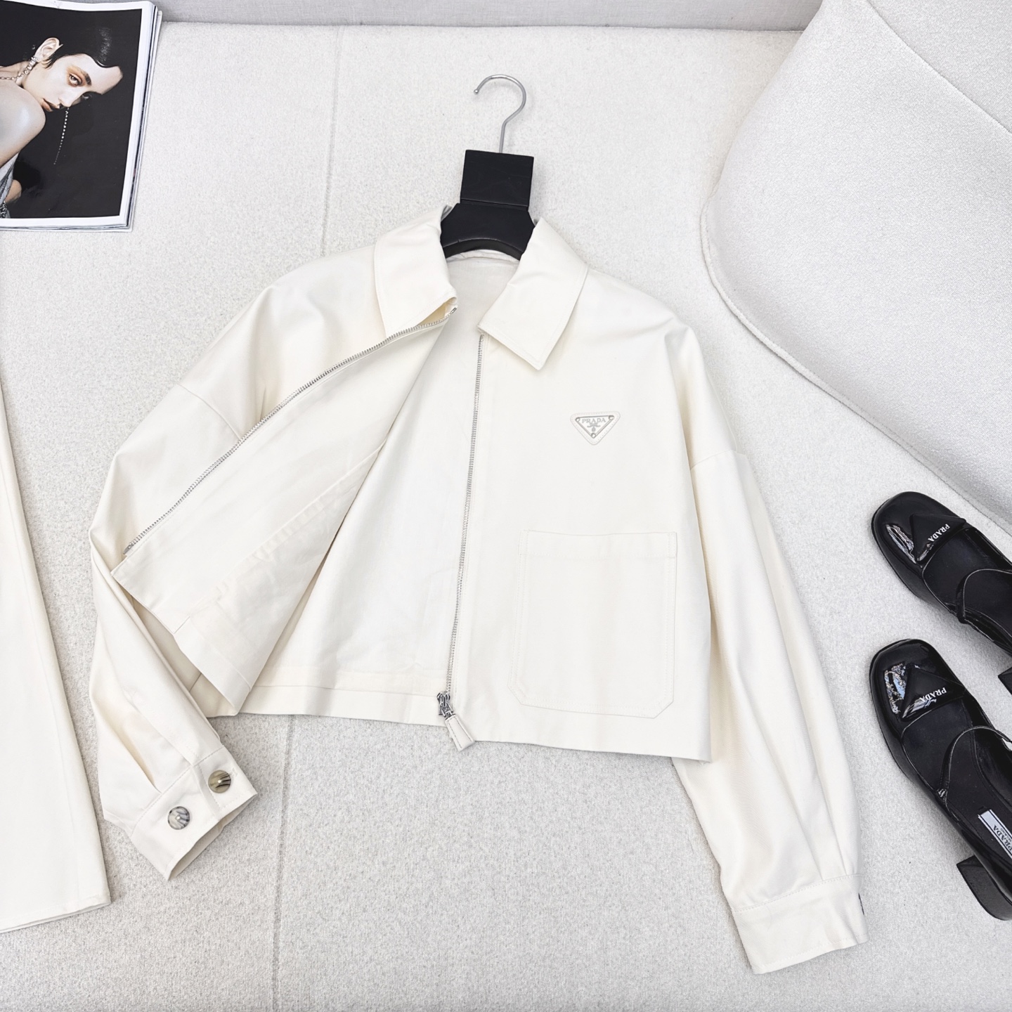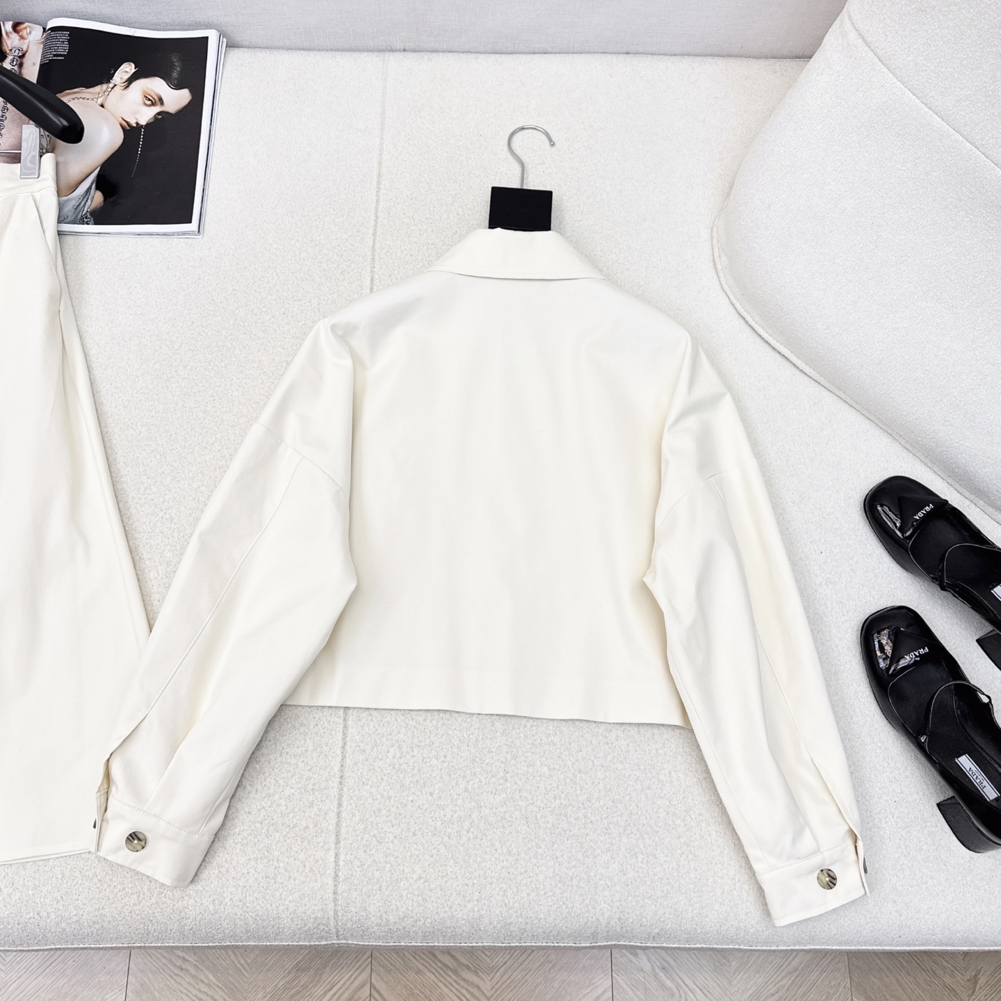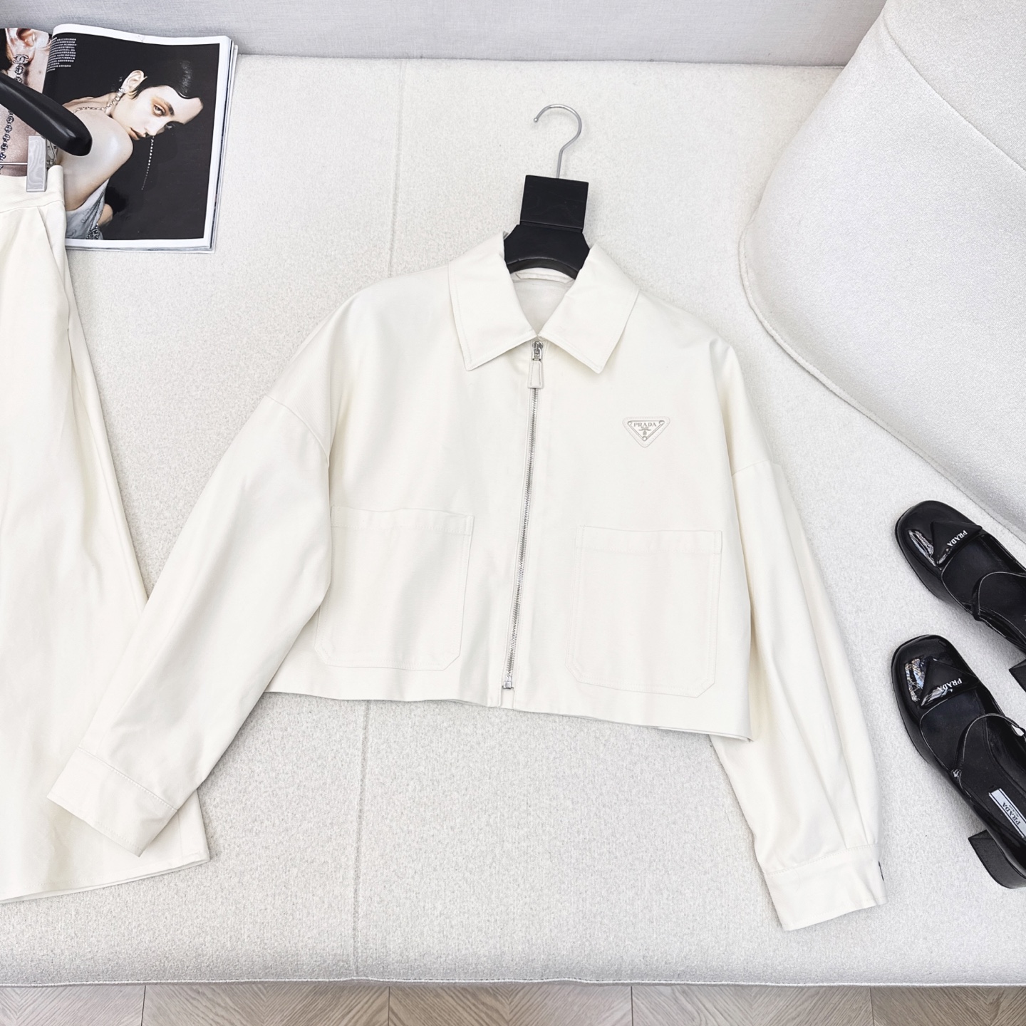 Prada Utility Style Set: Short Collared Coat with Umbrella Skirt