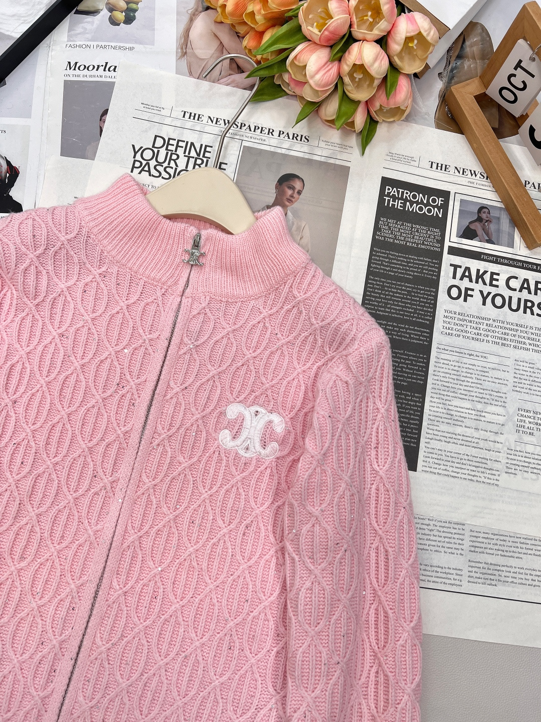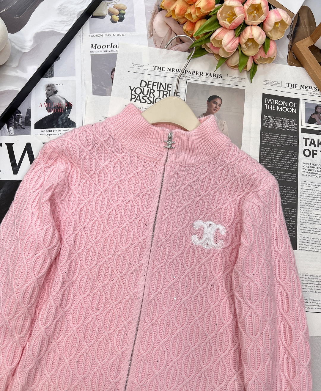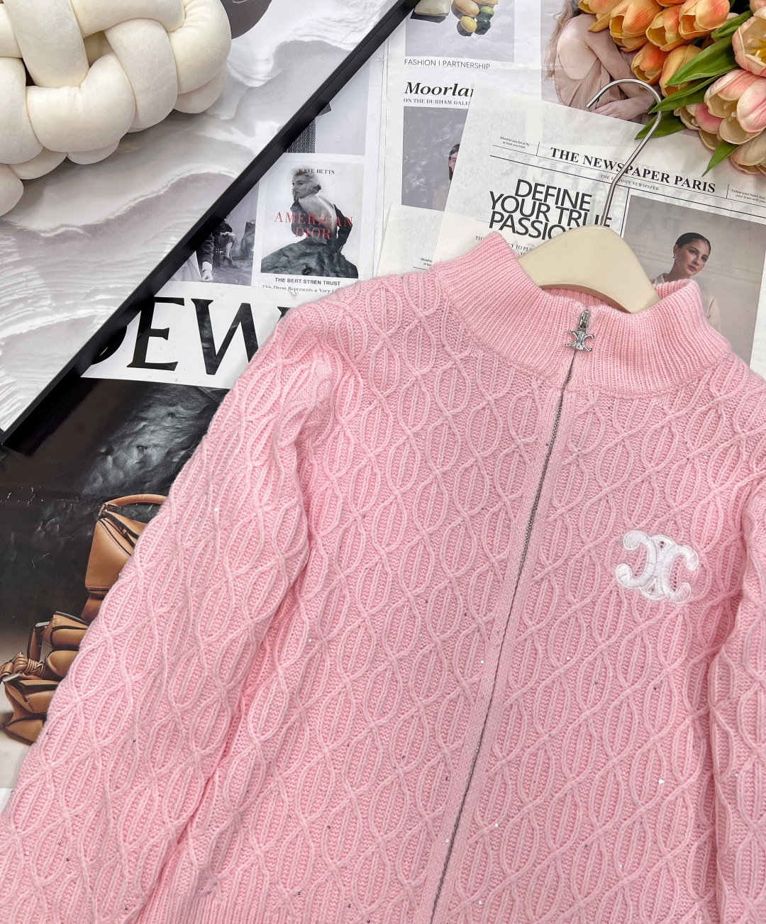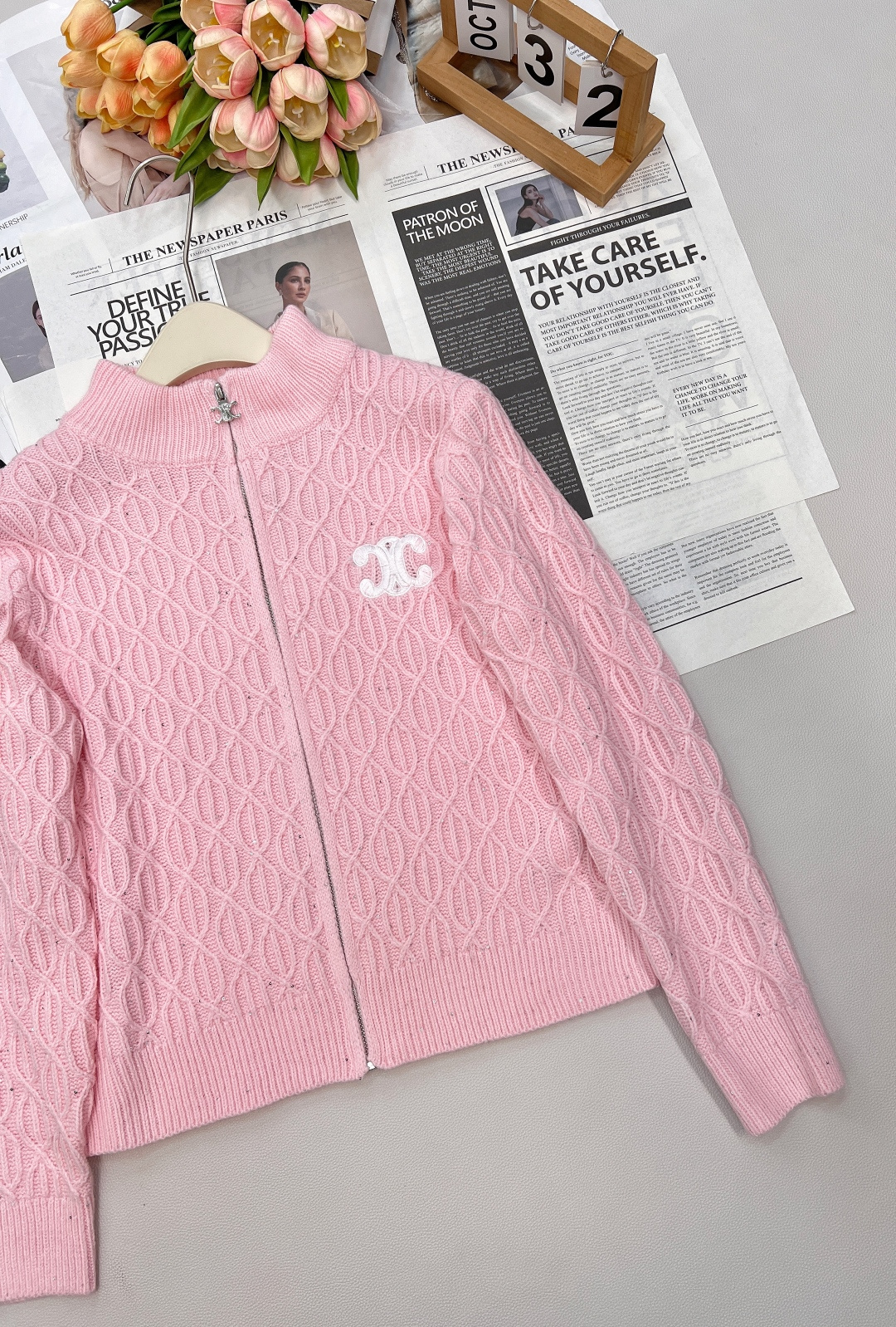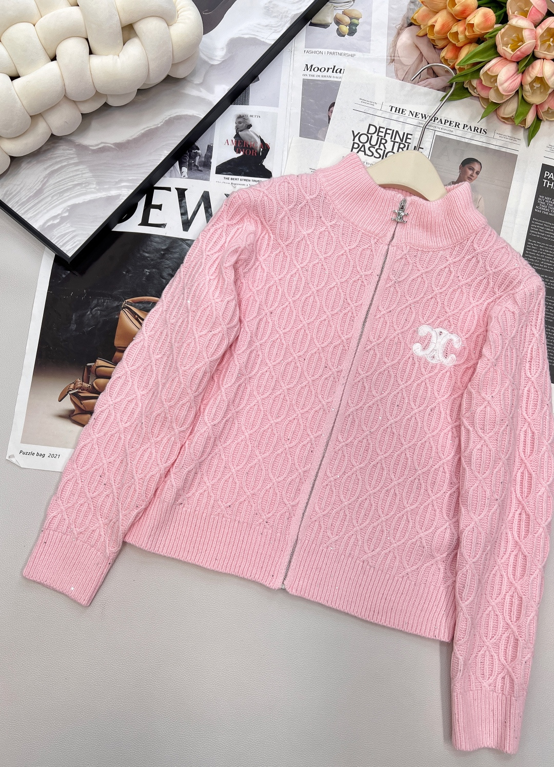 Details: New Tricolor Logo Zip - up Cardigan, Gentle, Classic, High - end Customized