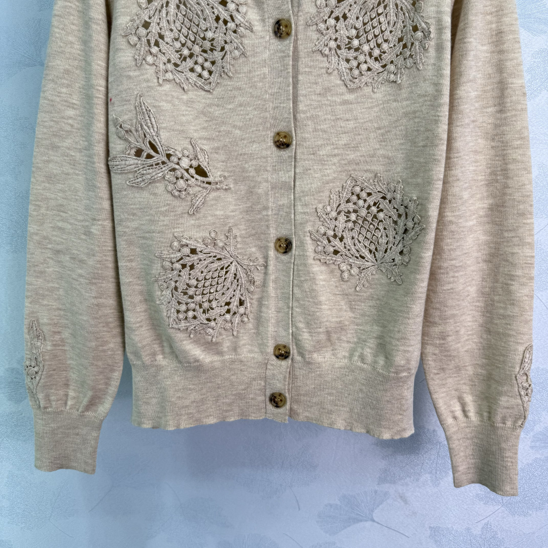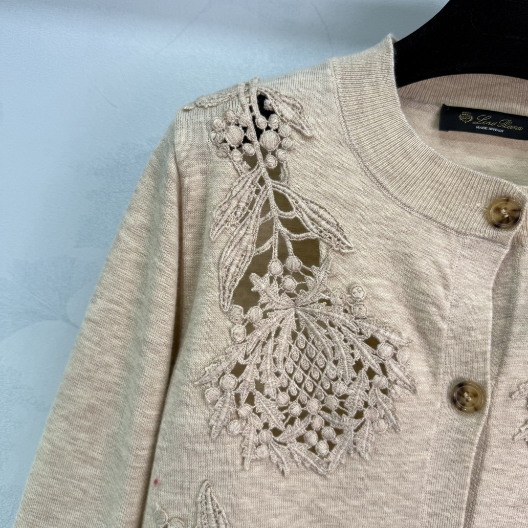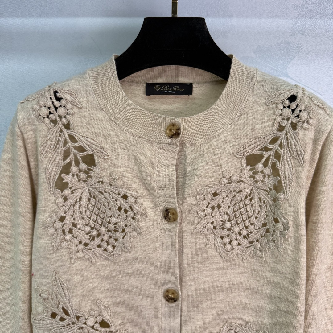 Details: Early autumn lace-knitted open cardigan with delicate embroidered flower patterns, suitable for single or layered wearing