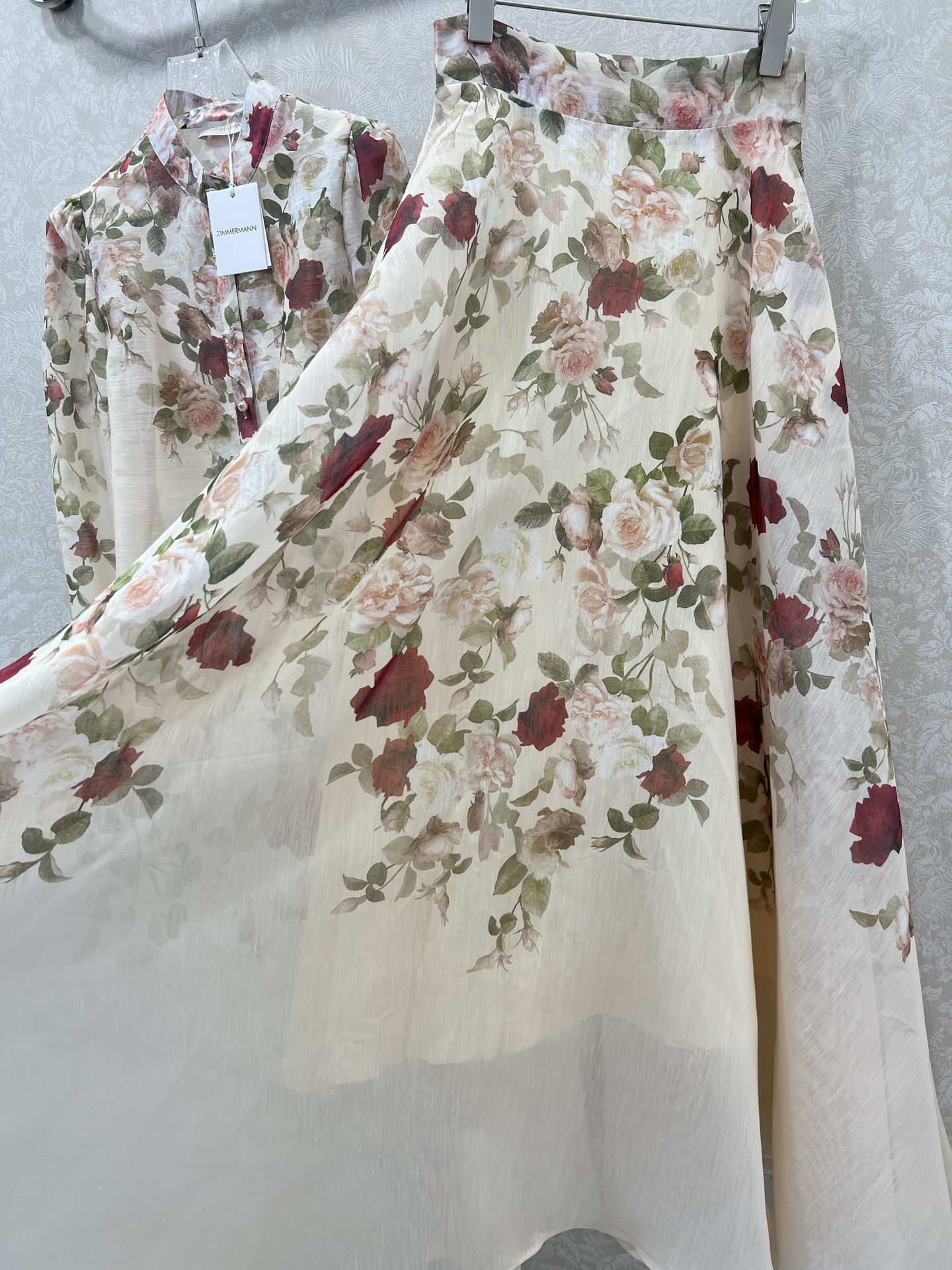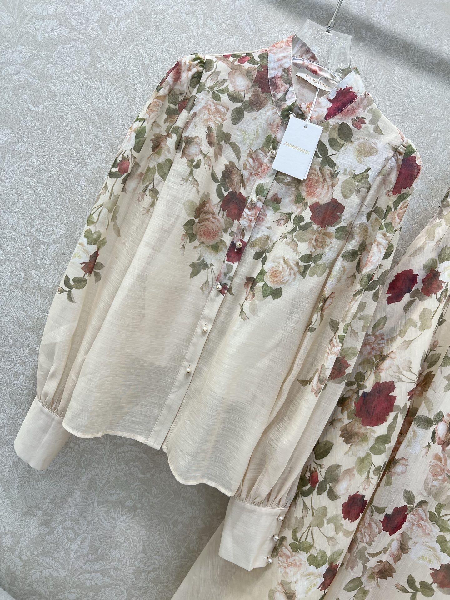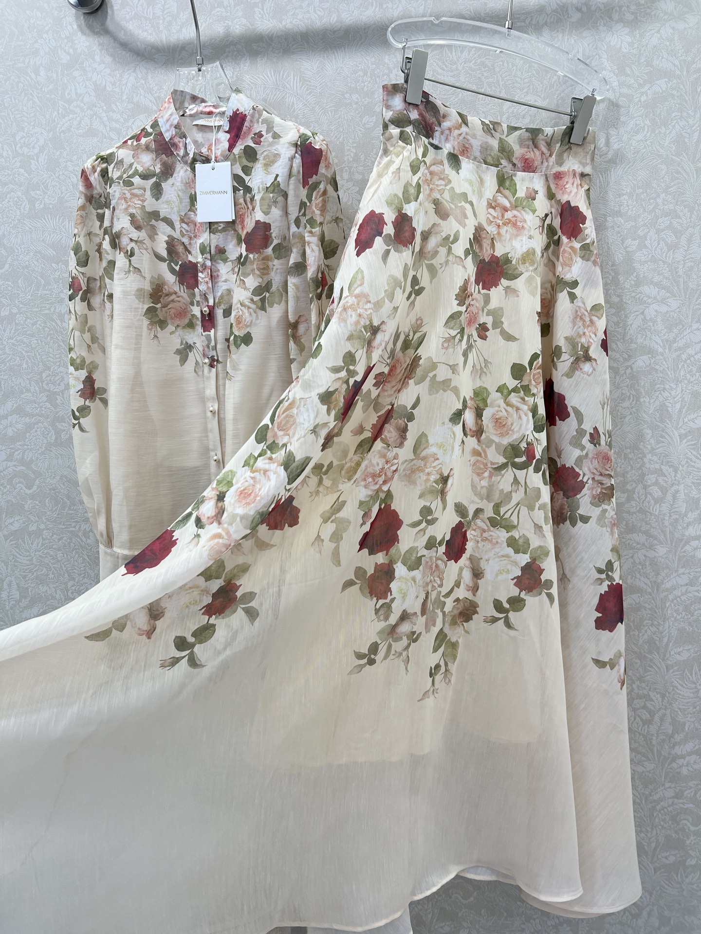 Details: New Rose Series Top and Skirt Set with Stand Collar, Lantern Sleeves, High-end Custom, Fine Workmanship