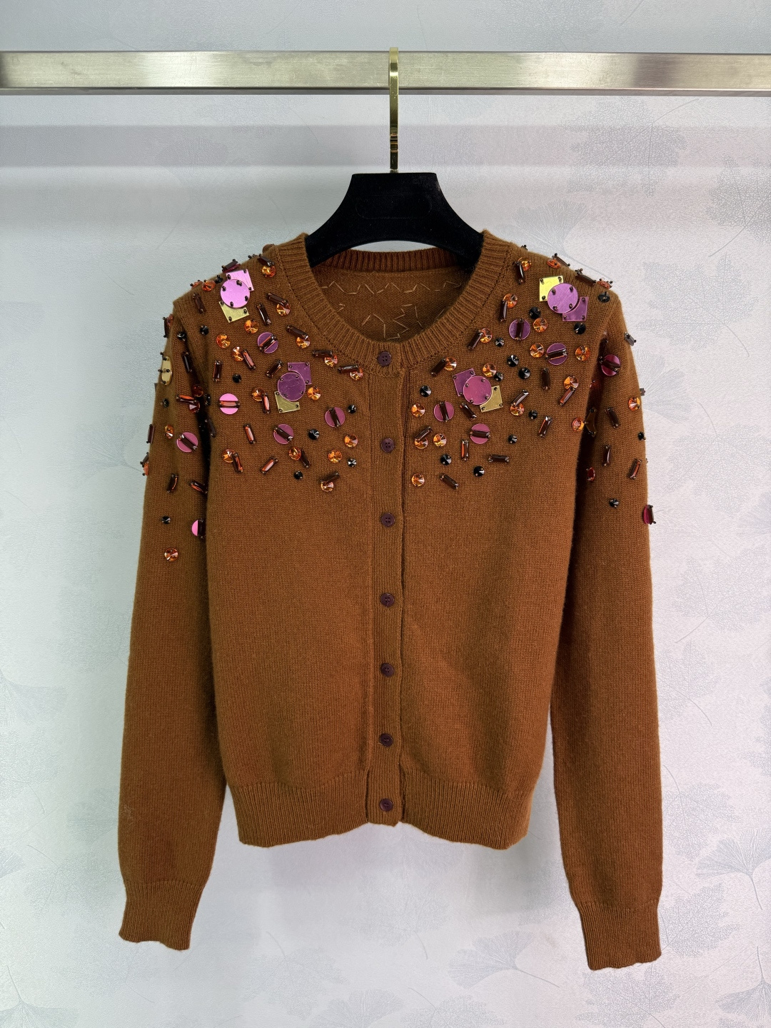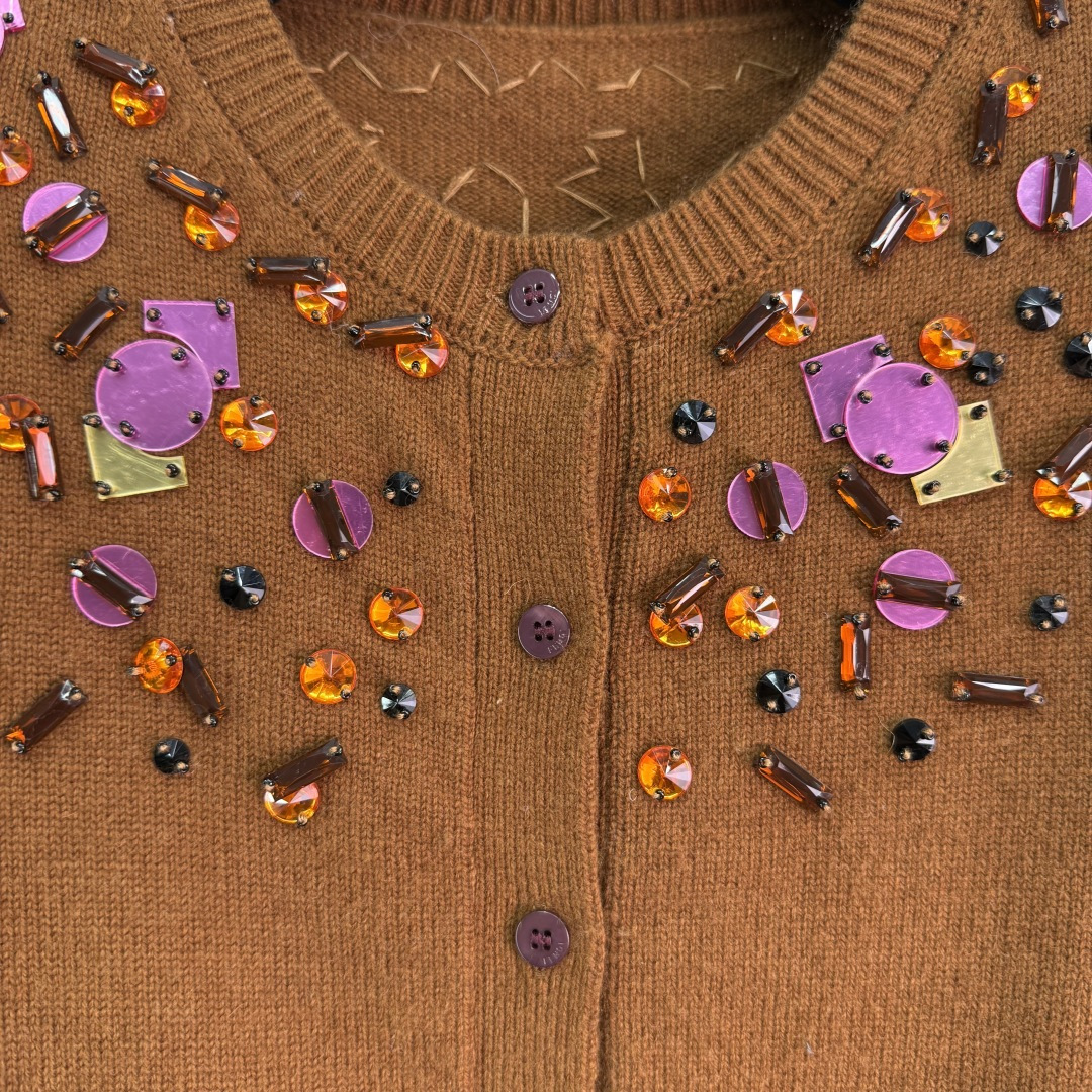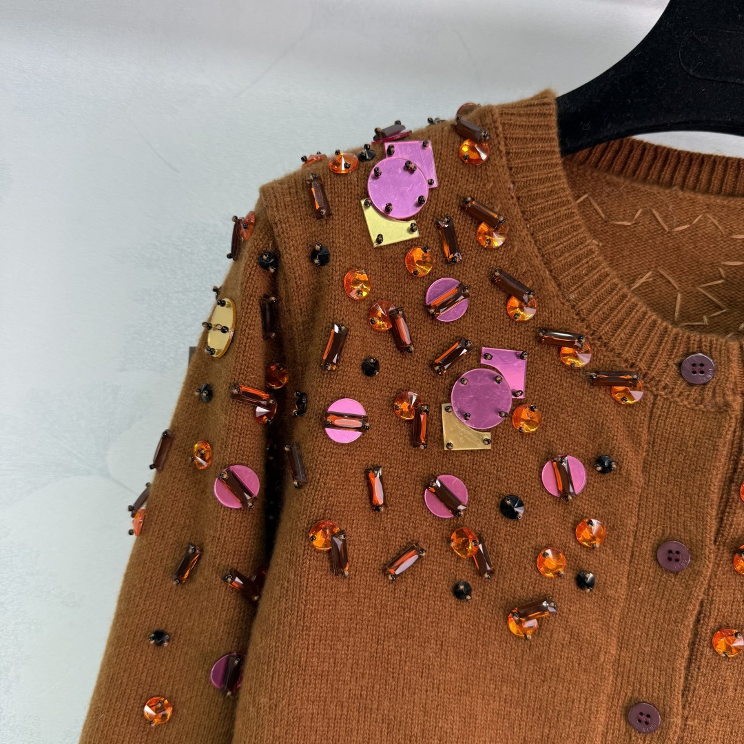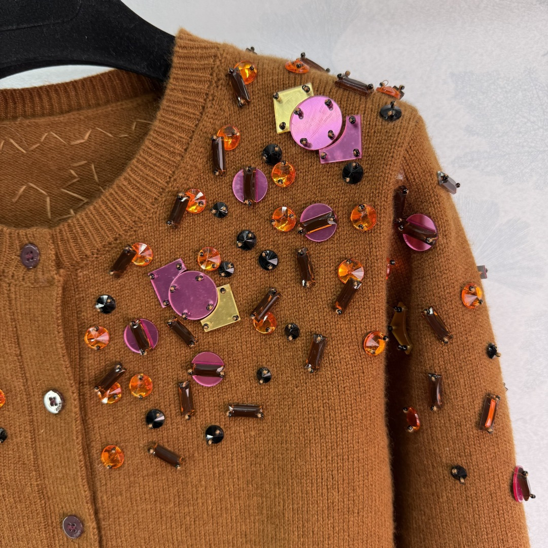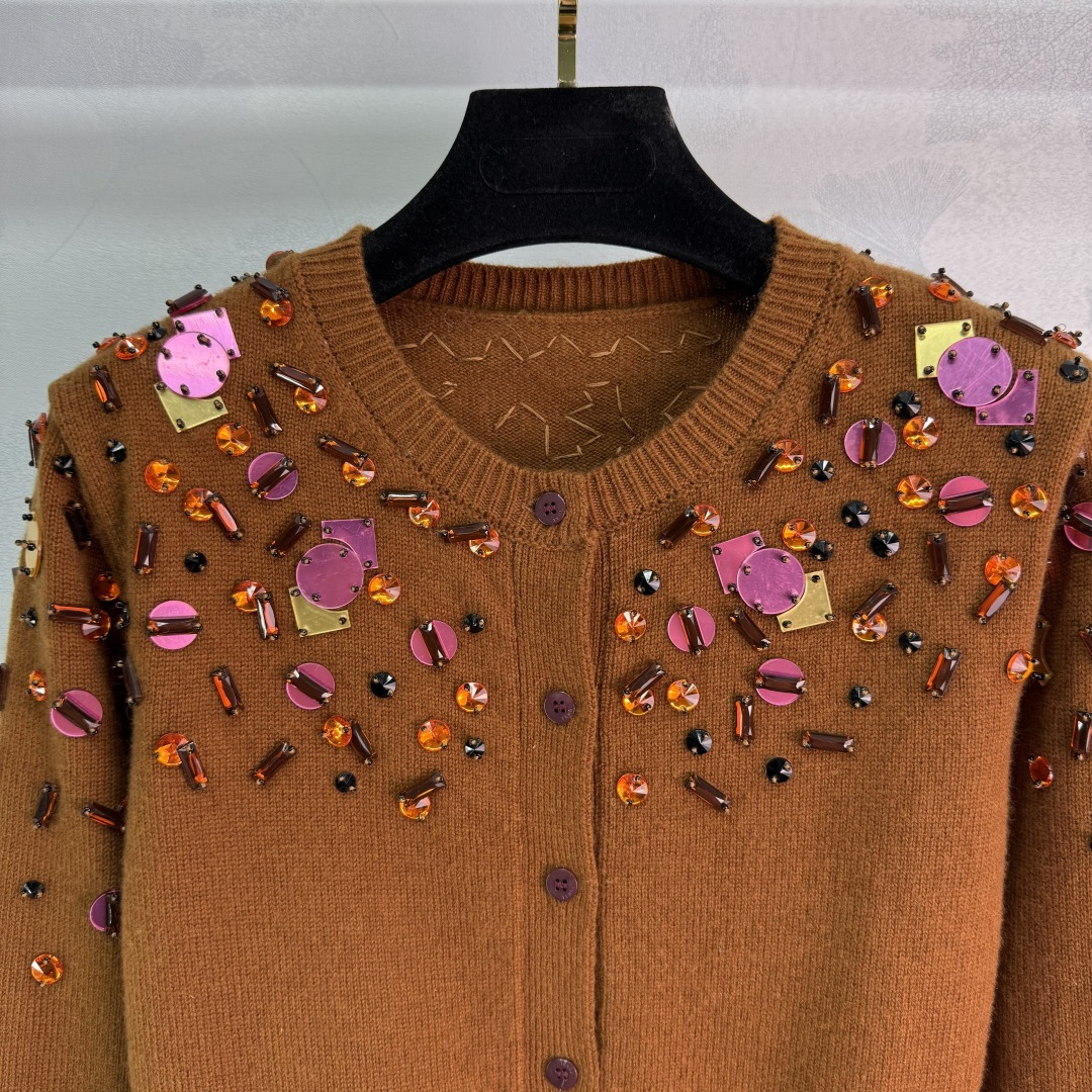 Details: Early Autumn Sequined Knit Cardigan, Custom YB Wool Yarn, Irregular Art Pattern, High-end Customization, Fine Workmanship