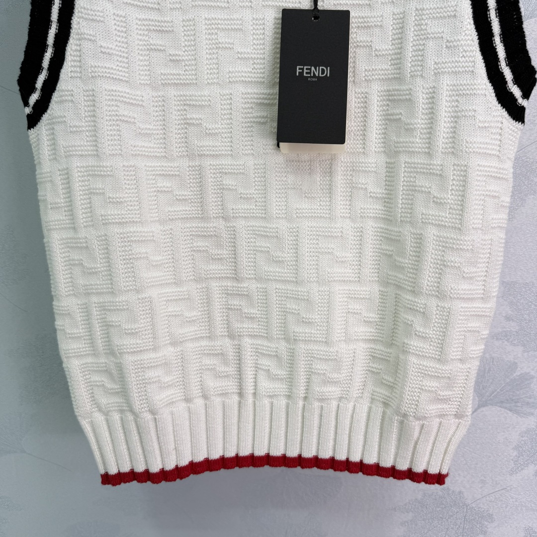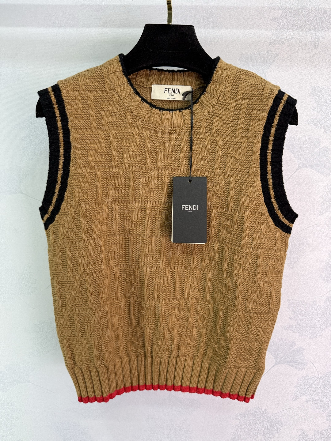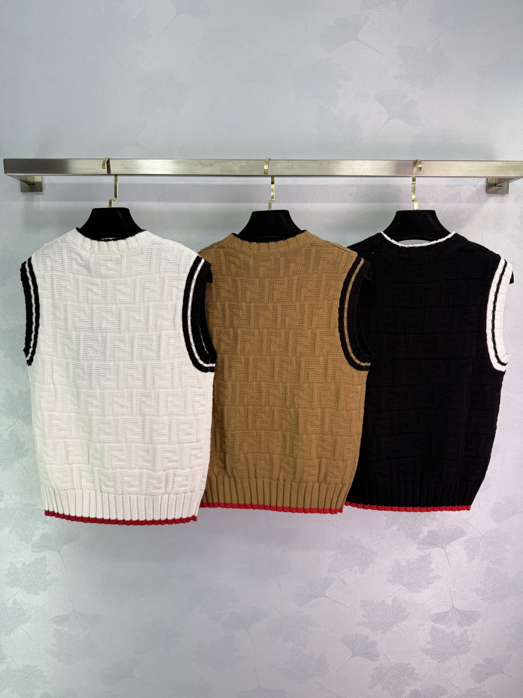 Details: Autumn/Winter Round Neck Knit Vest with Double F Logo Embroidery, Exquisite Texture, and Versatile Fit