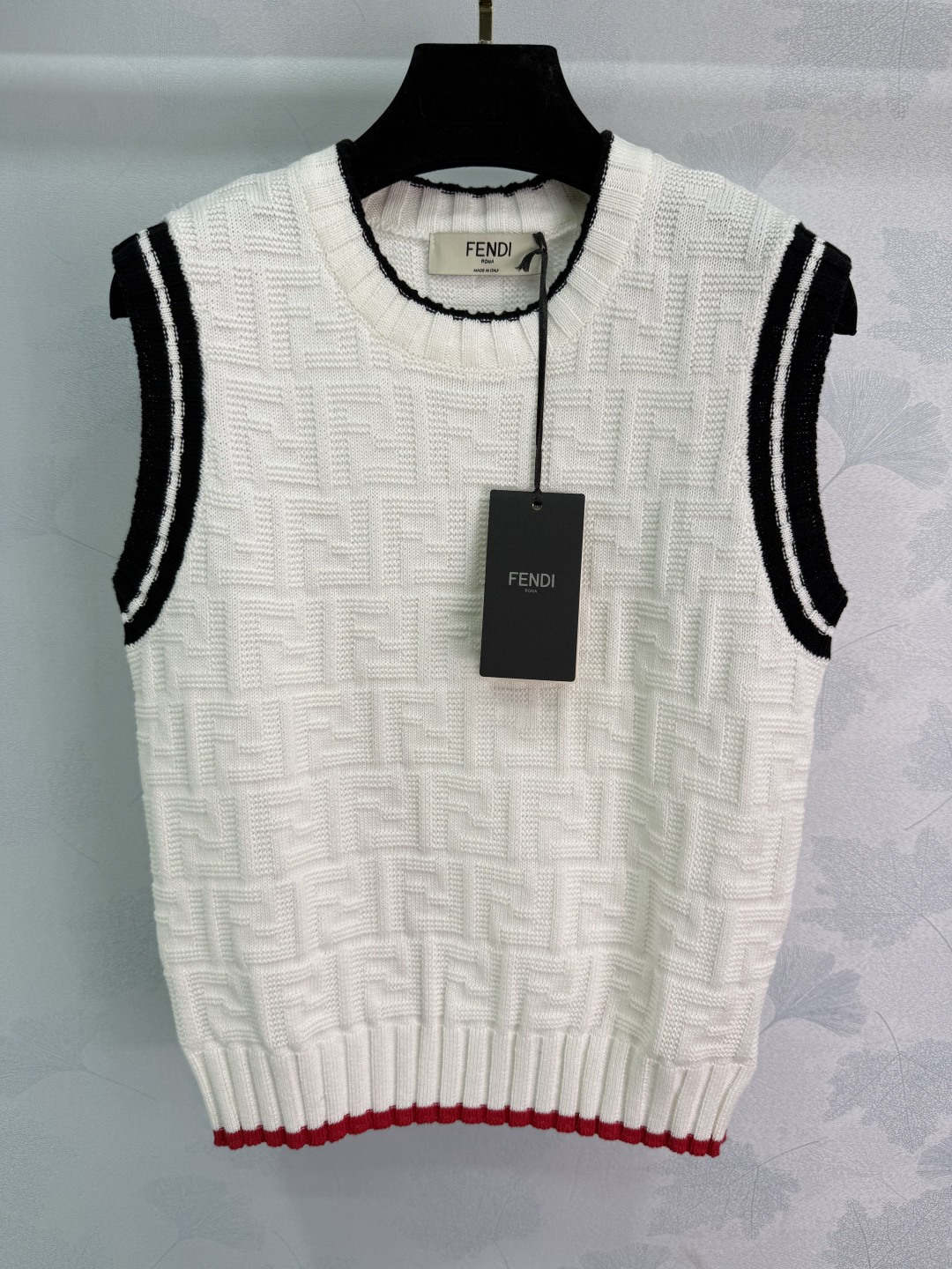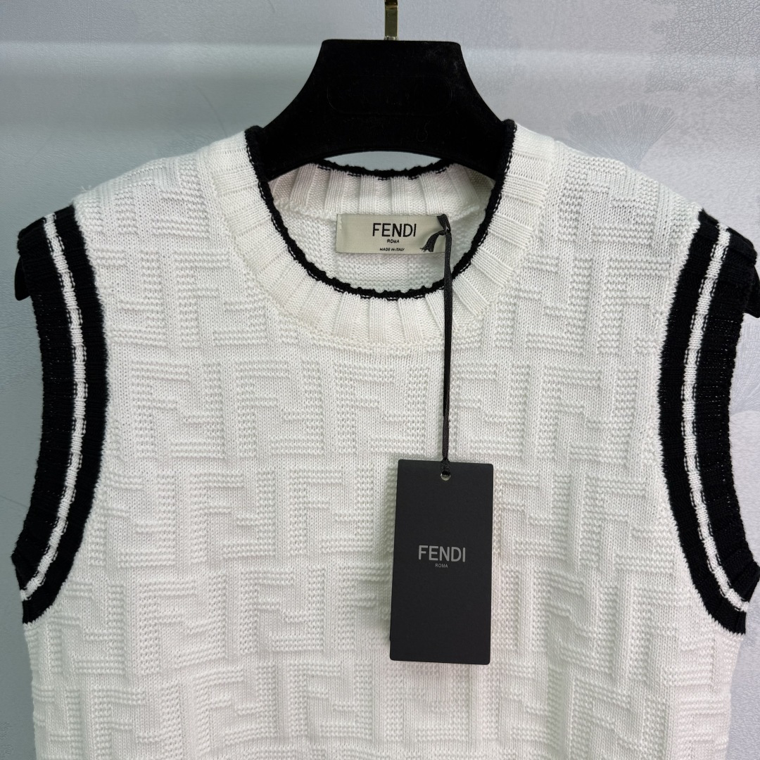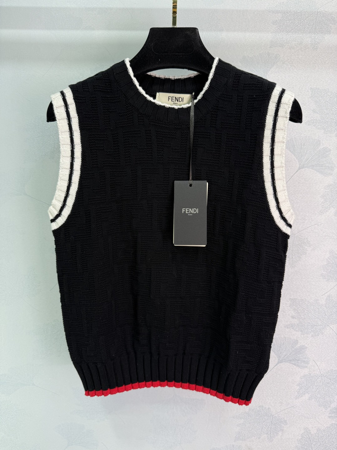 Details: Autumn/Winter Round Neck Knit Vest with Double F Logo Embroidery, Exquisite Texture, and Versatile Fit