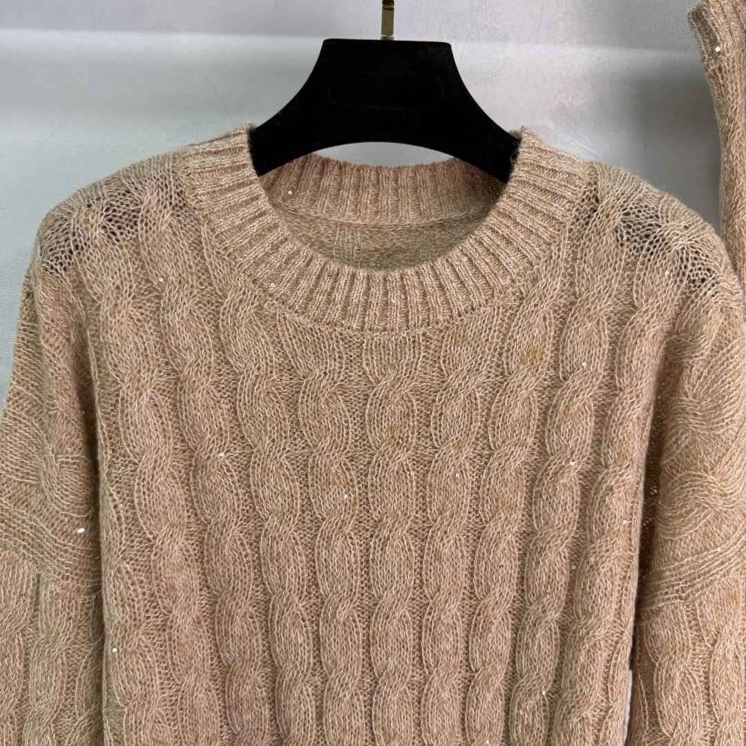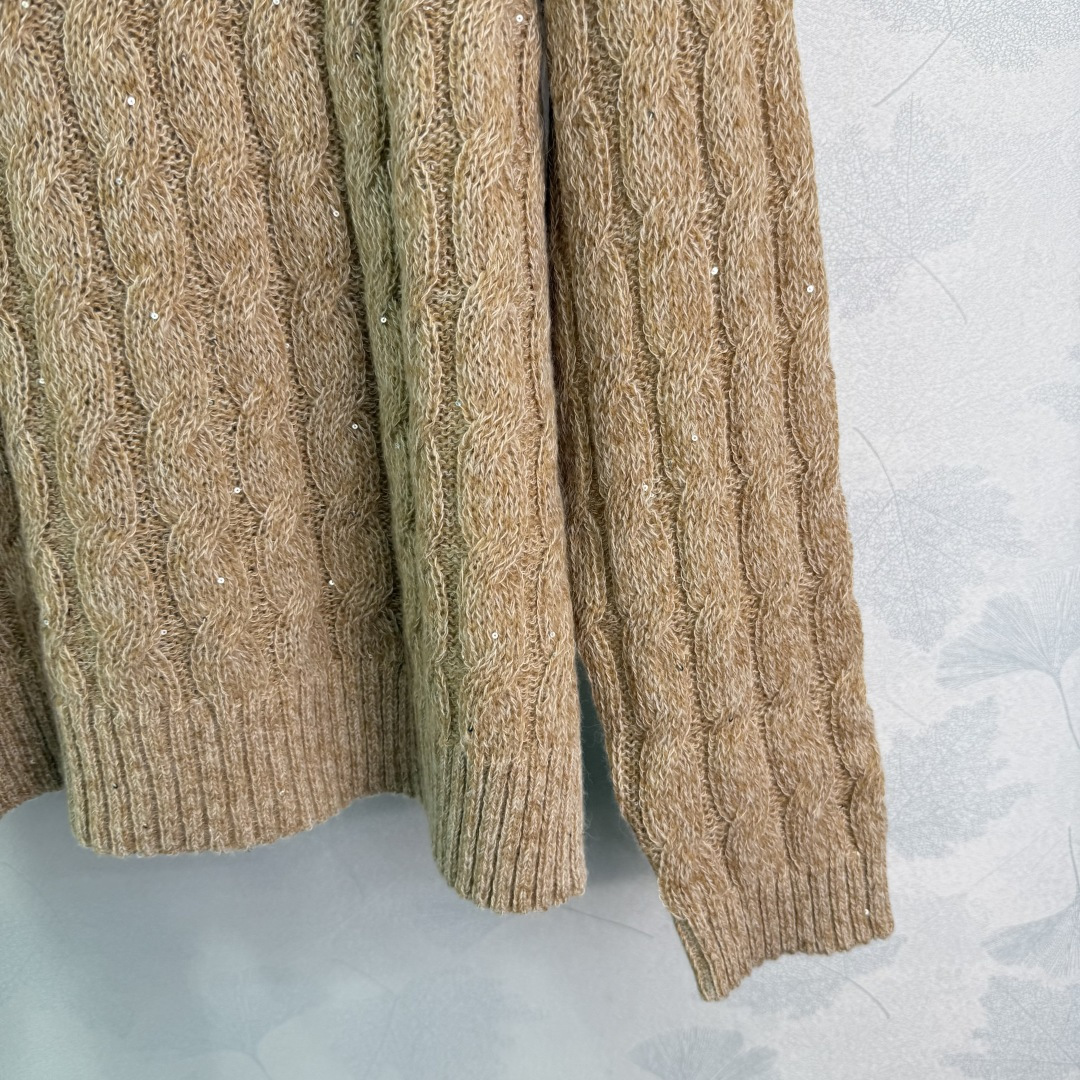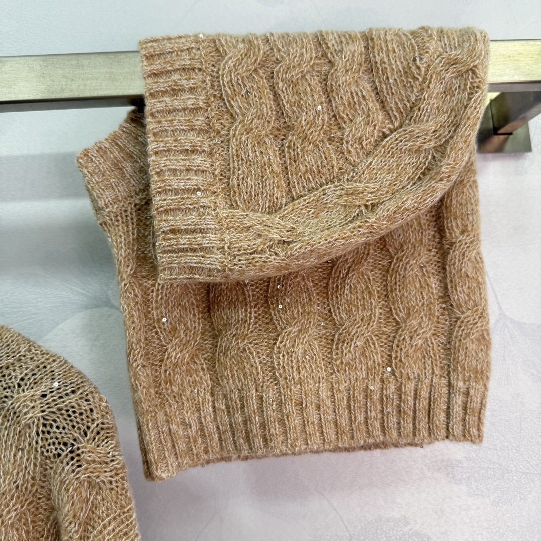 Details: Sparkling sequin cashmere sweater, removable hood and muffler, imported yarn, Swiss weaving, 1 color, S, M, L sizes
