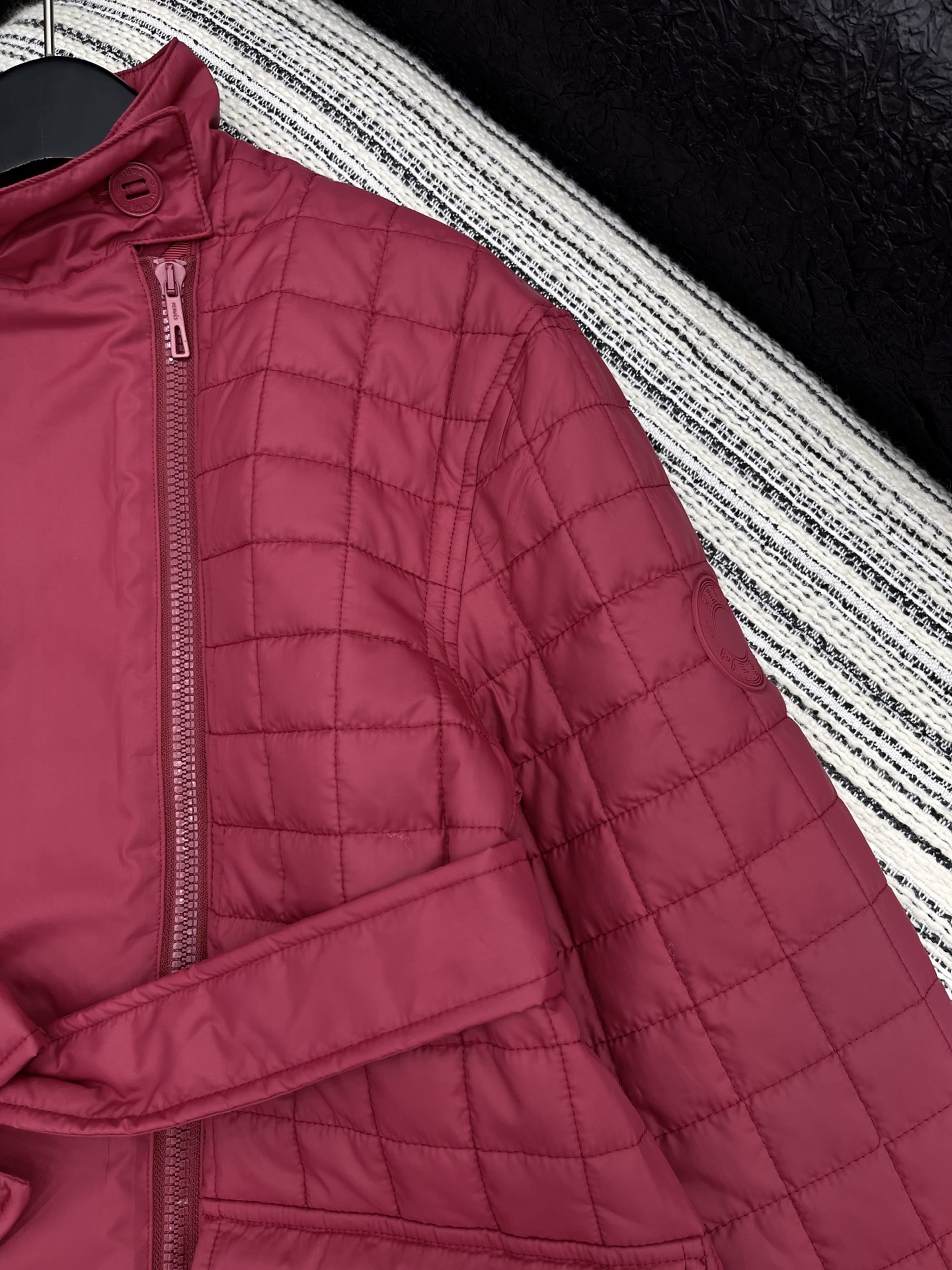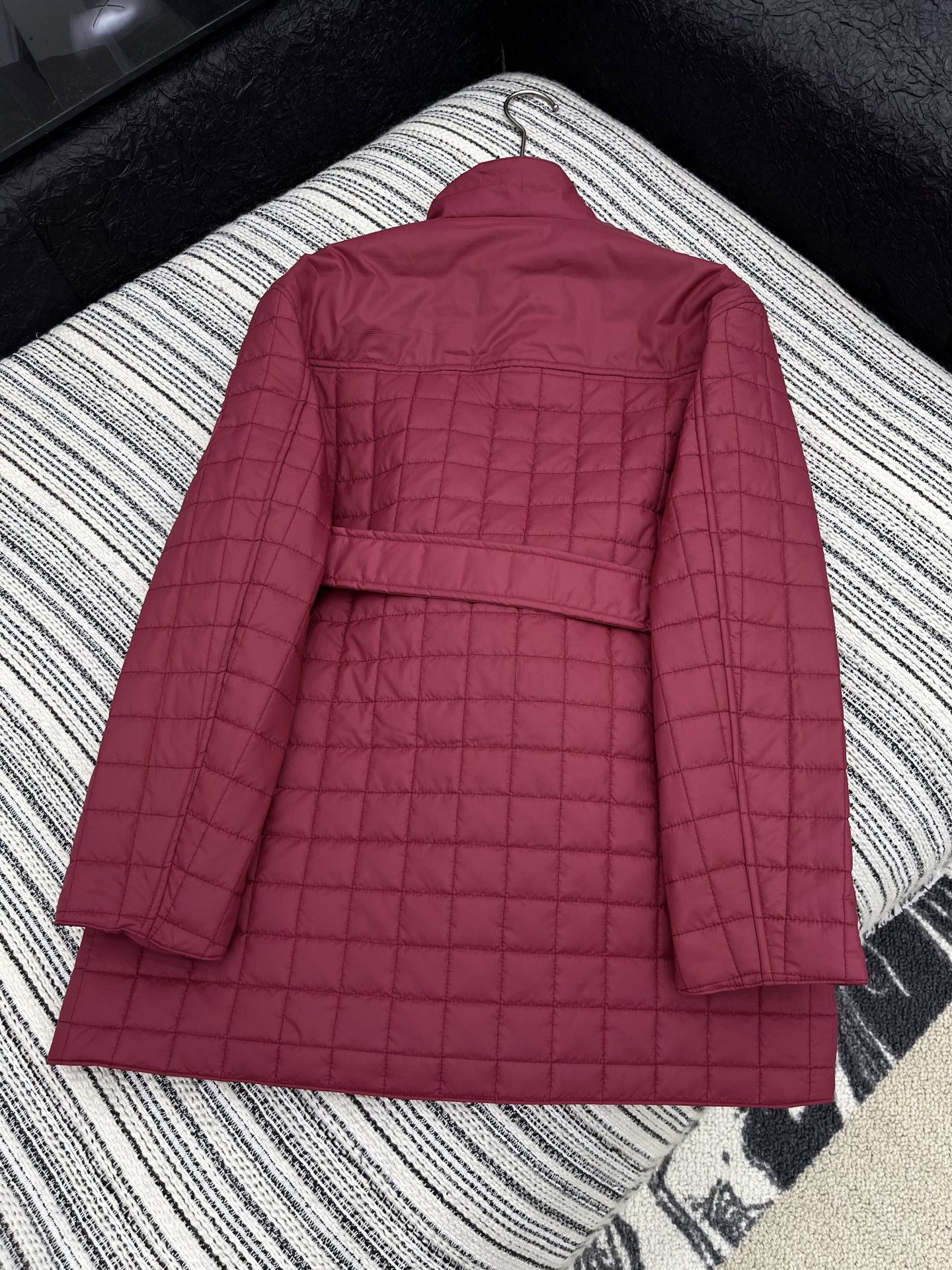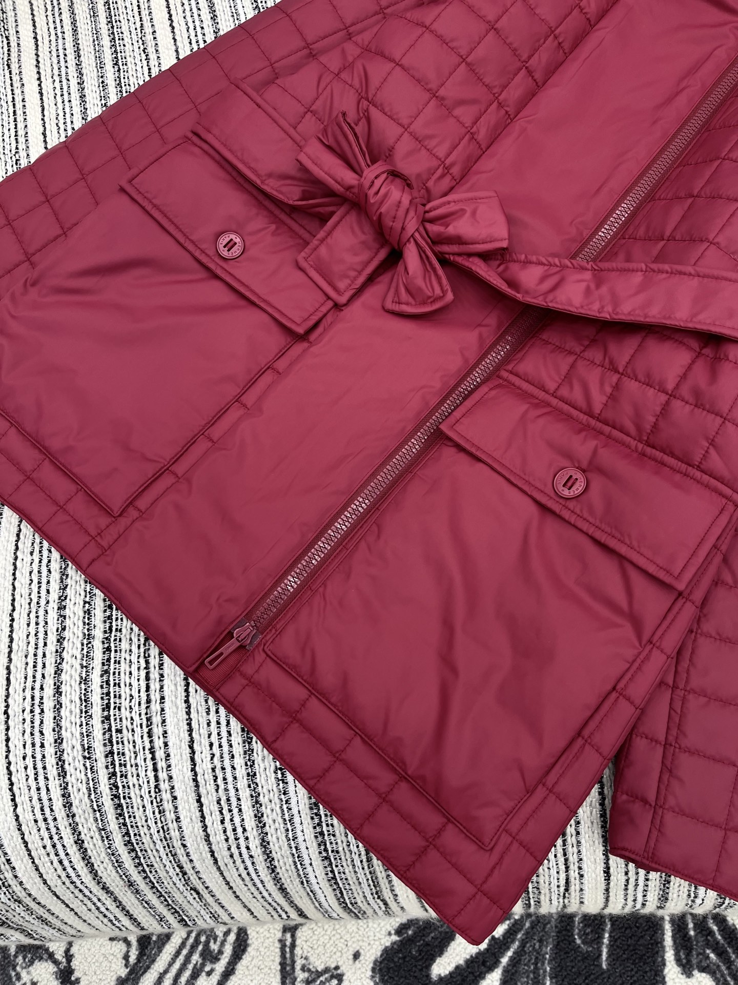 Details: autumn and winter zip-up cotton coat with stand collar and belt, featuring cloud-soft texture. High-end custom, fine workmanship
