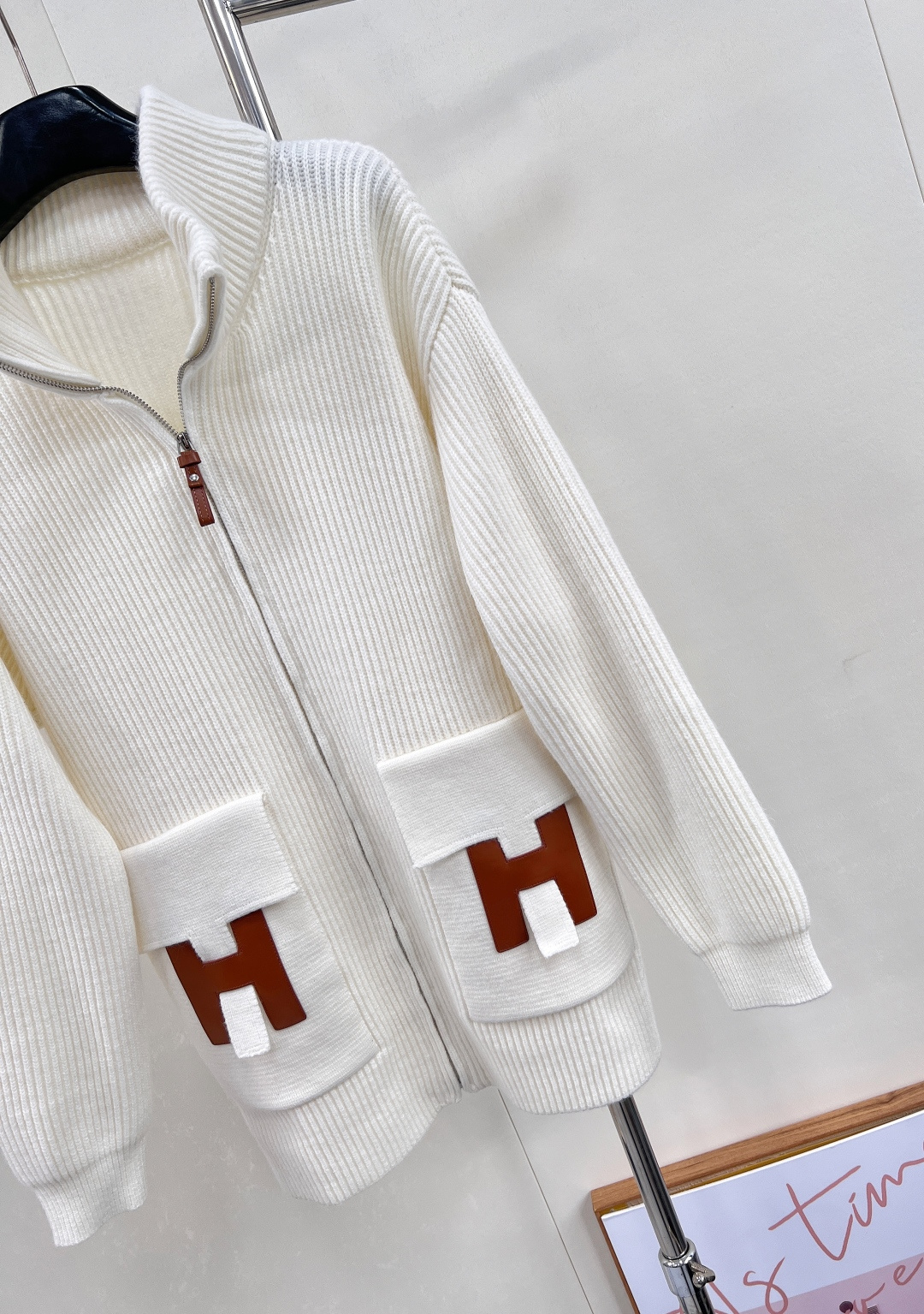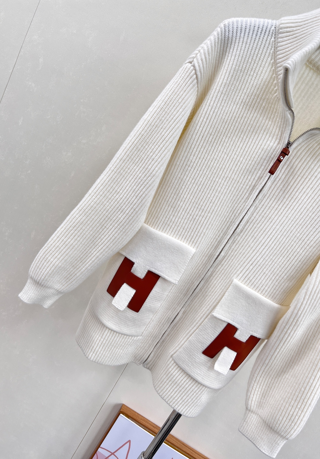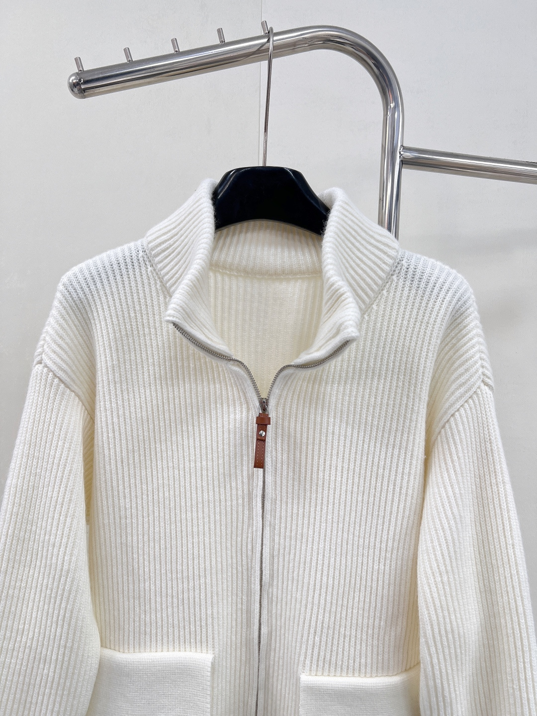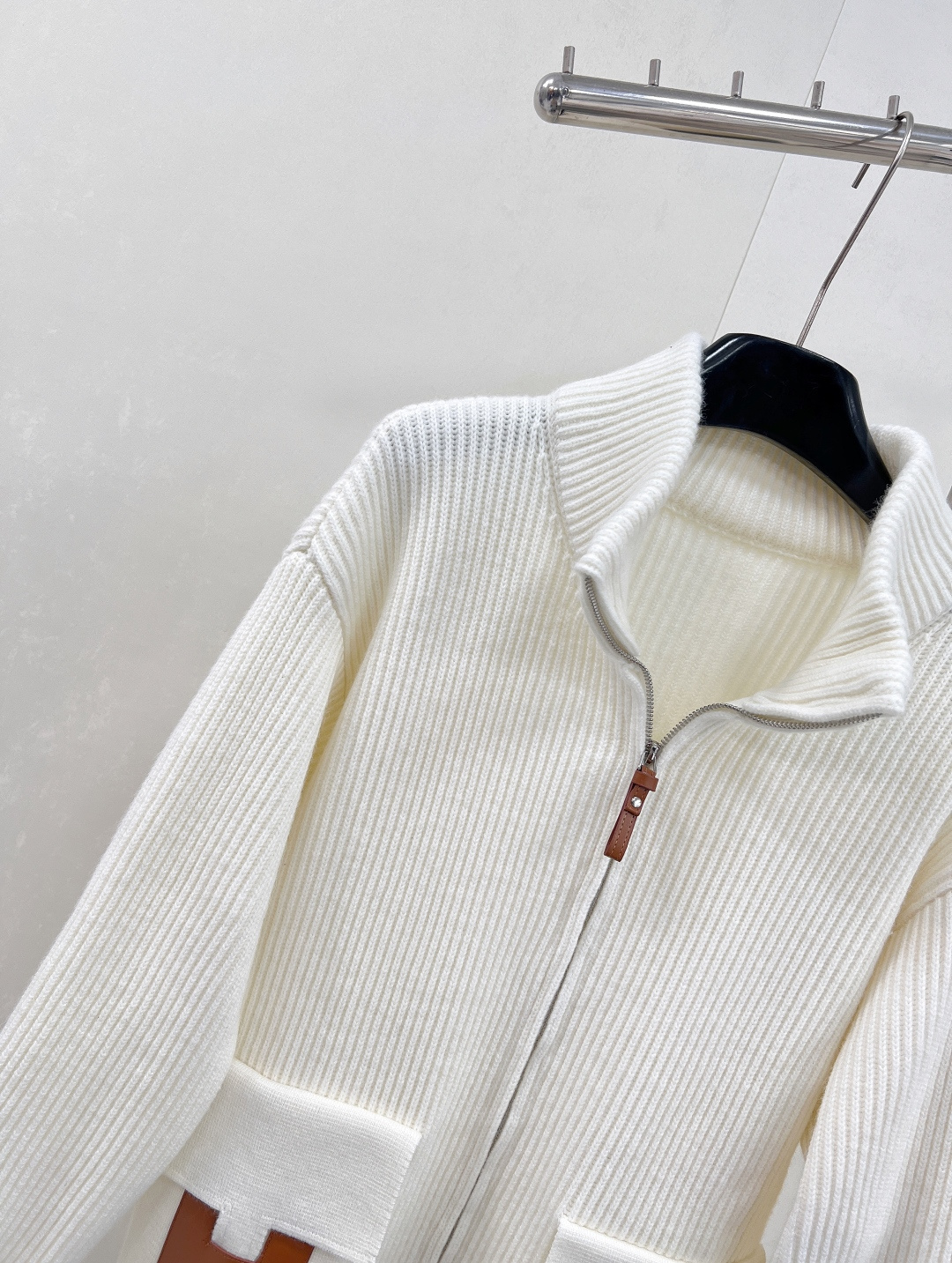 Details: Autumn Woolen Zip-up Jacket with H-shaped Pockets, Elegant and Luxurious
