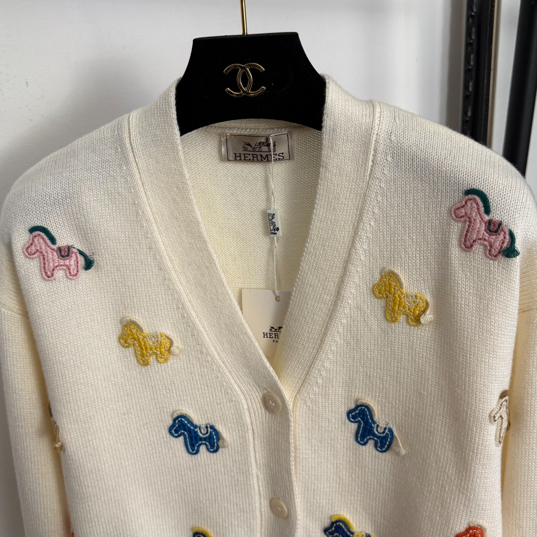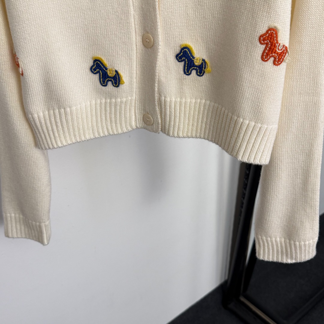 Details: Another option in beige, red, and black: pony embroidery V-neck long-sleeved wool knitted cardigan, SML sizes. Crafted with high-end customization and exquisite workmanship for 1:1 original quality.