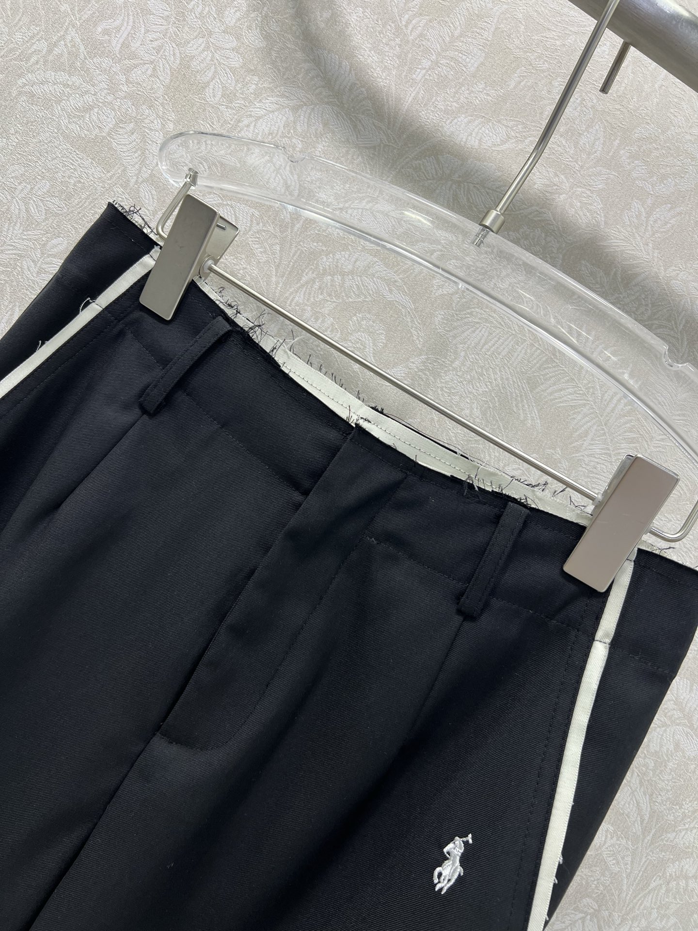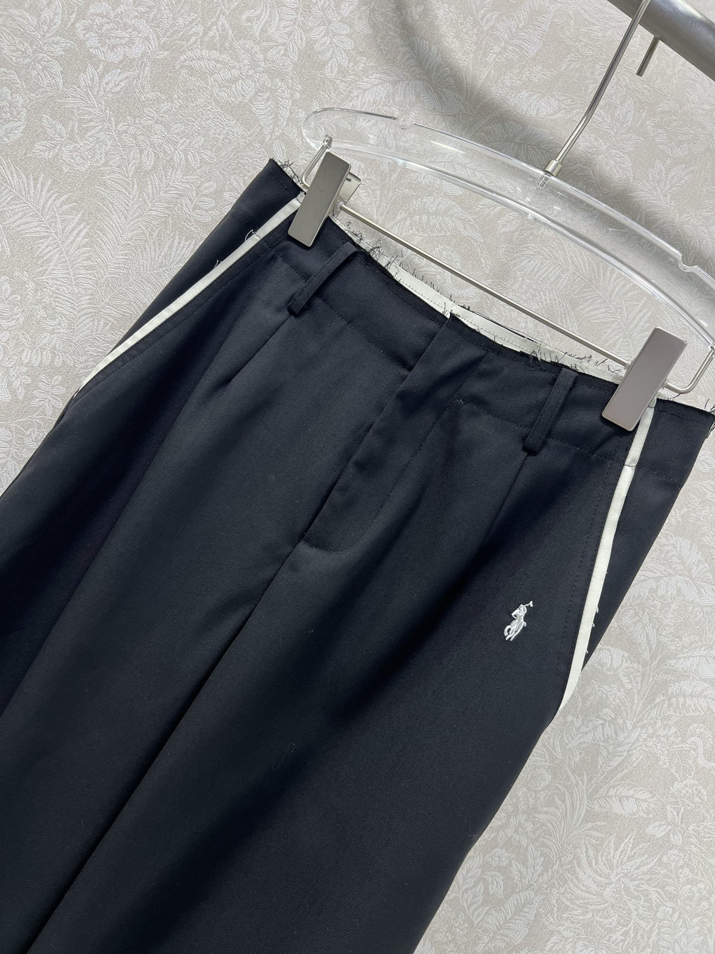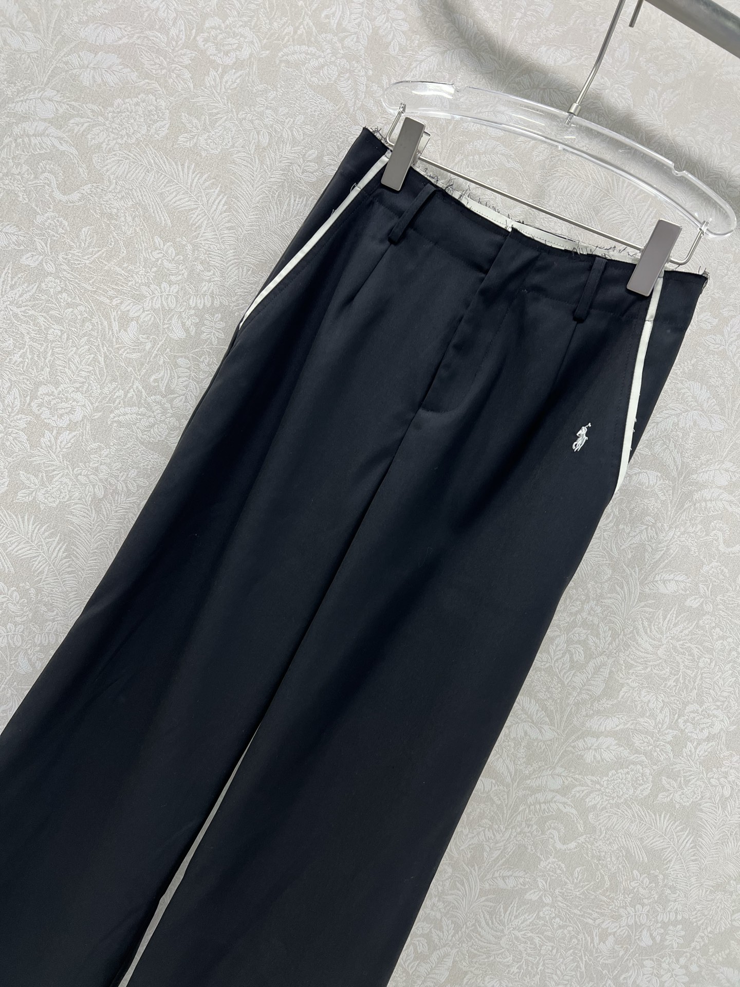 Details: Waist-frilled Wide-leg Trousers with Side Logo, Comfortable and Suitable for Various Settings