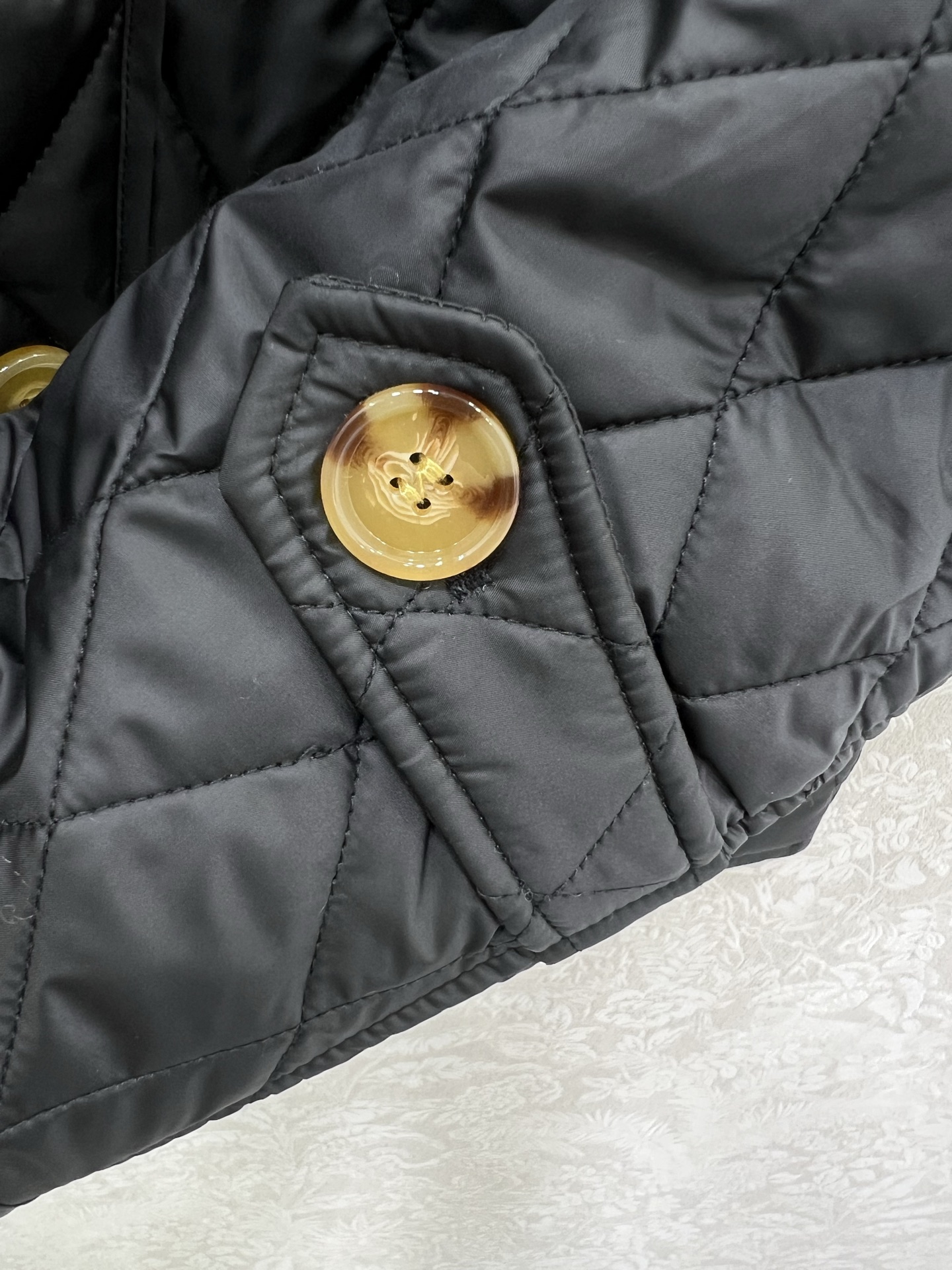 Details: Diamond-quilted cotton jacket with vintage lining, classic H shape, warm and stylish for autumn.