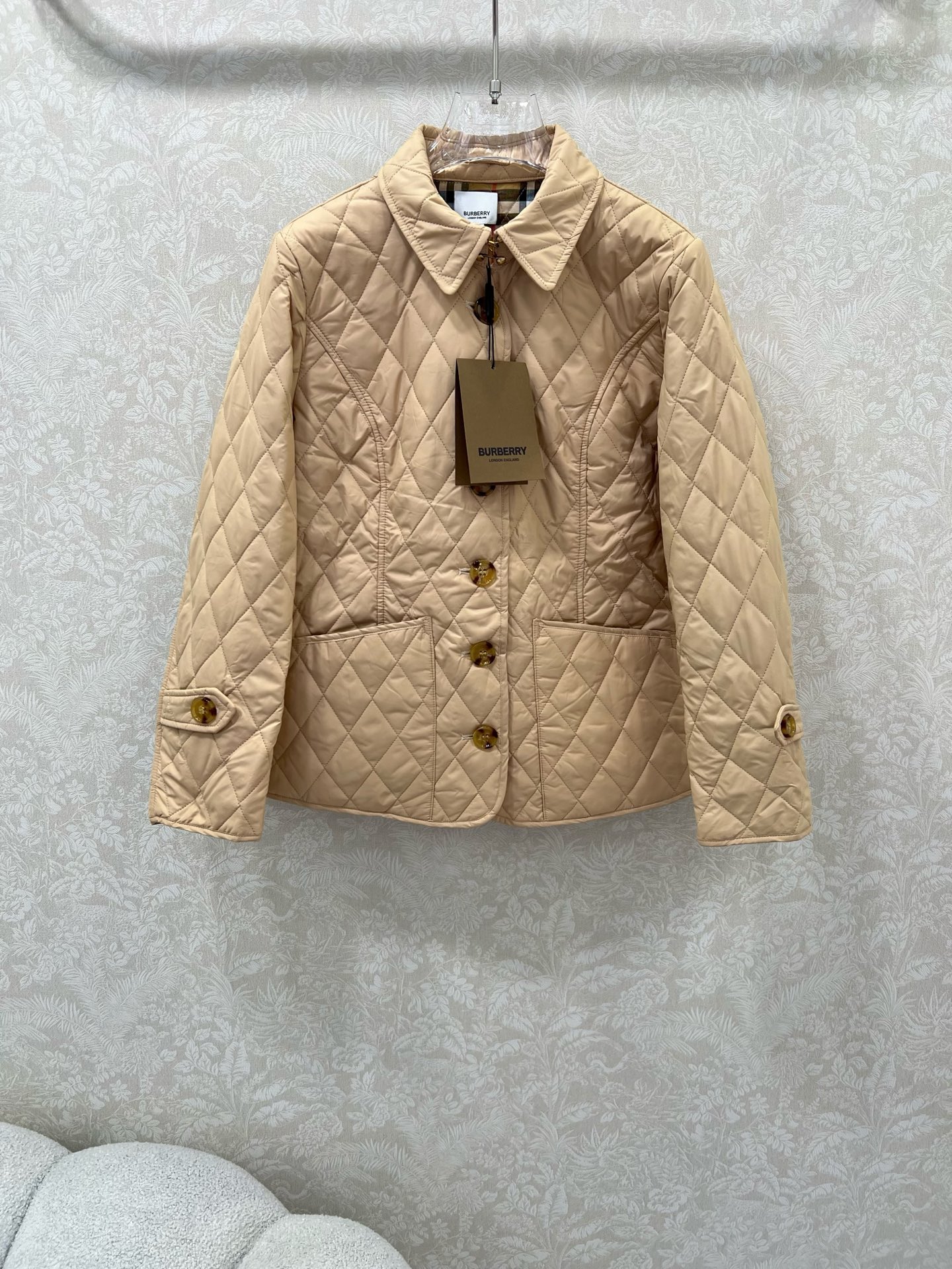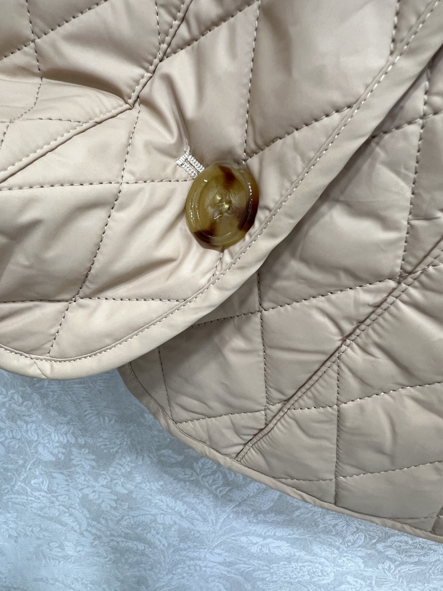 Details: Diamond-quilted cotton jacket with vintage lining, classic H shape, warm and stylish for autumn.