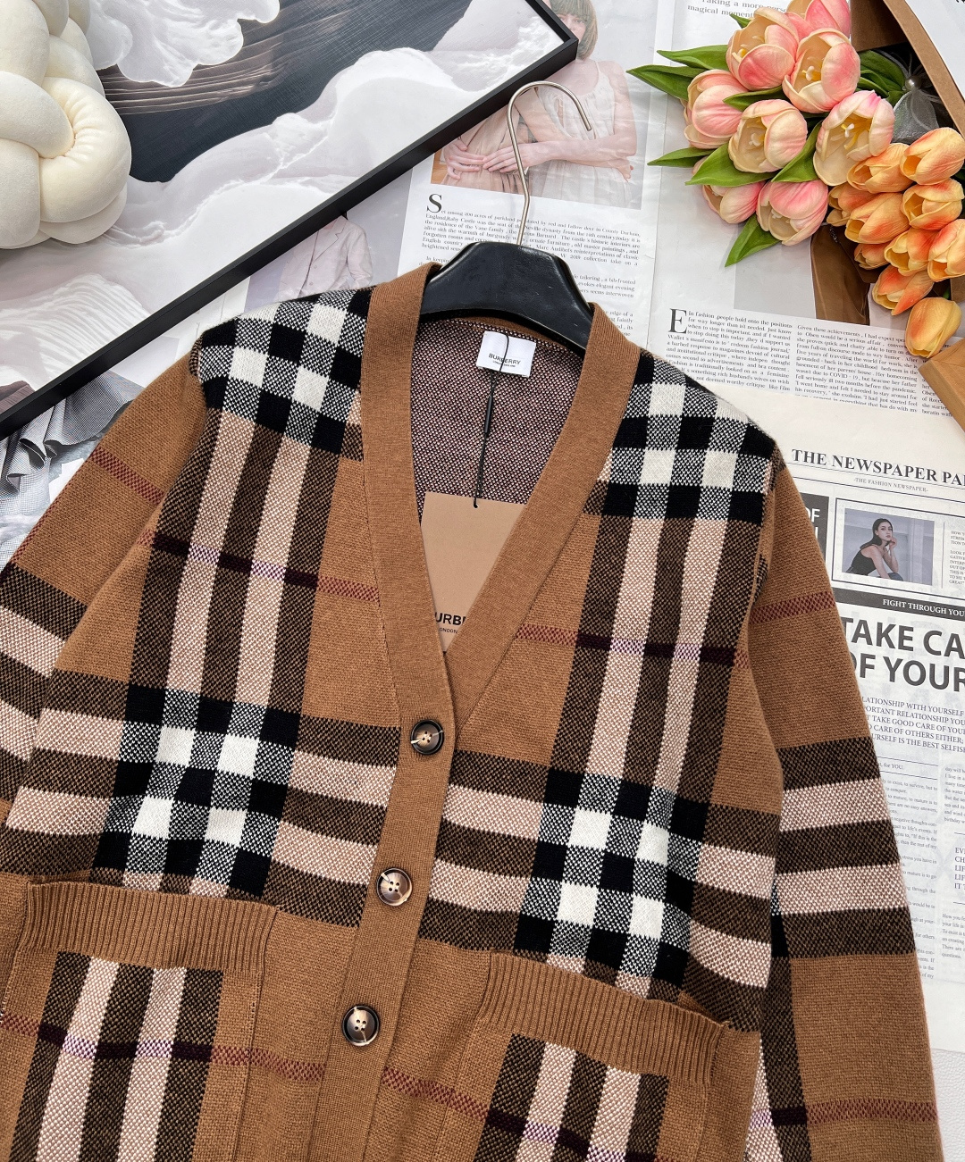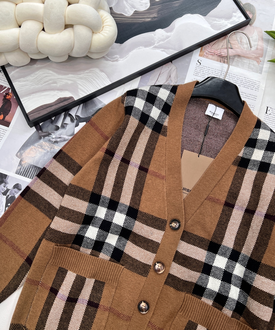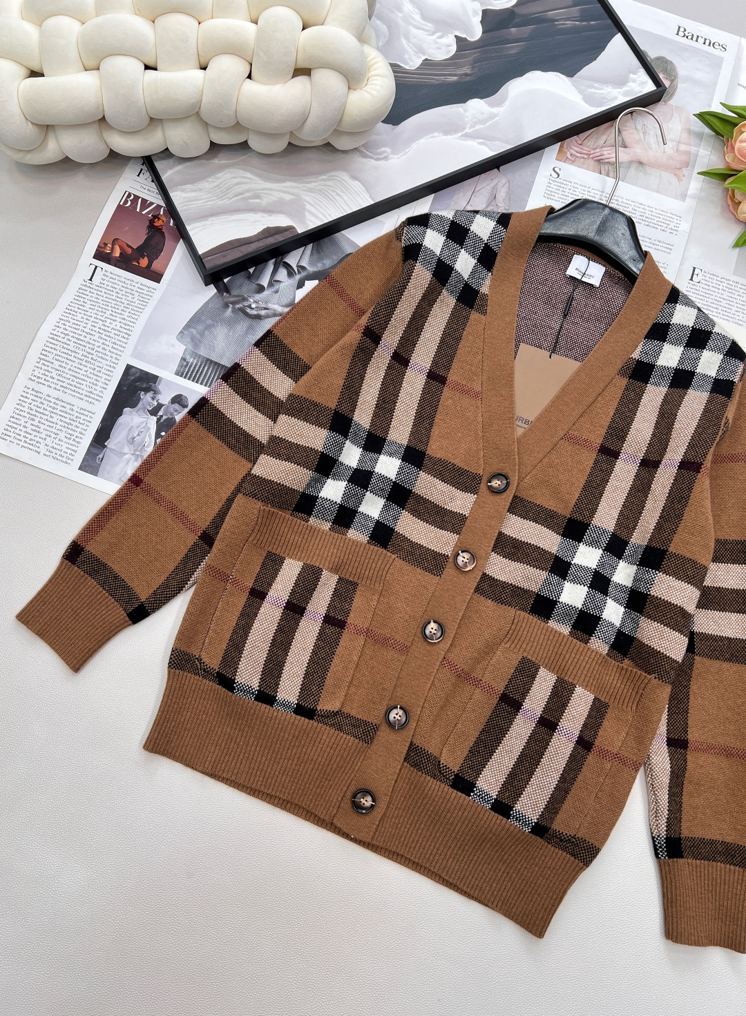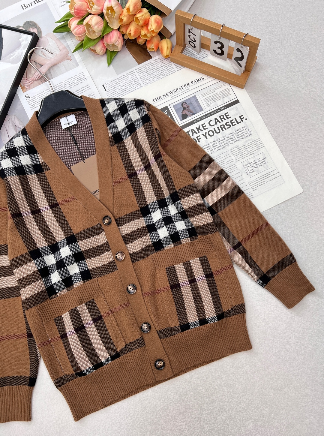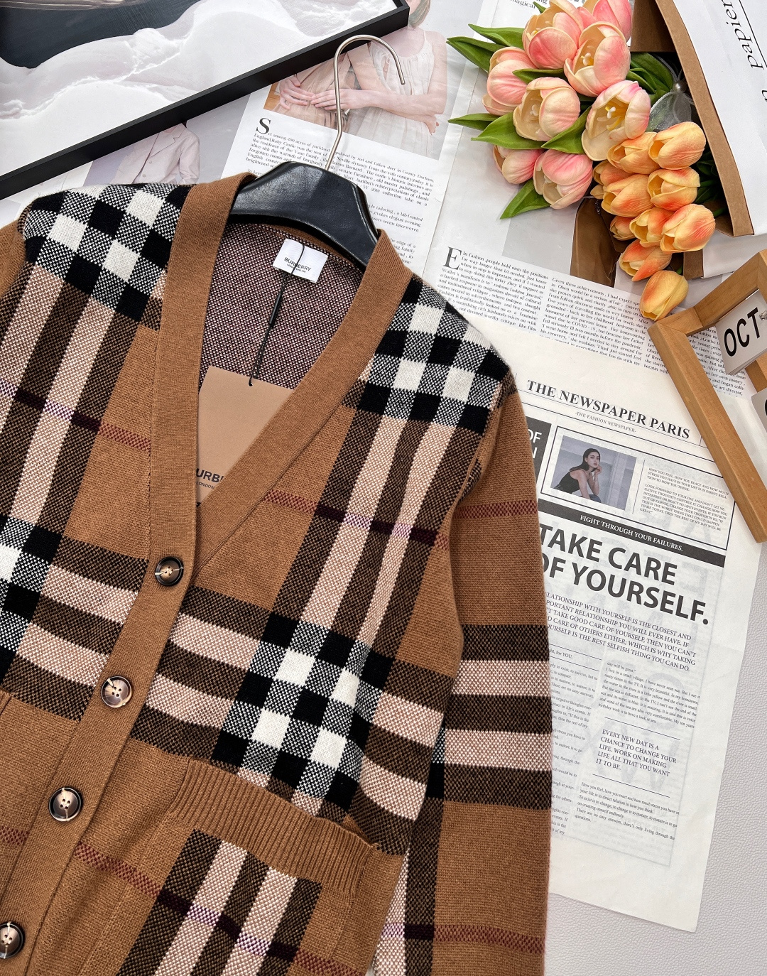 Details: Classic check wool-cashmere cardigan with double-layer jacquard, featuring a slimming silhouette and exuding a lazy charm.
