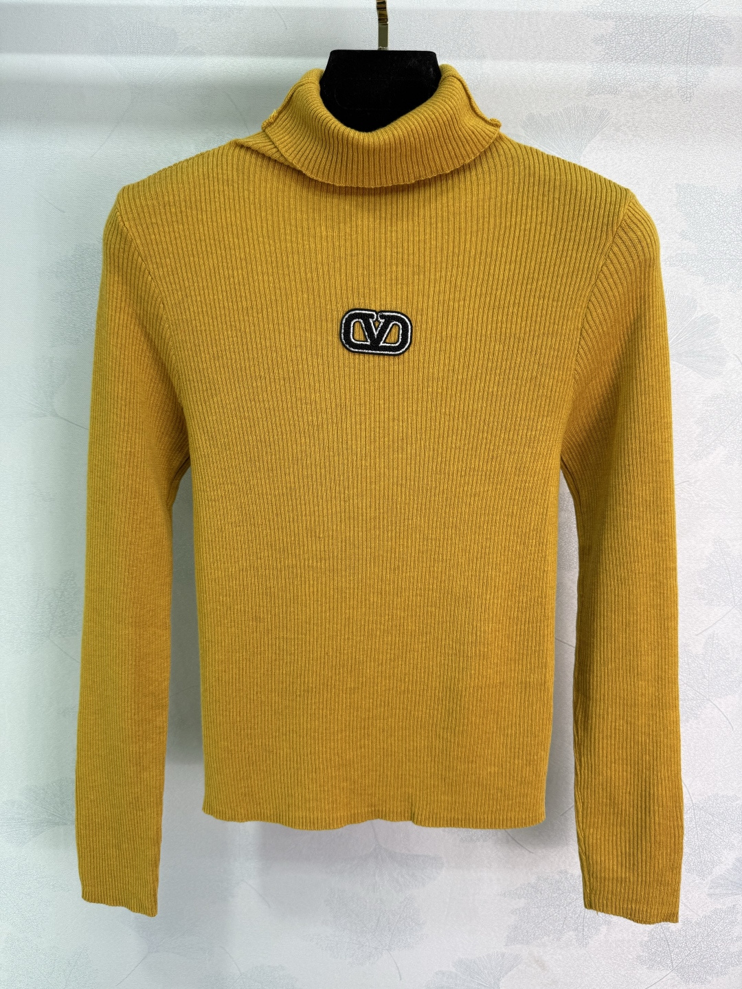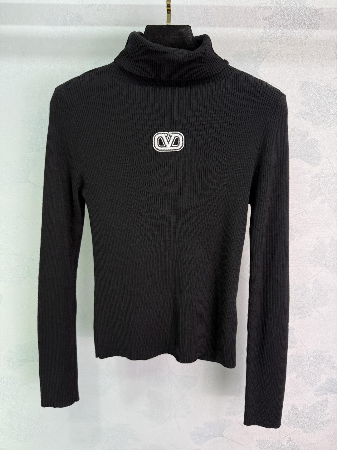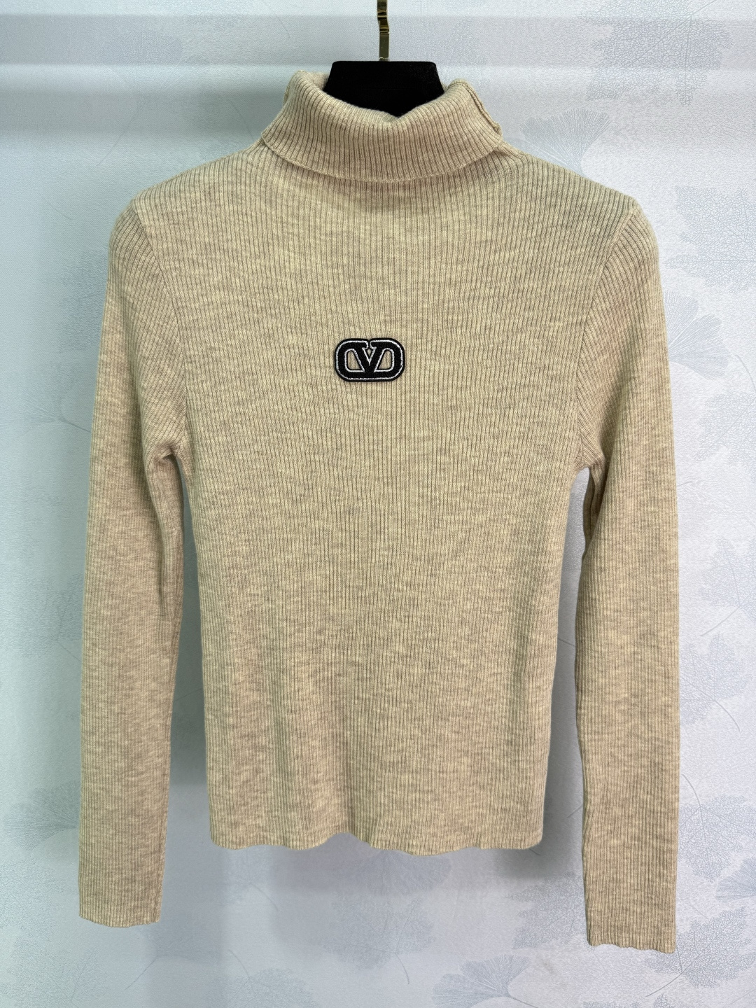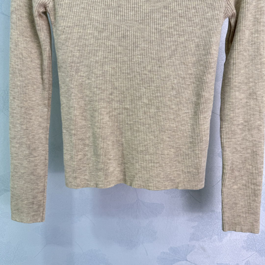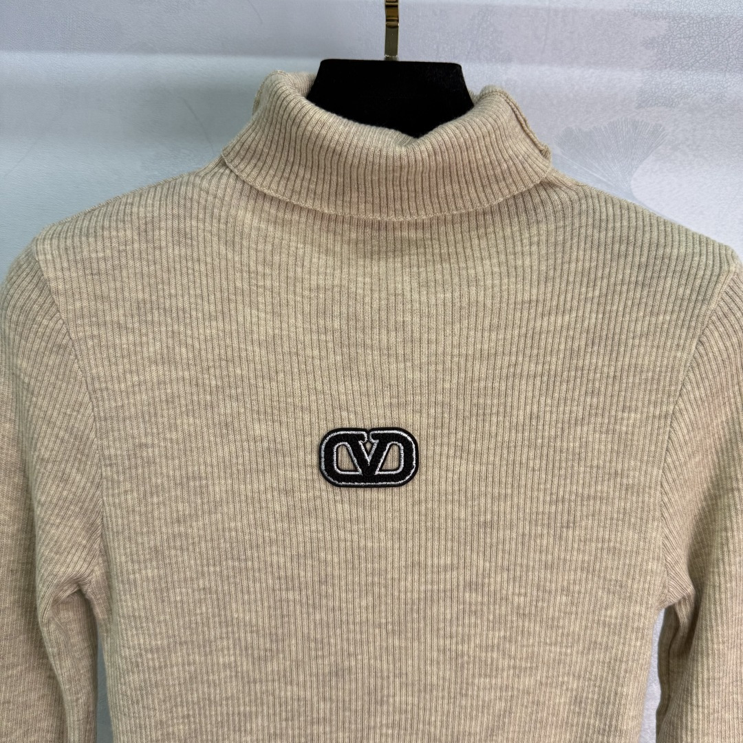 Details: Early autumn high-neck knit top, made of custom wool yarn, soft and stylish, slim fit, with signature letter design for a premium look.