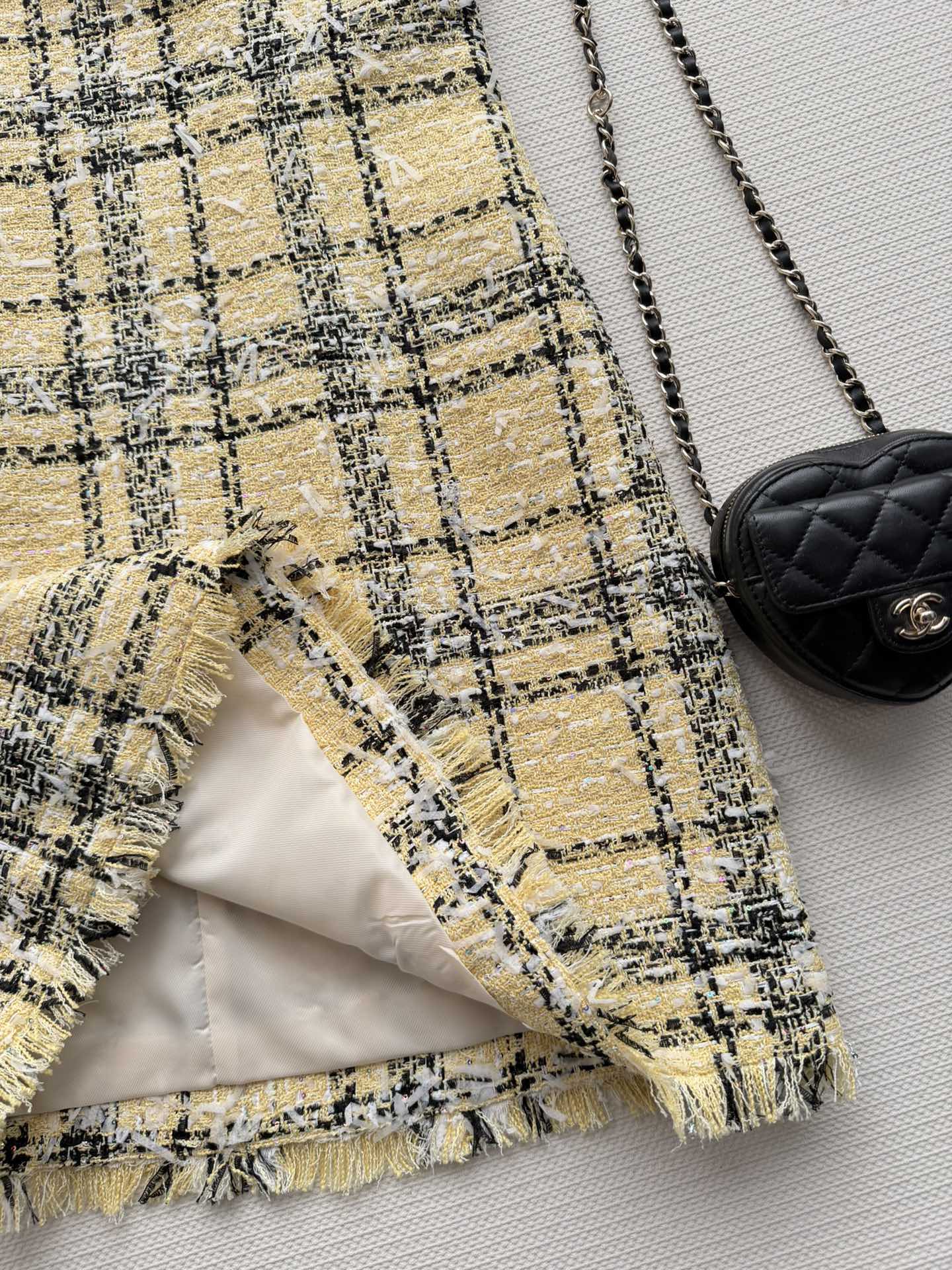Details: Spring plaid tweed suspender skirt, classic Scottish design, soft texture, elegant and vintage, suitable for daily or formal wear.