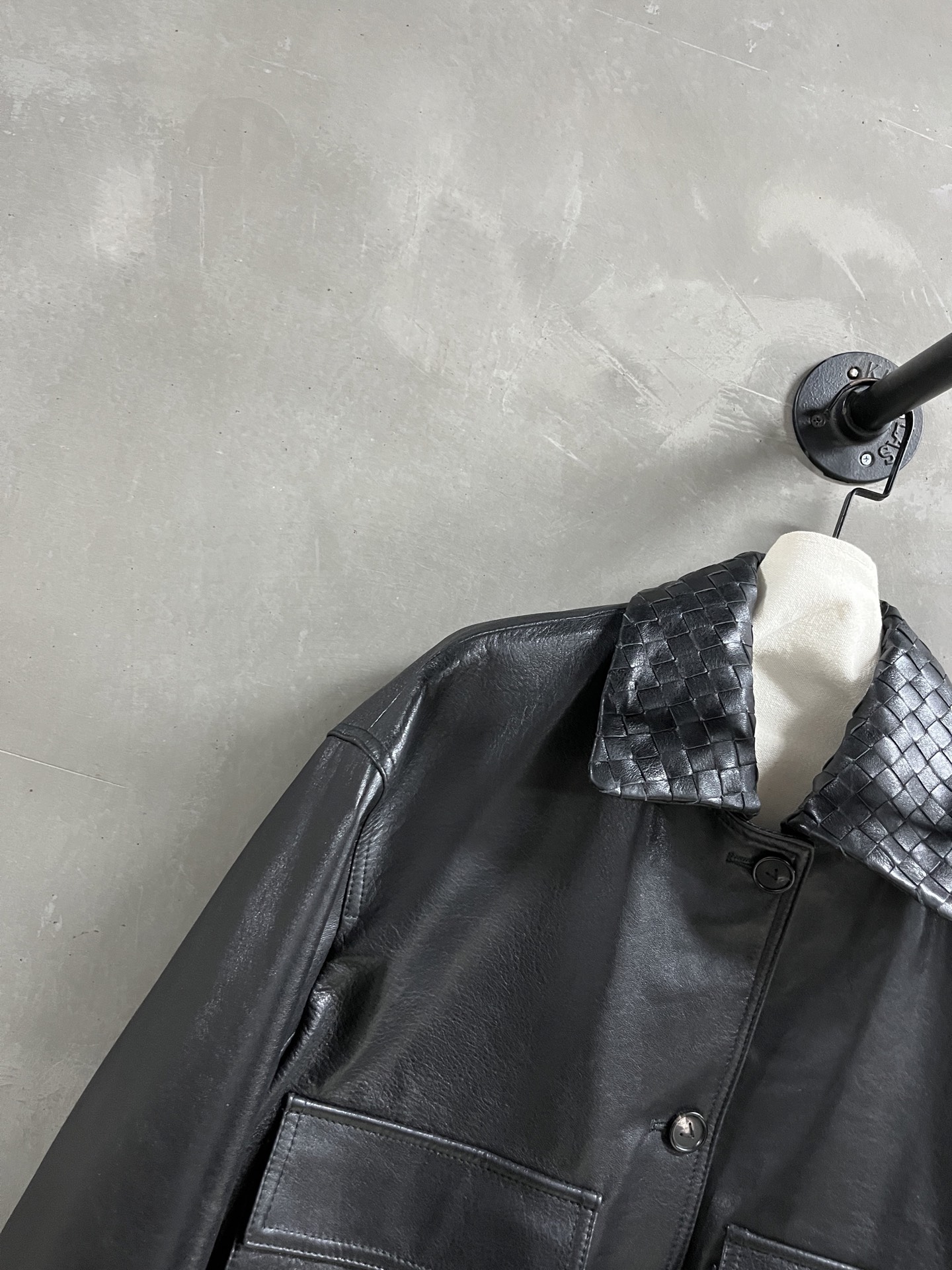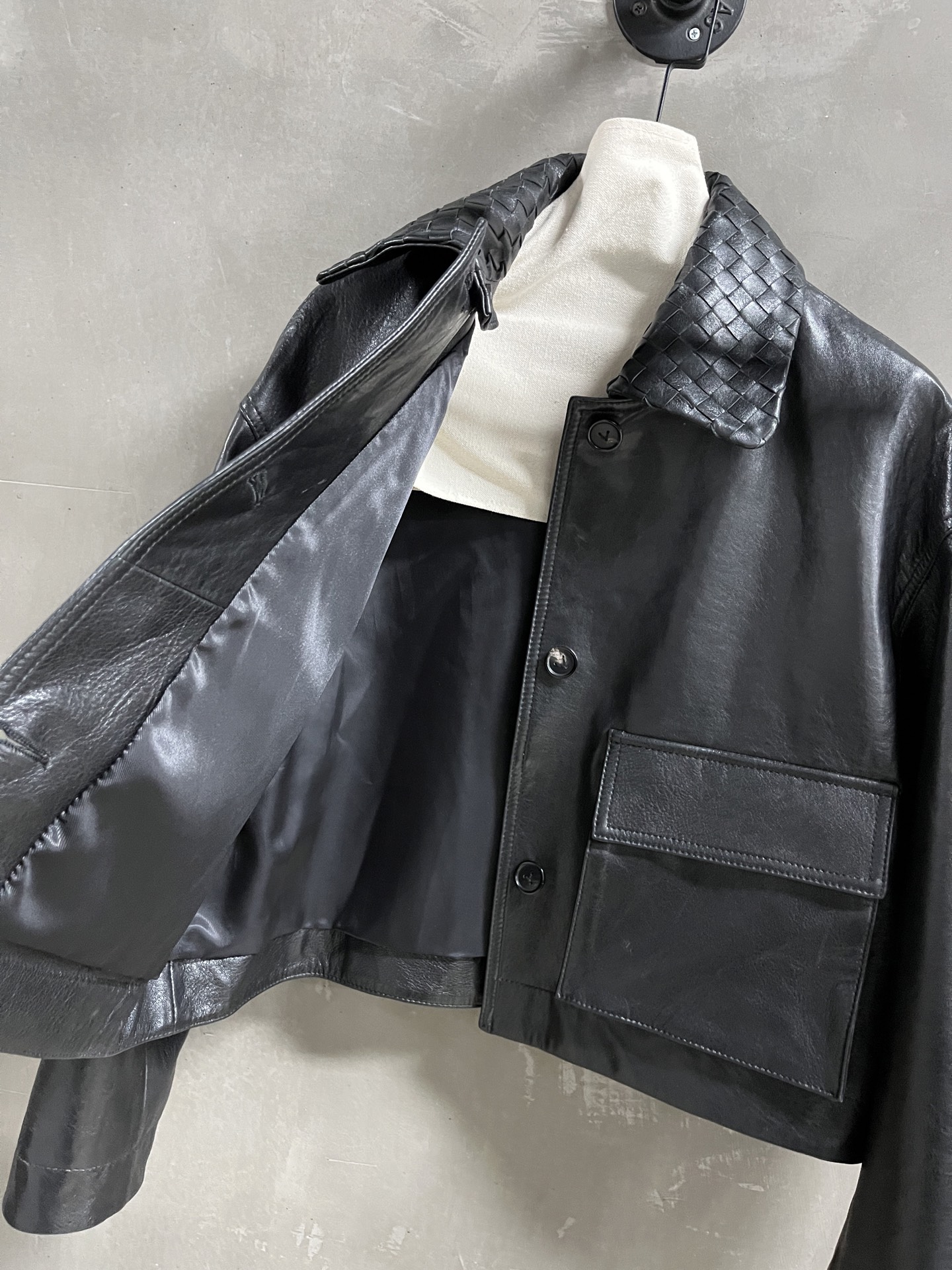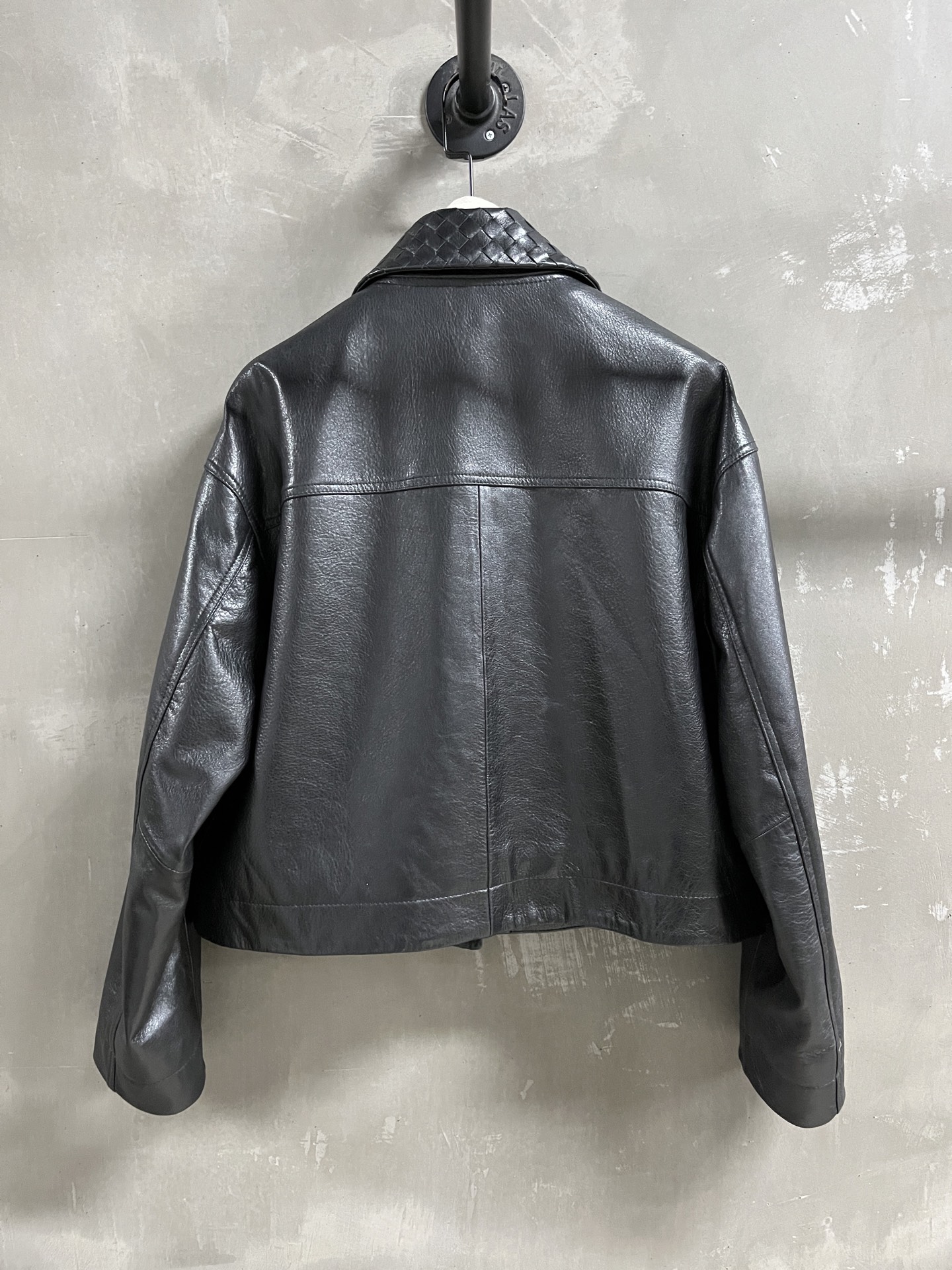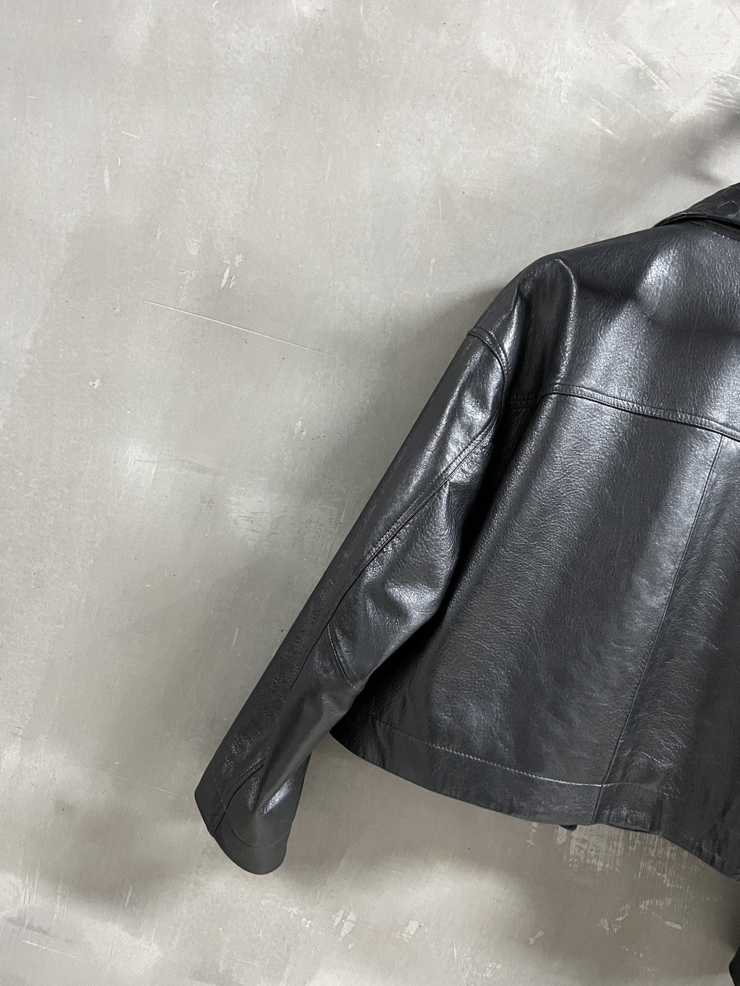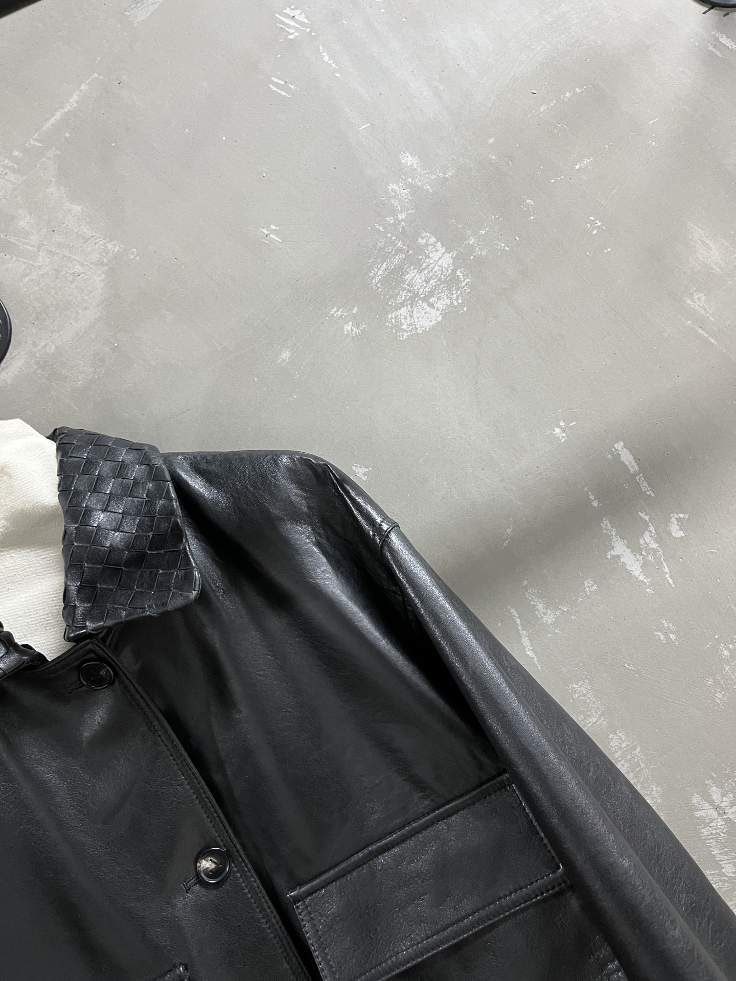 Bottega Veneta Sophisticated Goat Oil Wax Leather Denim Jacket