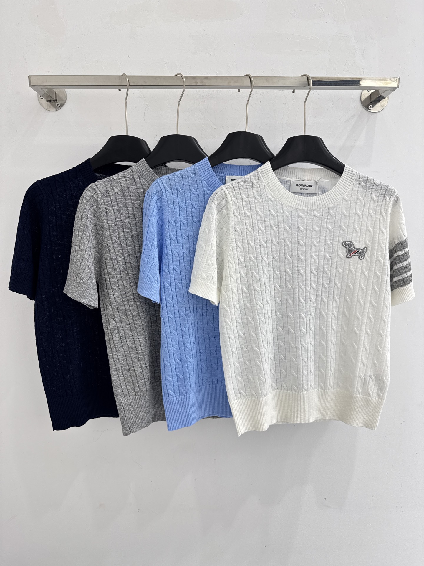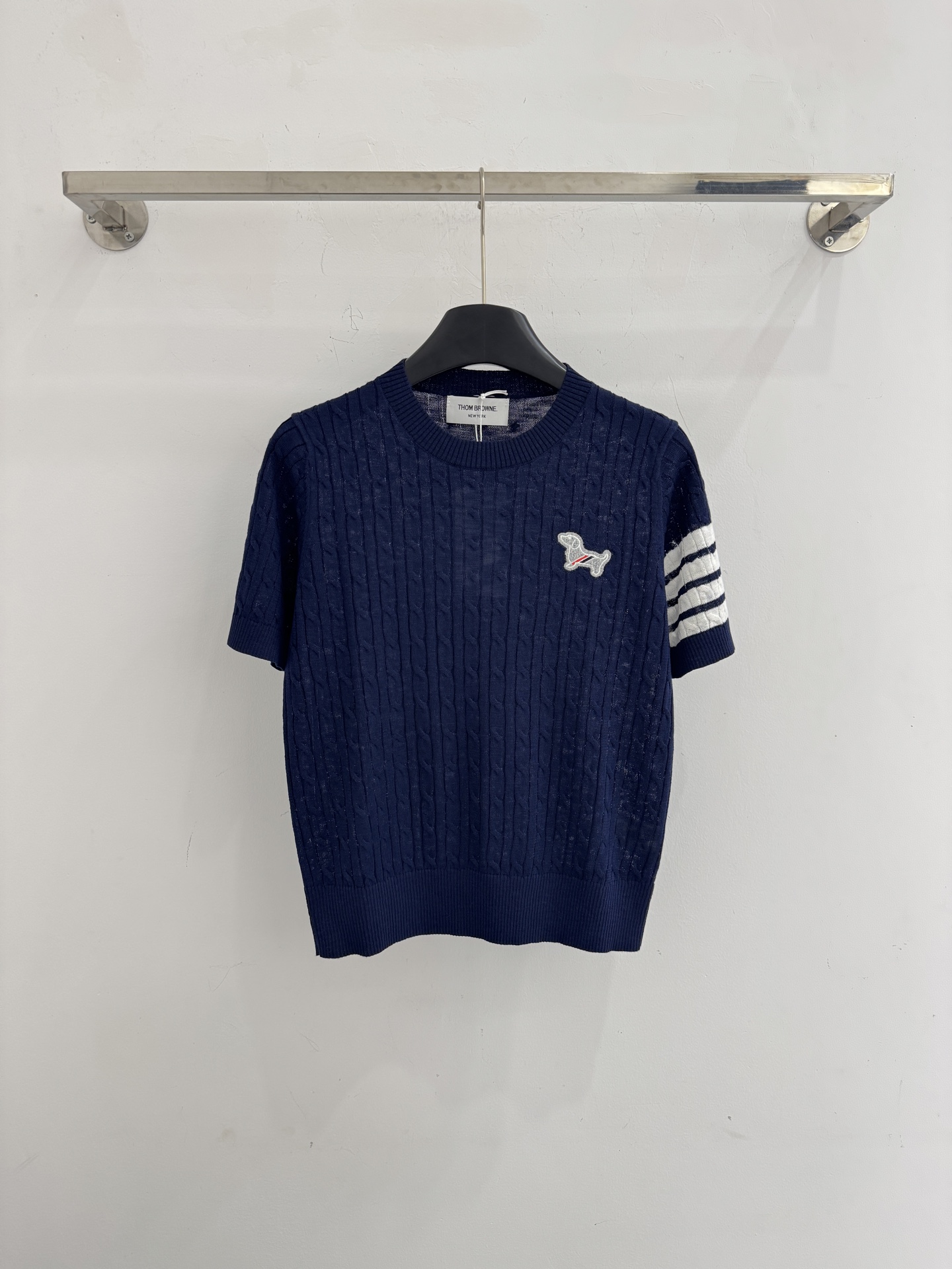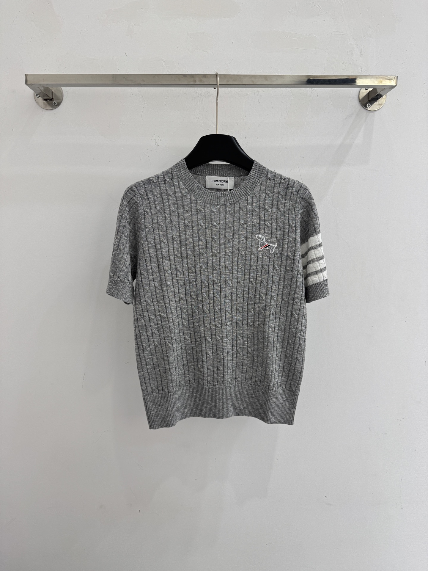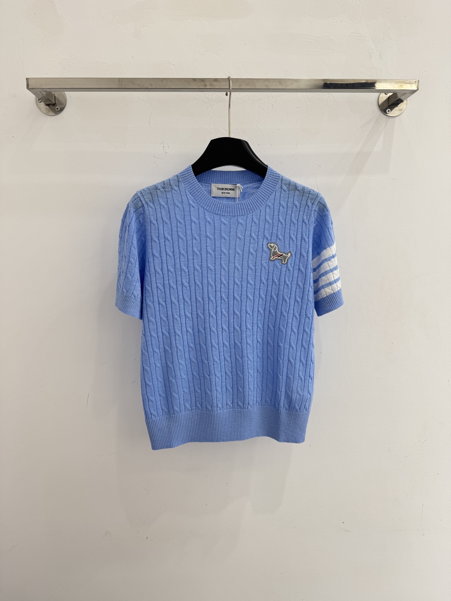 Details: Spring-summer new styles: Simple cable-knit short-sleeved tops, sweet and sporty, with a cute dog embroidery on the chest.