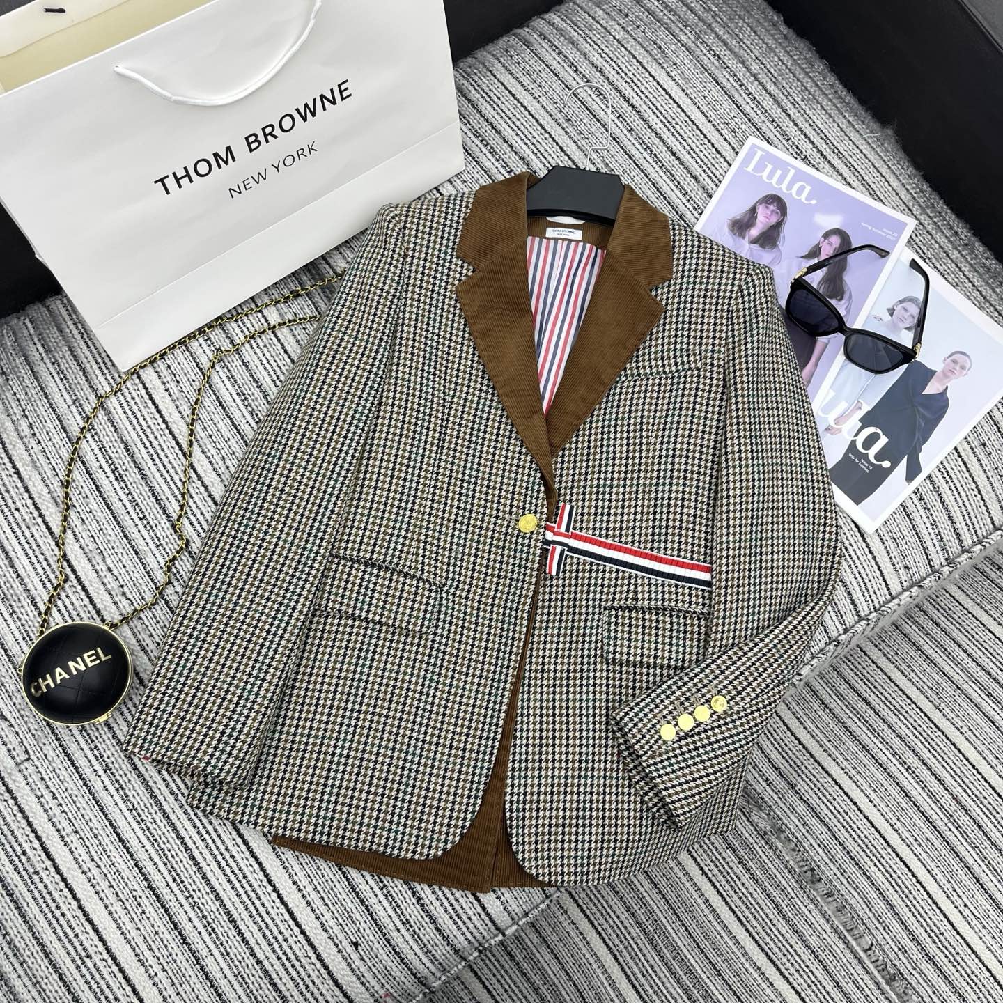 Details: New autumn and winter tweed suit-vest set with a detachable belt, crafted from wool fabric, stylish, with high-end customization, fine workmanship, and 1:1 original quality
