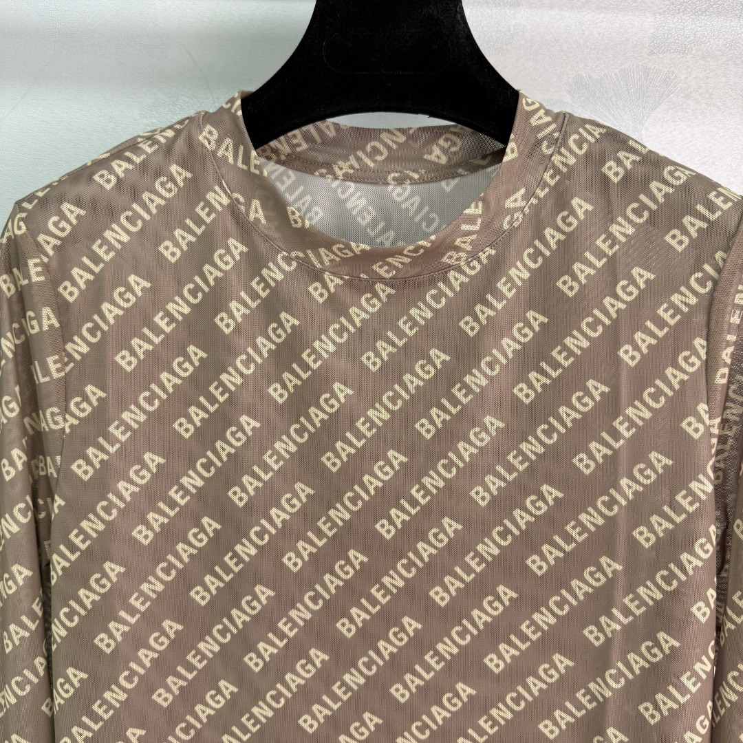 Details: New mesh base layer featuring a full-coverage logo print, designed to be breathable and lightweight with subtle transparency for chic layering options.
