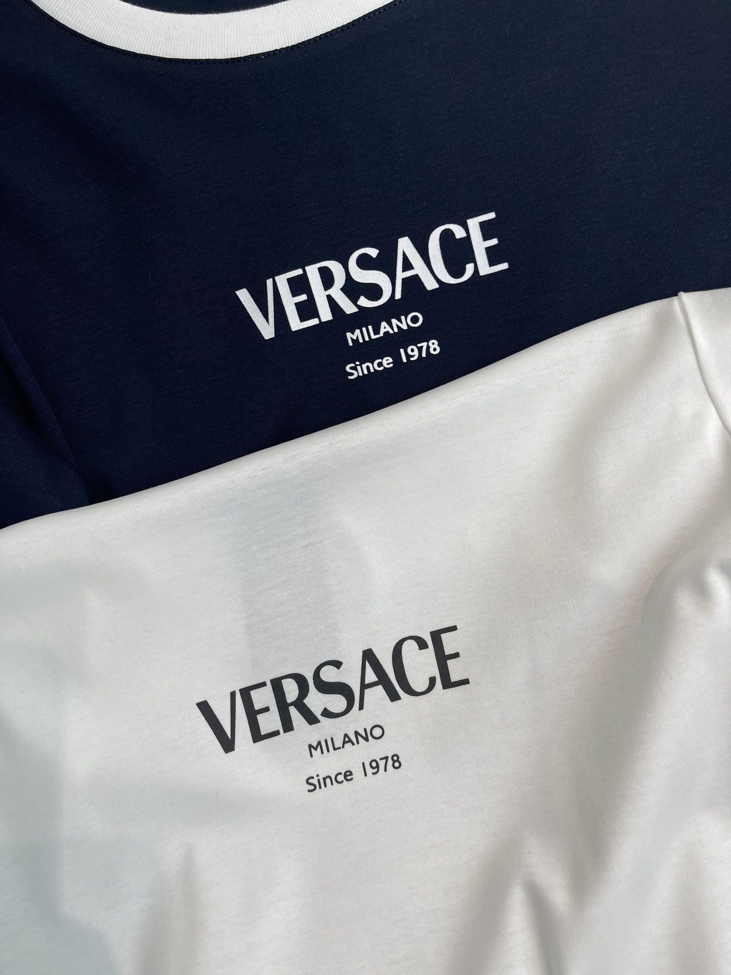 Versace Classic Logo Printed Crew Neck Tee with Retro Sporty Appeal