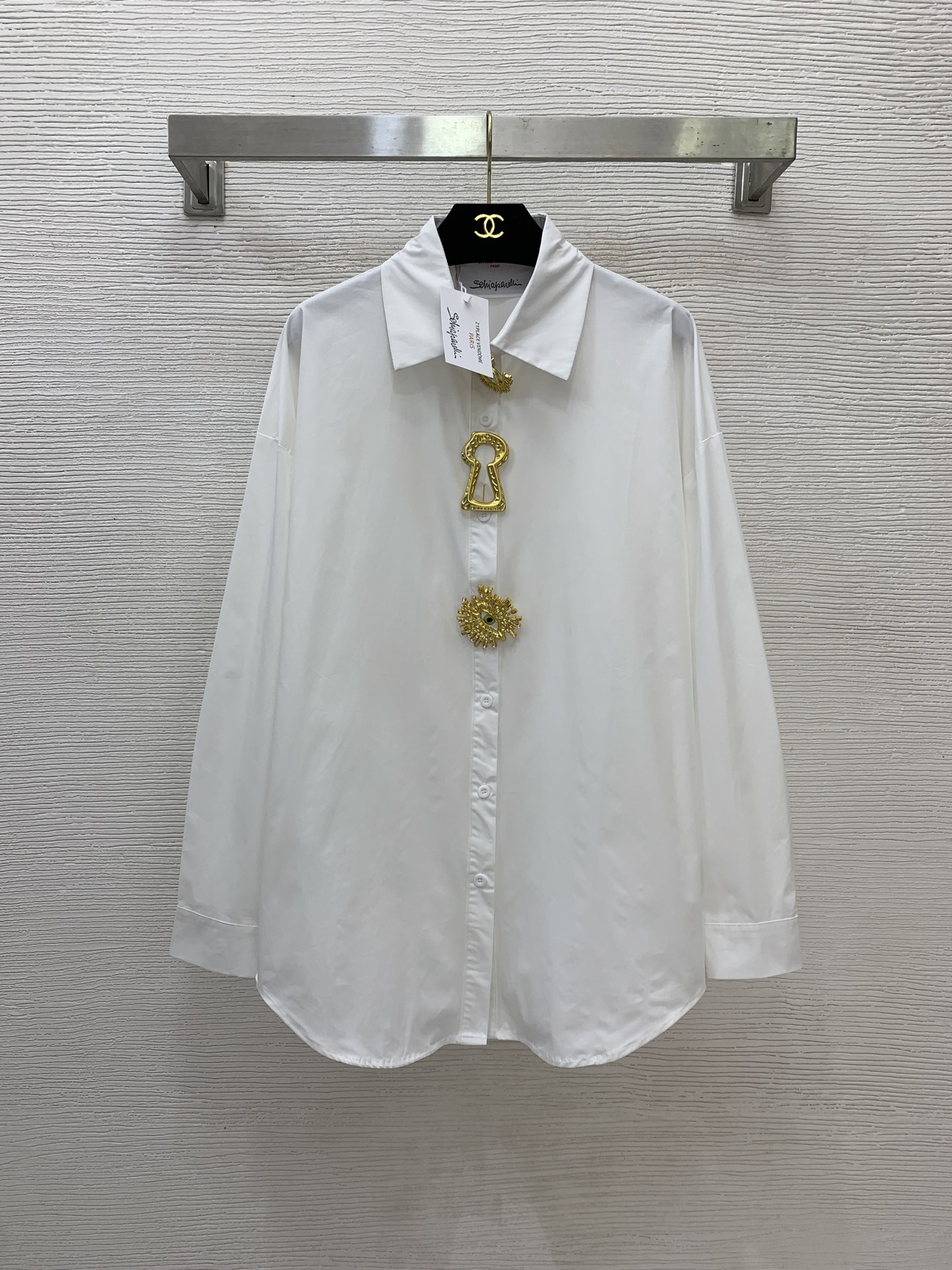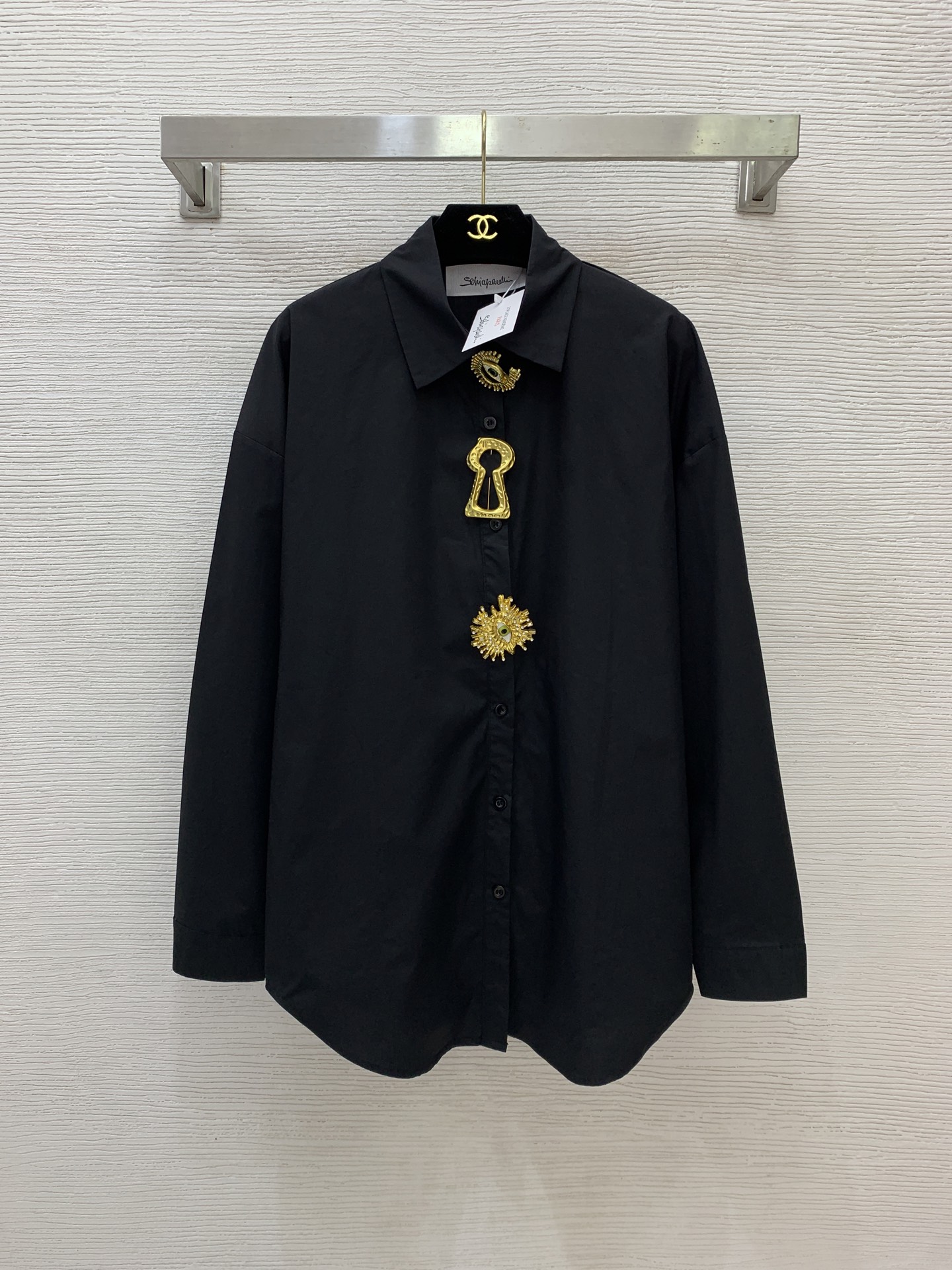 Details: New cotton shirt in black & white, size M. Features detachable gold pins and a loose fit.