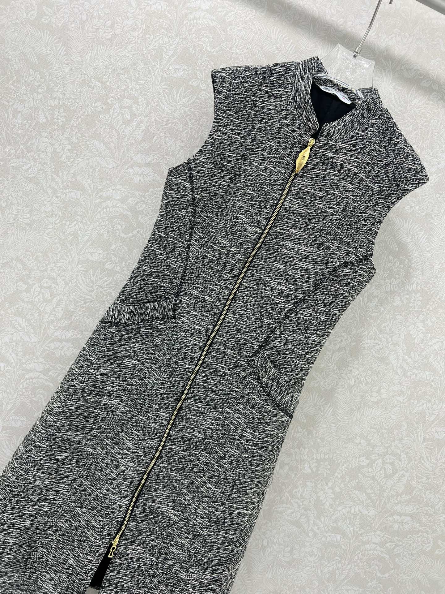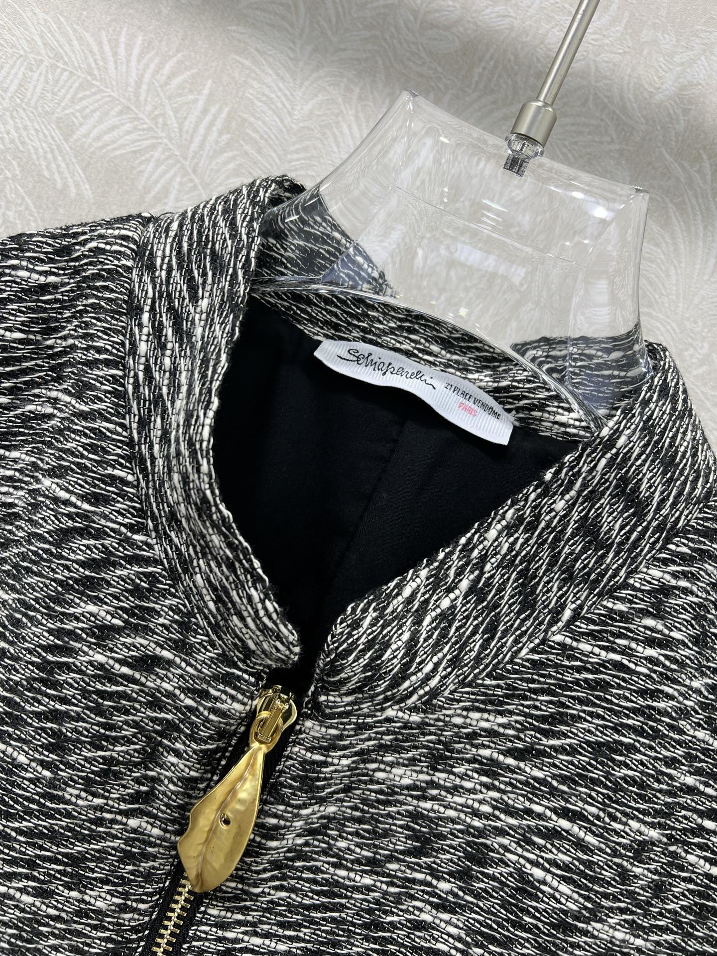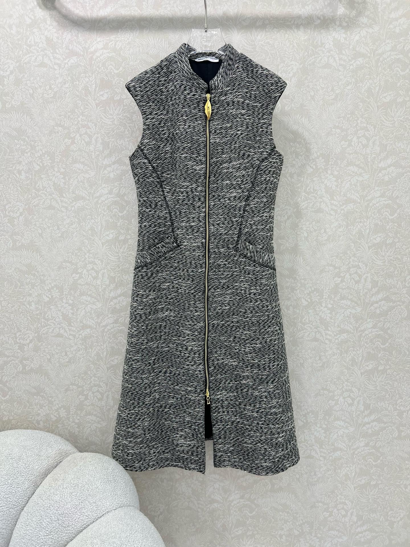 Details: new dress with Chinese collar and front zipper, gray and white tweed fabric, exquisite hardware, trendy and stylish.