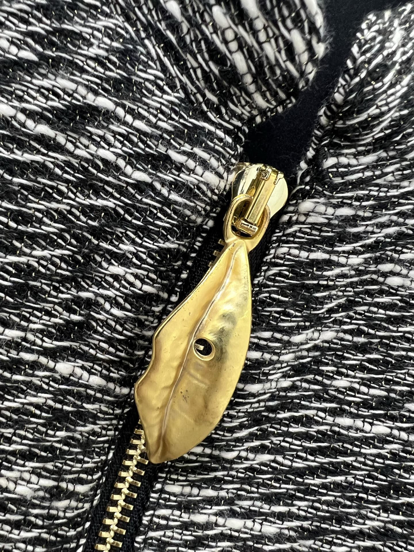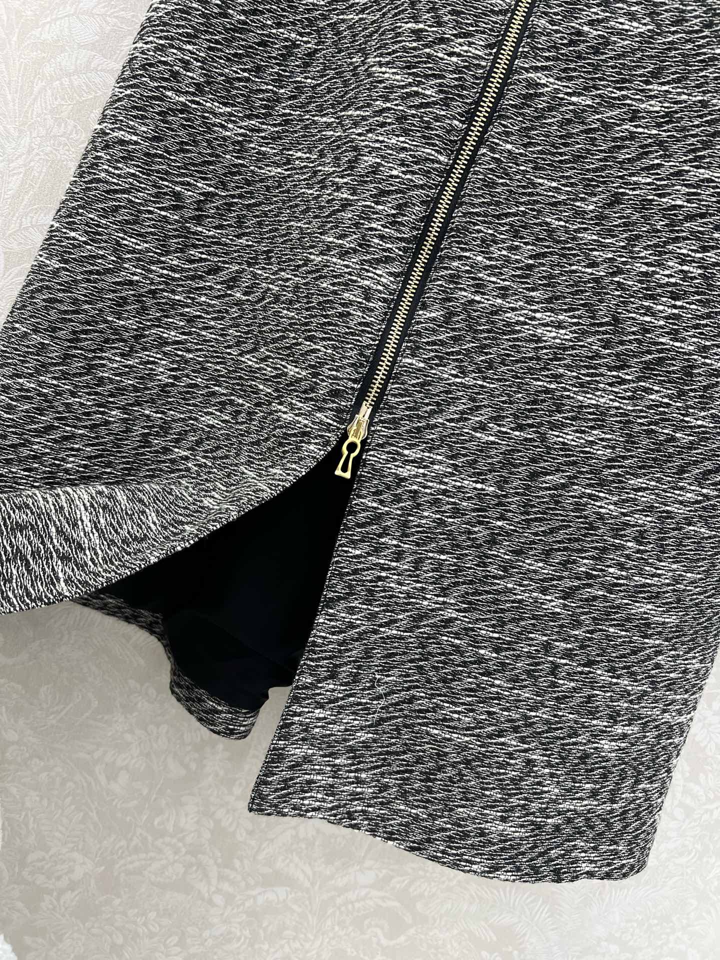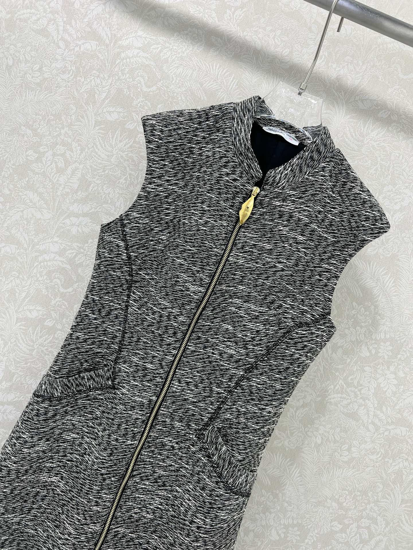 Details: new dress with Chinese collar and front zipper, gray and white tweed fabric, exquisite hardware, trendy and stylish.