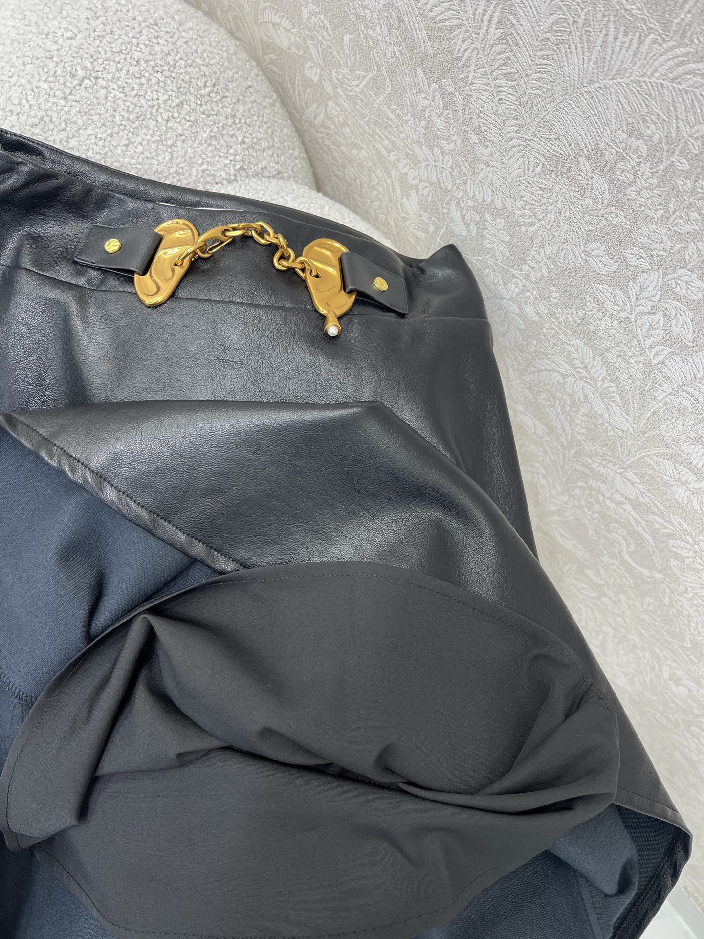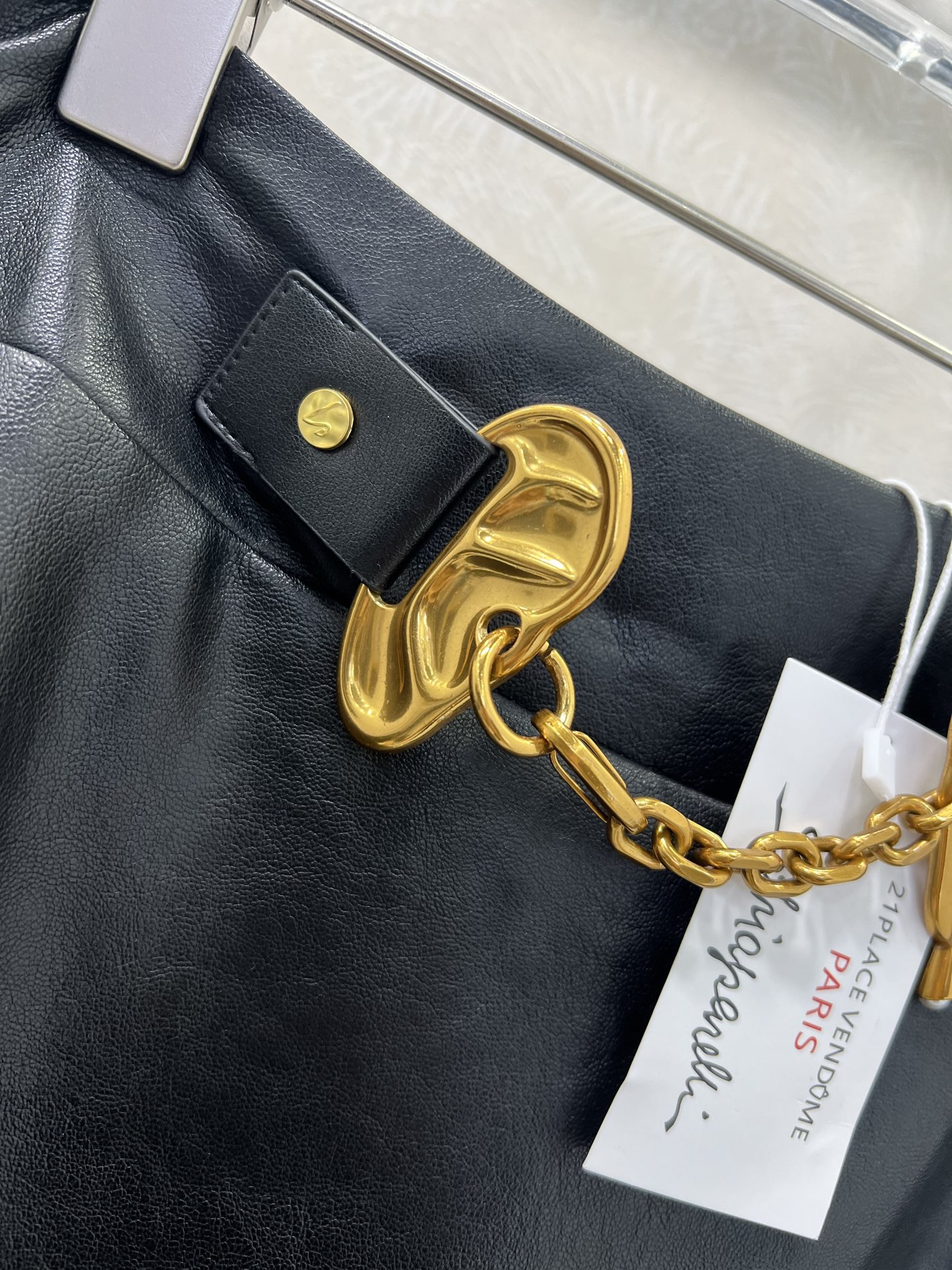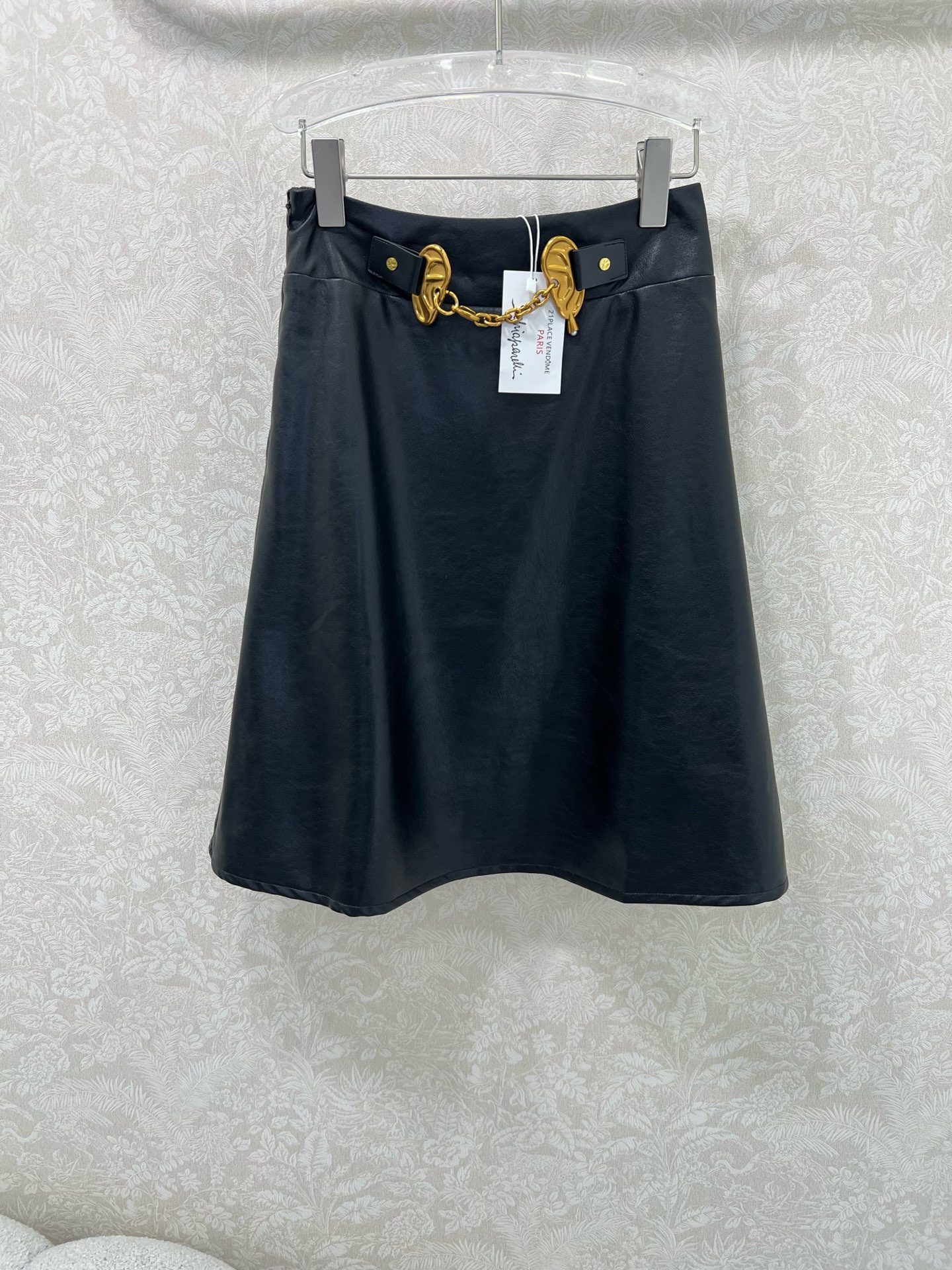 Details: New washed leather skirt with unique folds and brand hardware, lined shorts for safety.