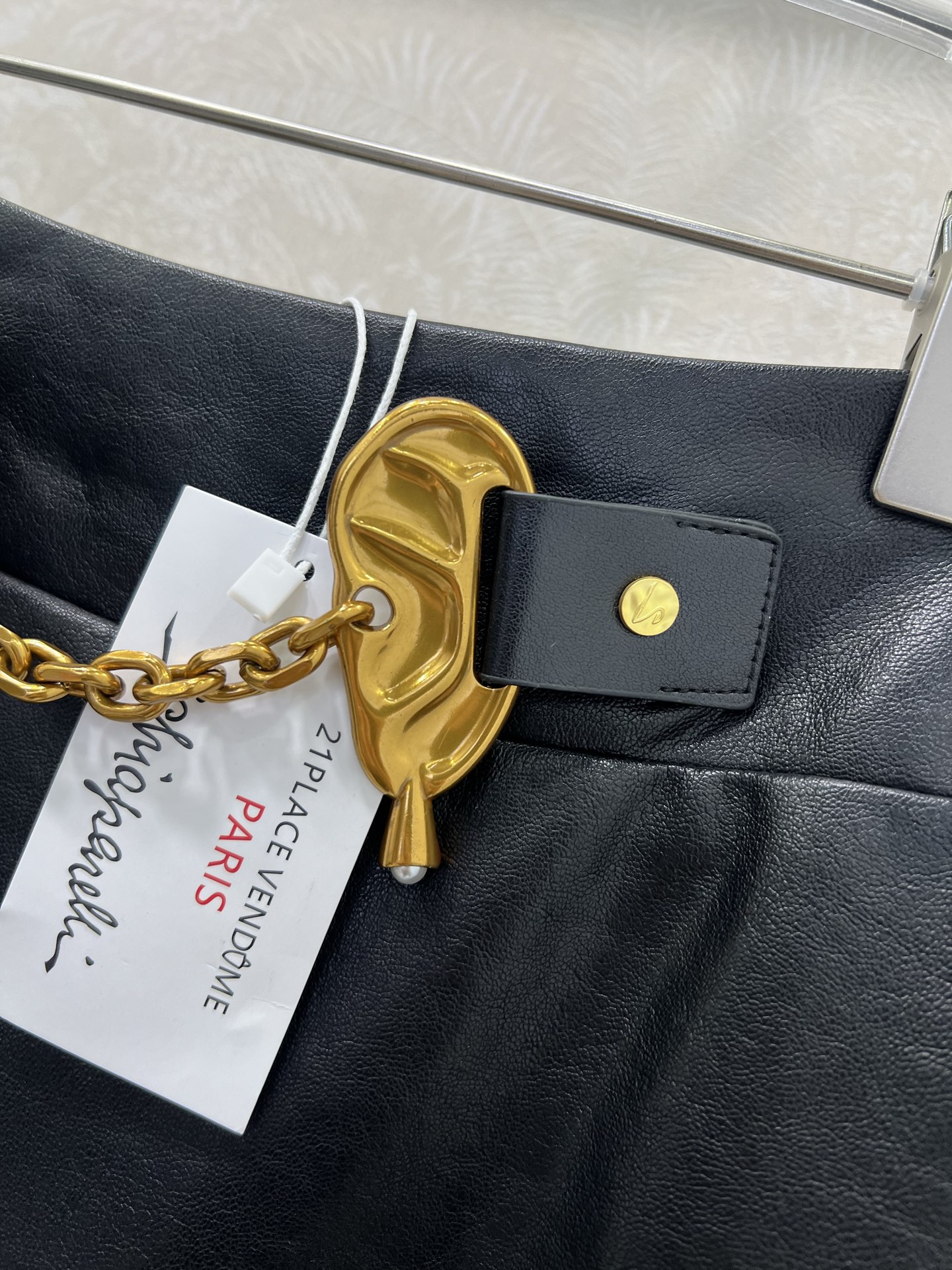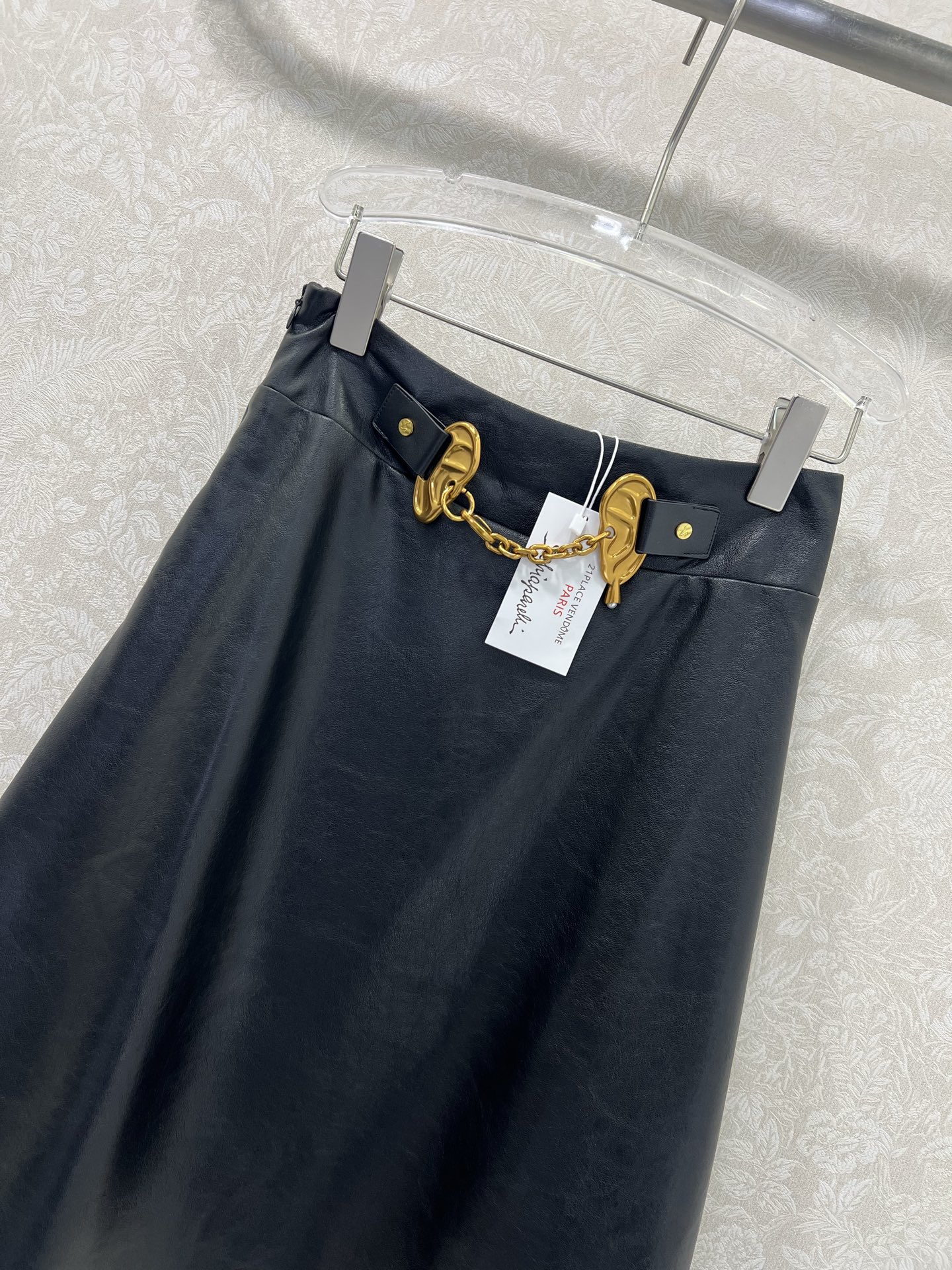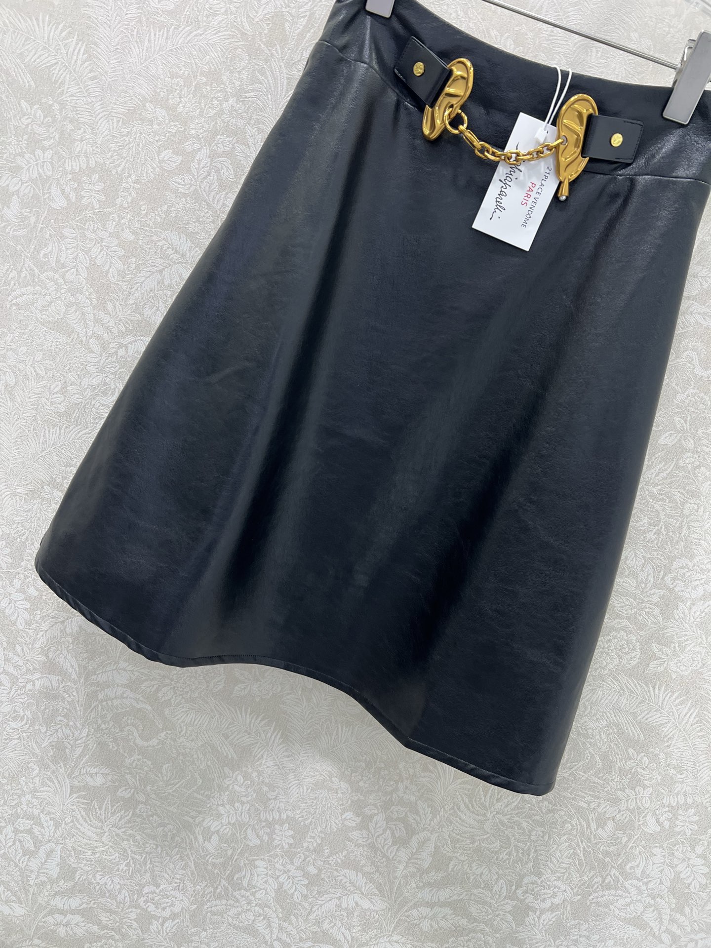 Details: New washed leather skirt with unique folds and brand hardware, lined shorts for safety.