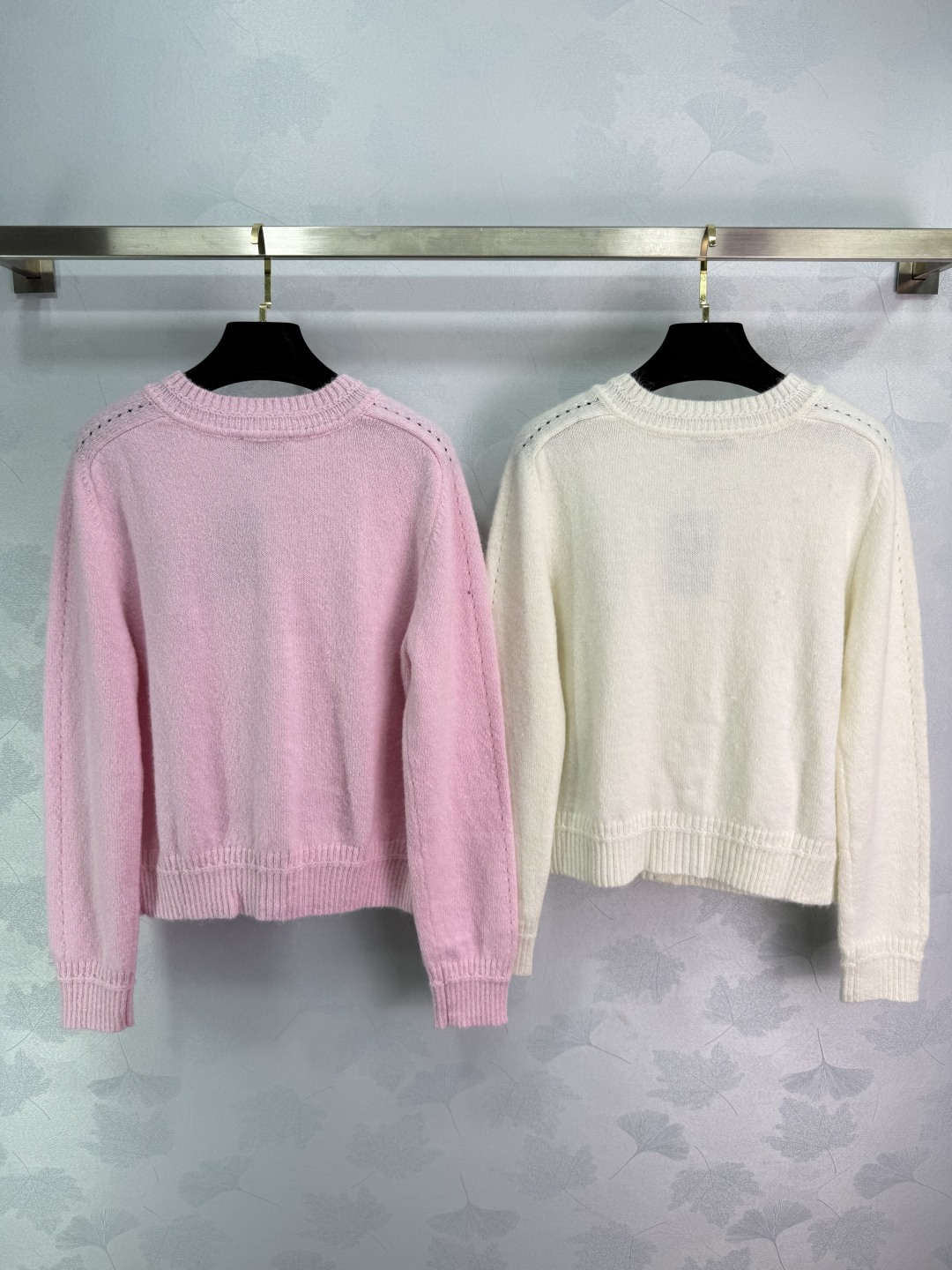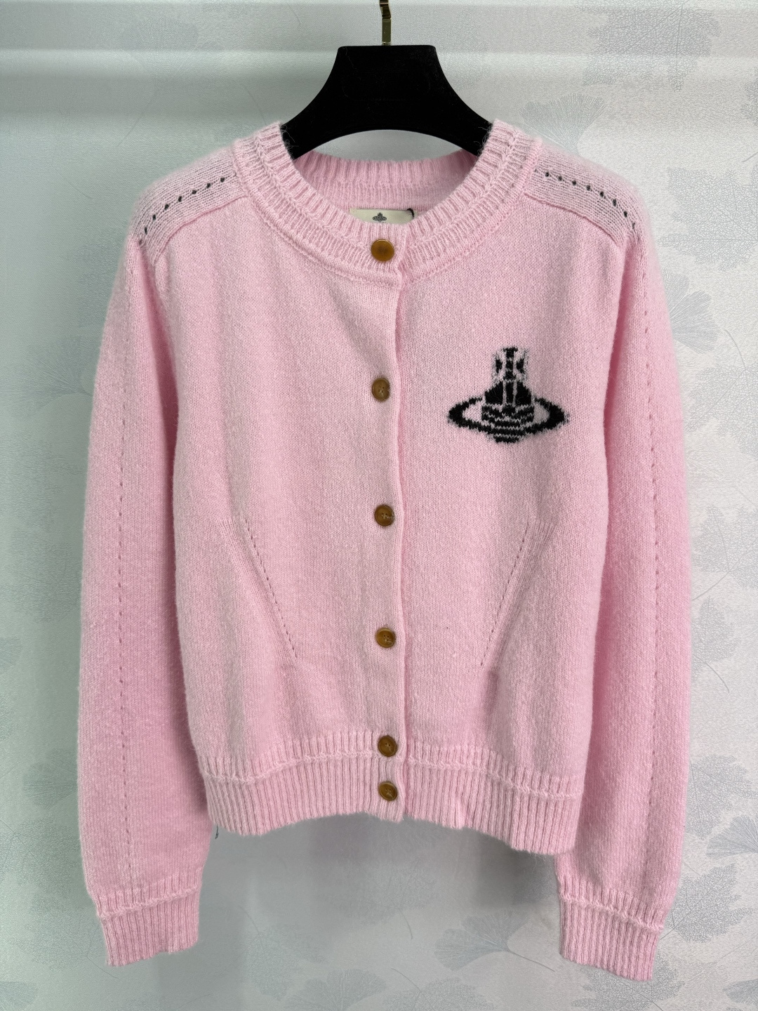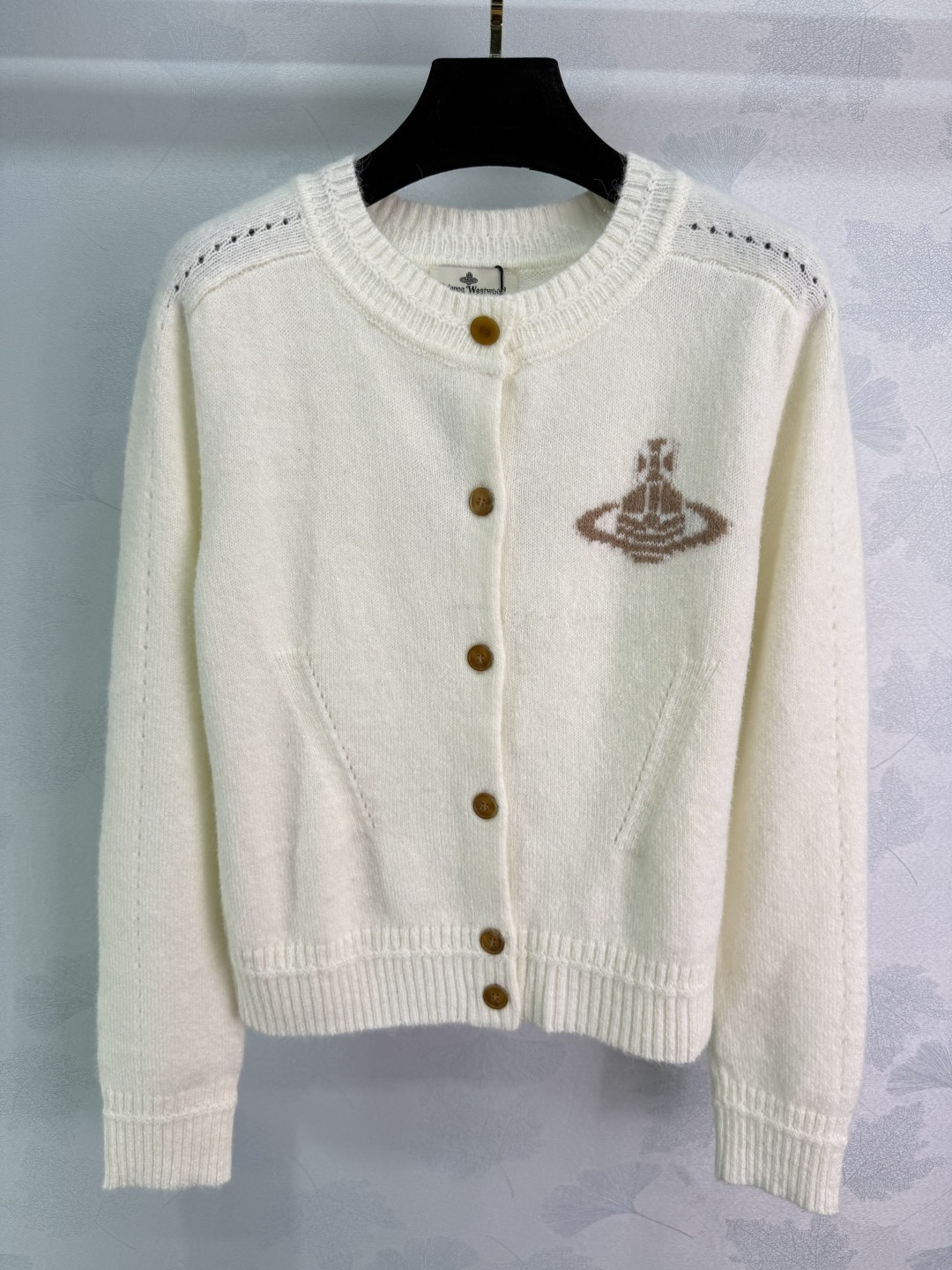 Details: Autumn new round-neck knitted cardigan with custom wool yarn, soft touch, and classic Saturn embroidery.