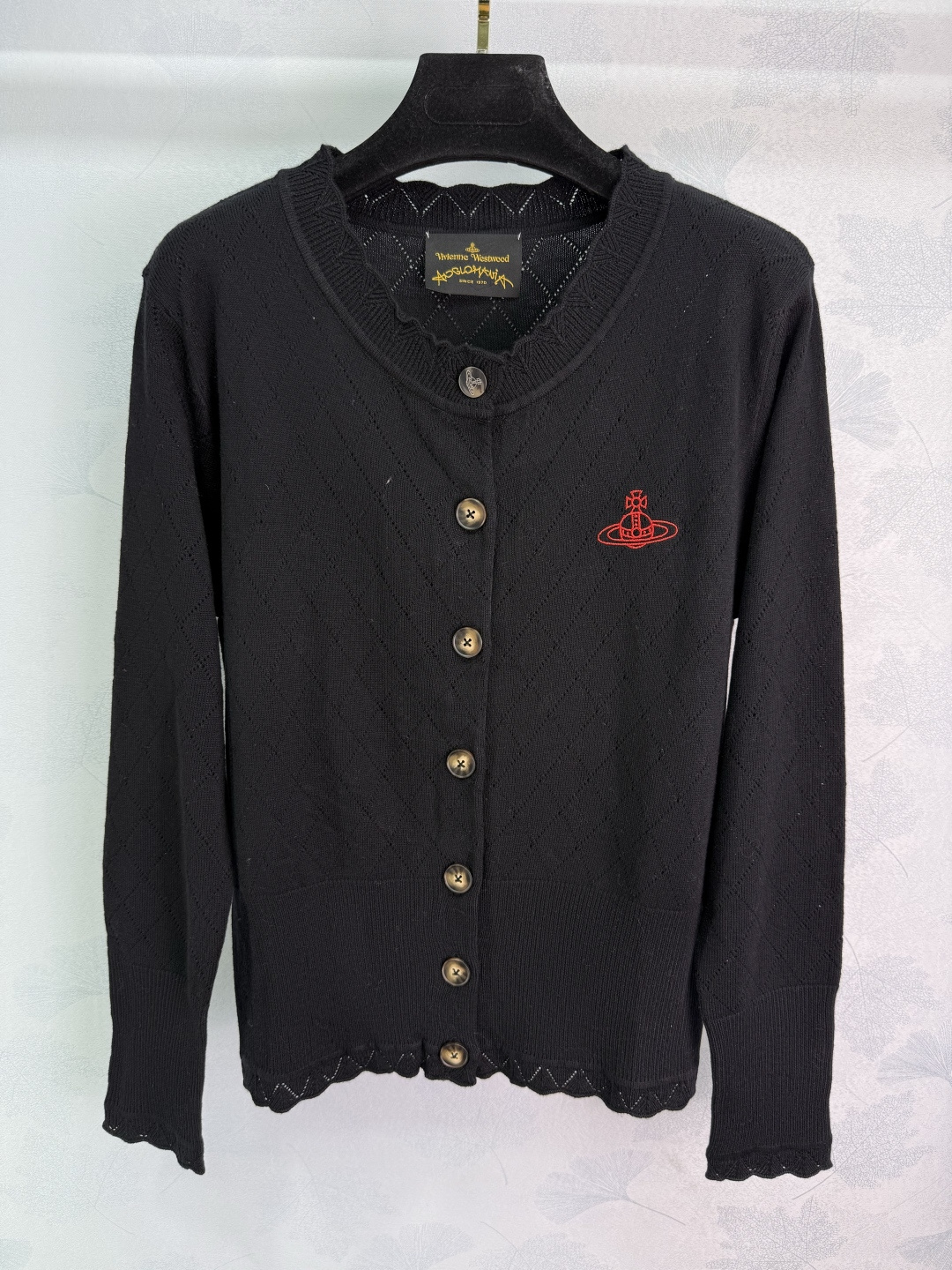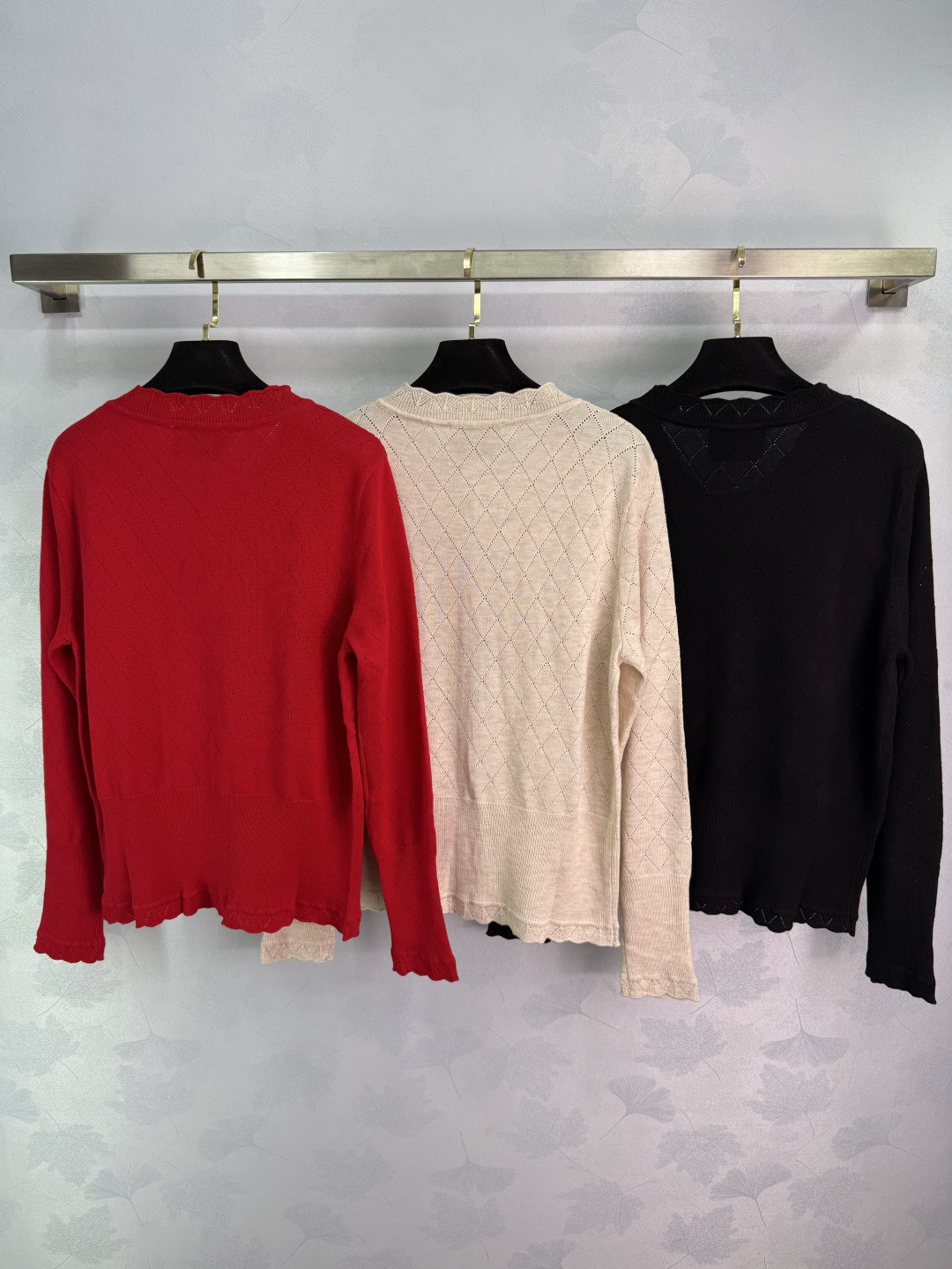 Details: New autumn knit cardigan with round neck and wave trim, small logo embroidery, slim fit, perfect for layering in any season.