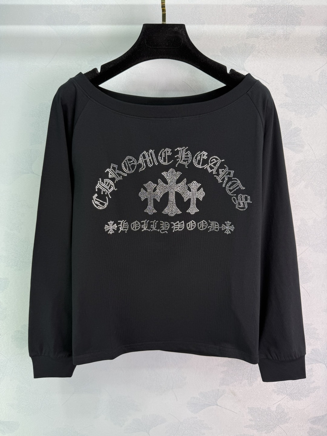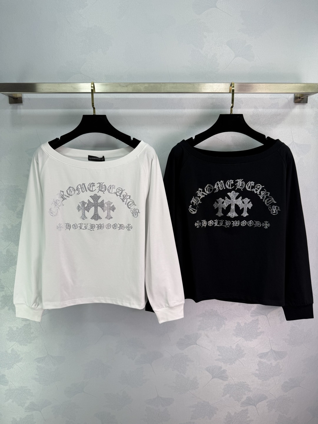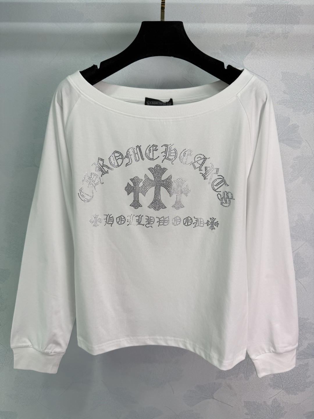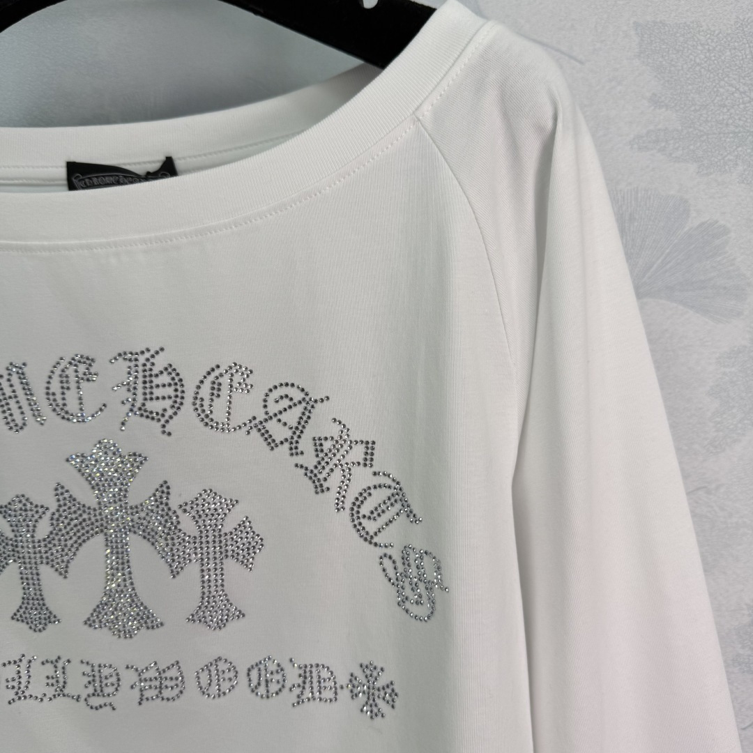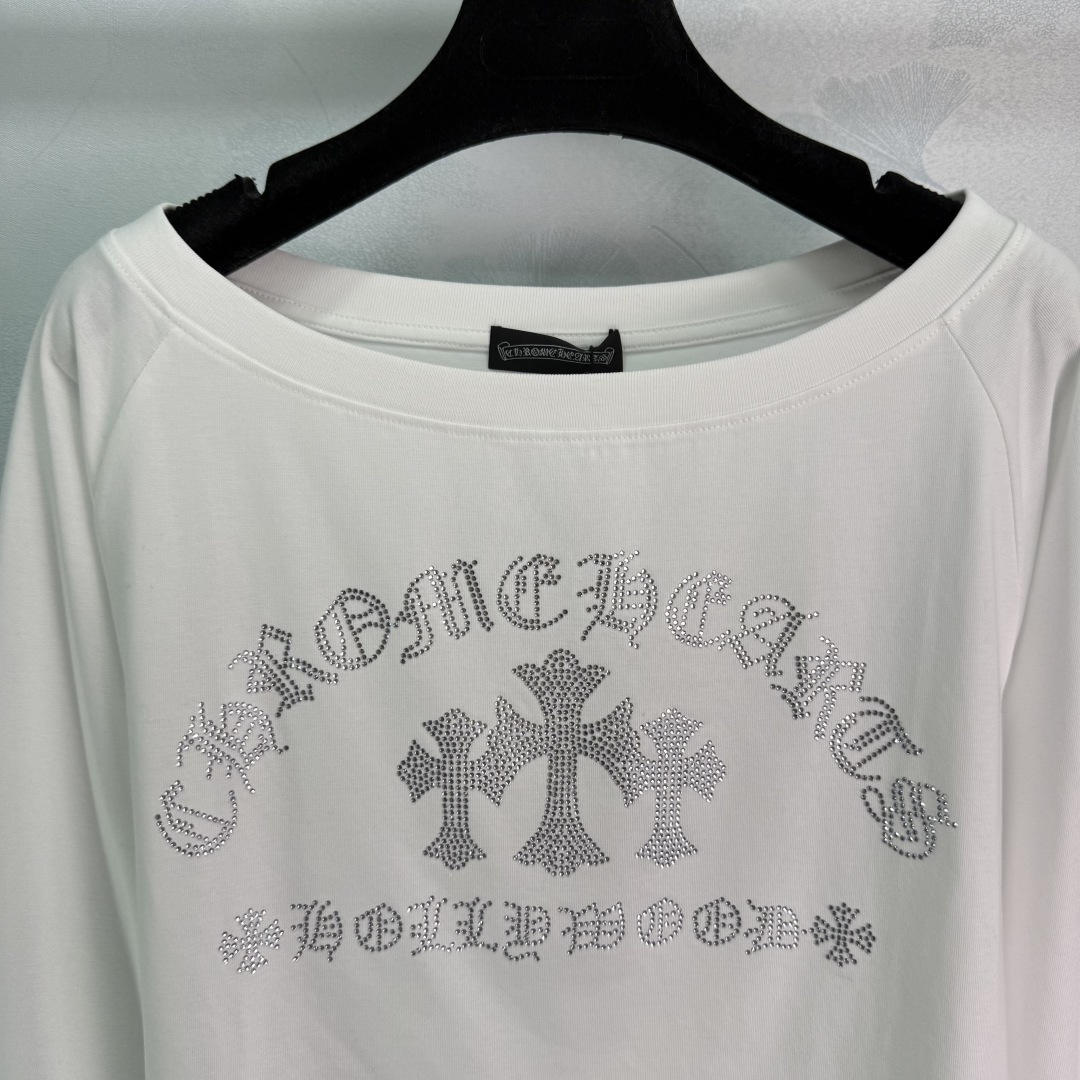 Details: New long-sleeved cotton top with two-tone rhinestone embroidery and cross design. Soft and comfortable fabric. Two colors available: white for a fresh look, black for a slim and versatile style. Off-shoulder design with a touch of sexiness, in two colors and three sizes.