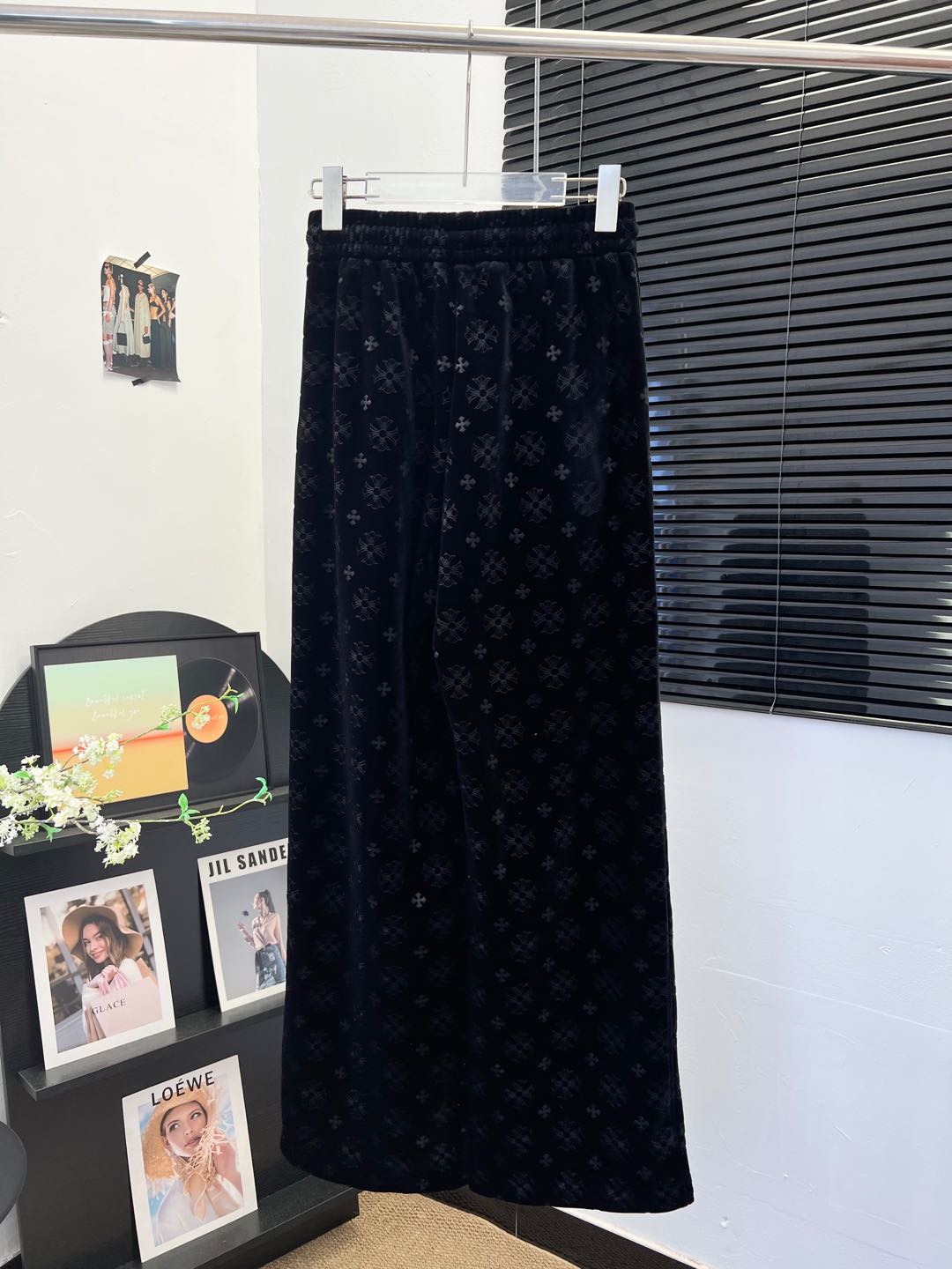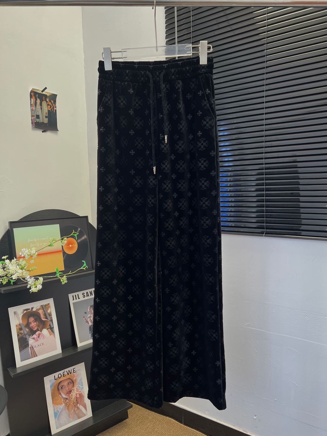 here:home > WOMENS > Chrome Hearts > Pants Chrome (W) > Chrome Hearts Velvet Casual Cross-Print Pants for All Figures
