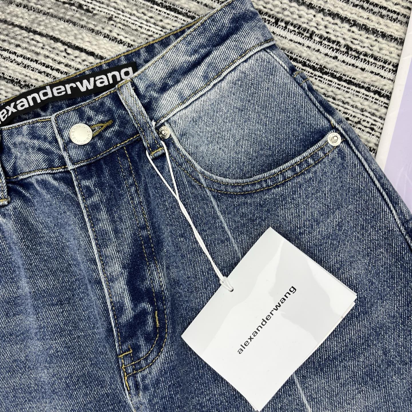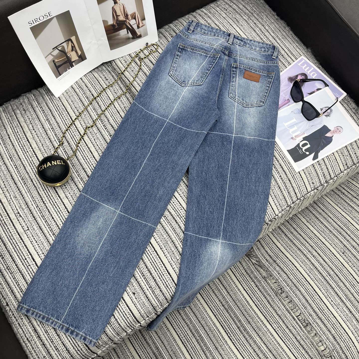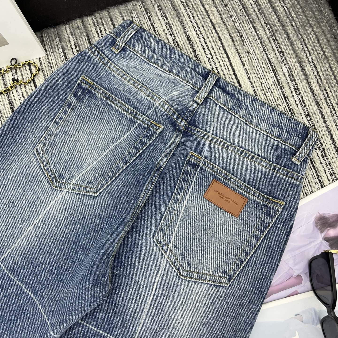 Details: Highly recommended early autumn denim wide-leg pants with letter leather patches, available in SML sizes.