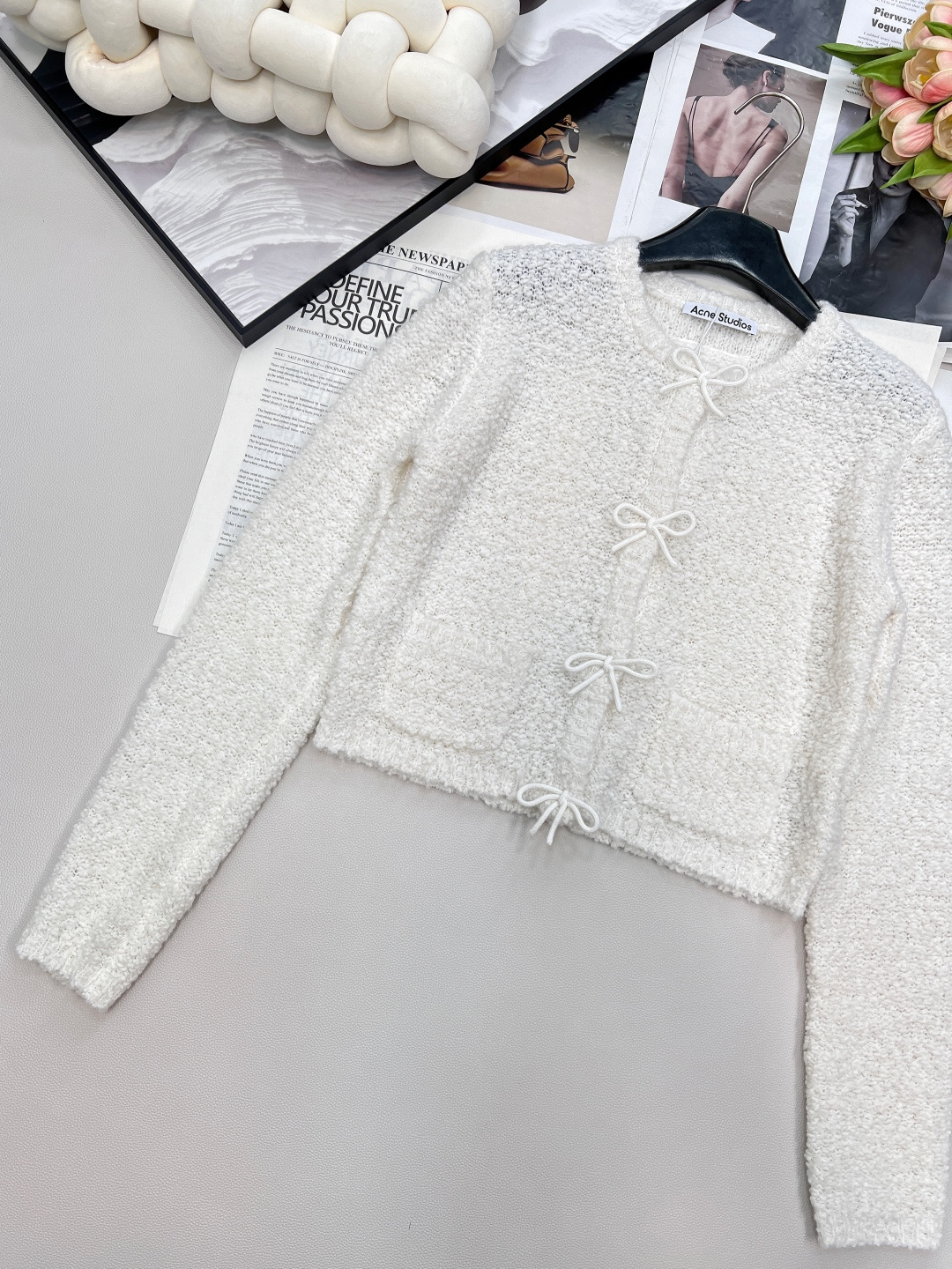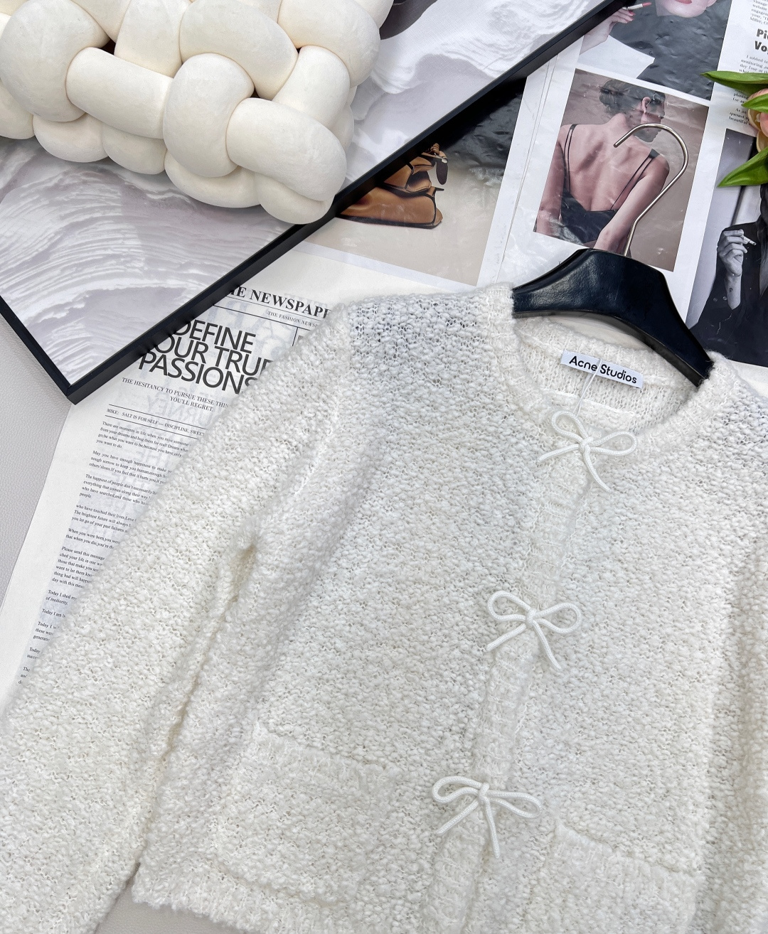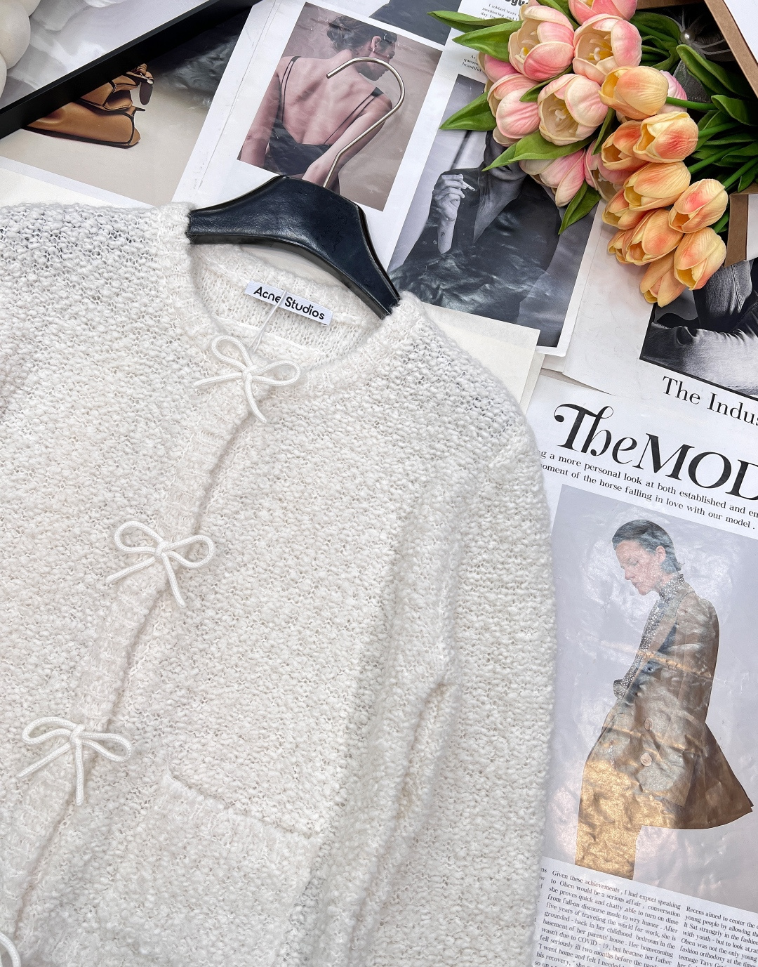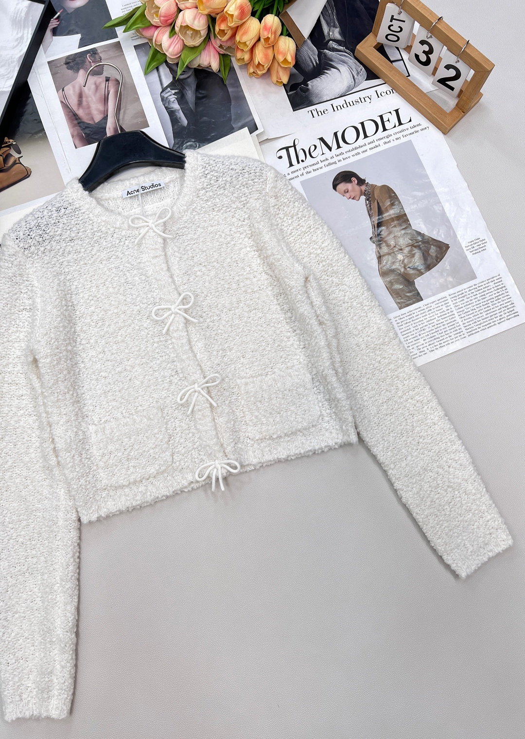 Details: Early autumn bow knit cardigan, made of special wool yarn with exquisite handmade details.