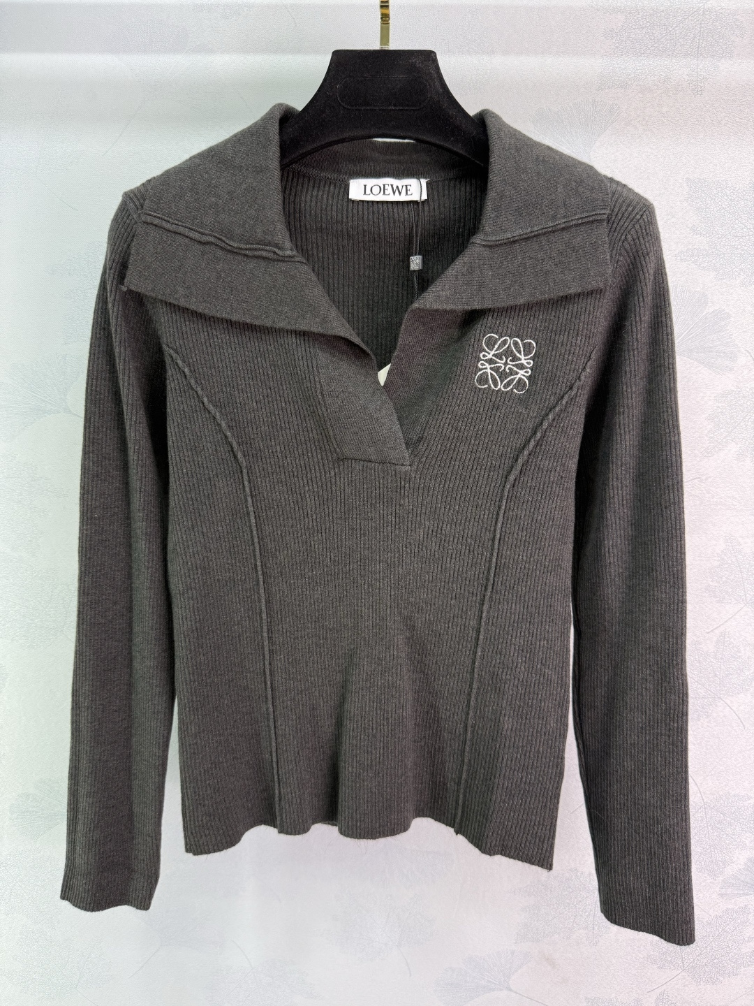 Details: Sophisticated knitted polo shirt with logo embroidery, vertical ribbed texture, suitable for all seasons.