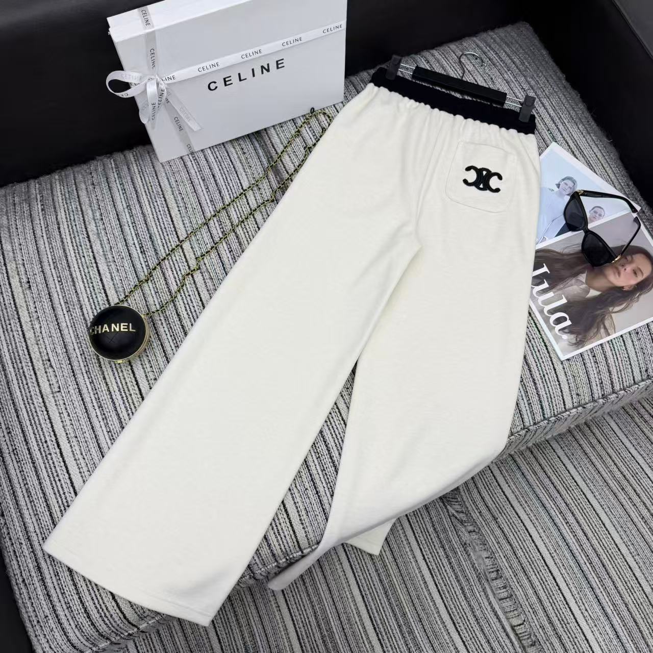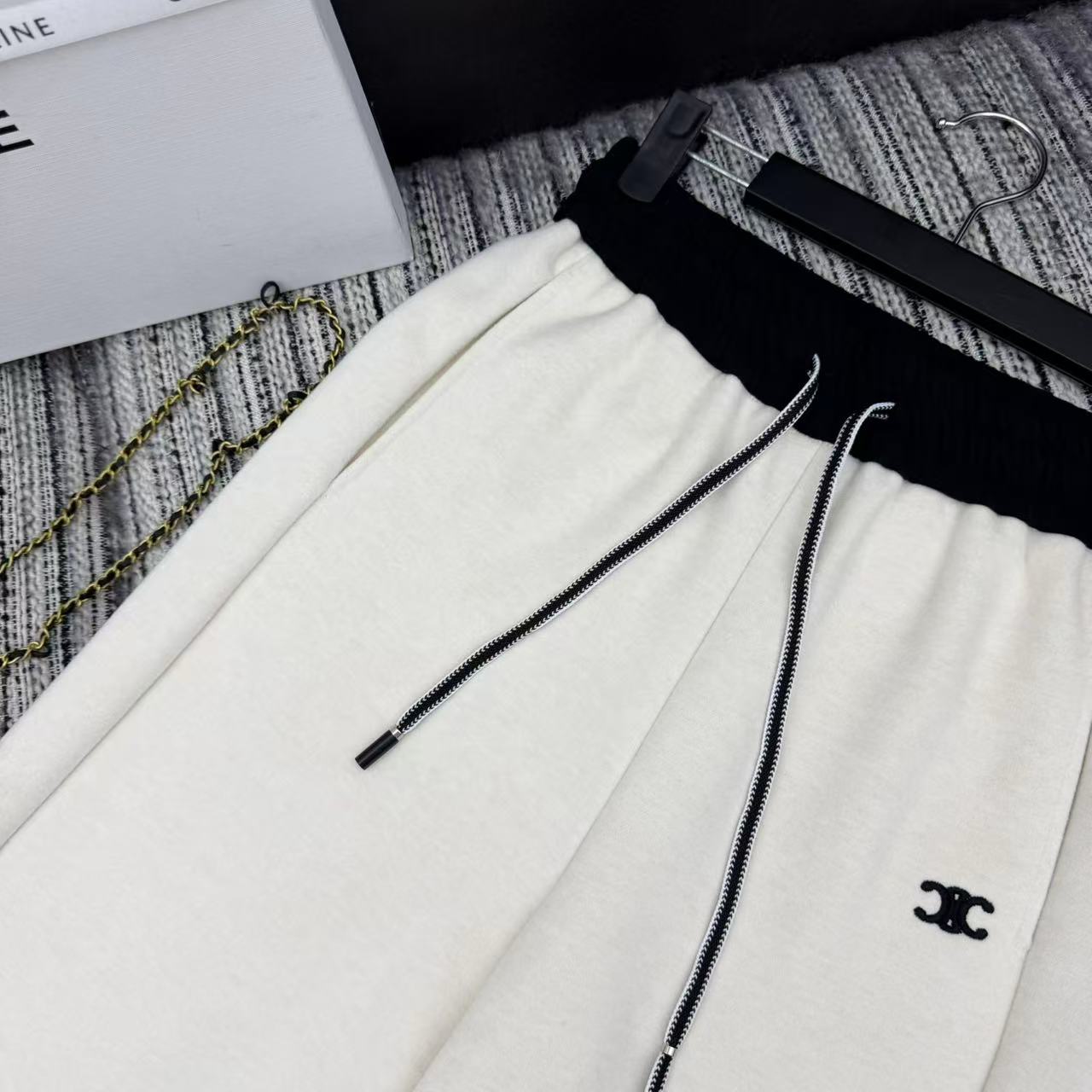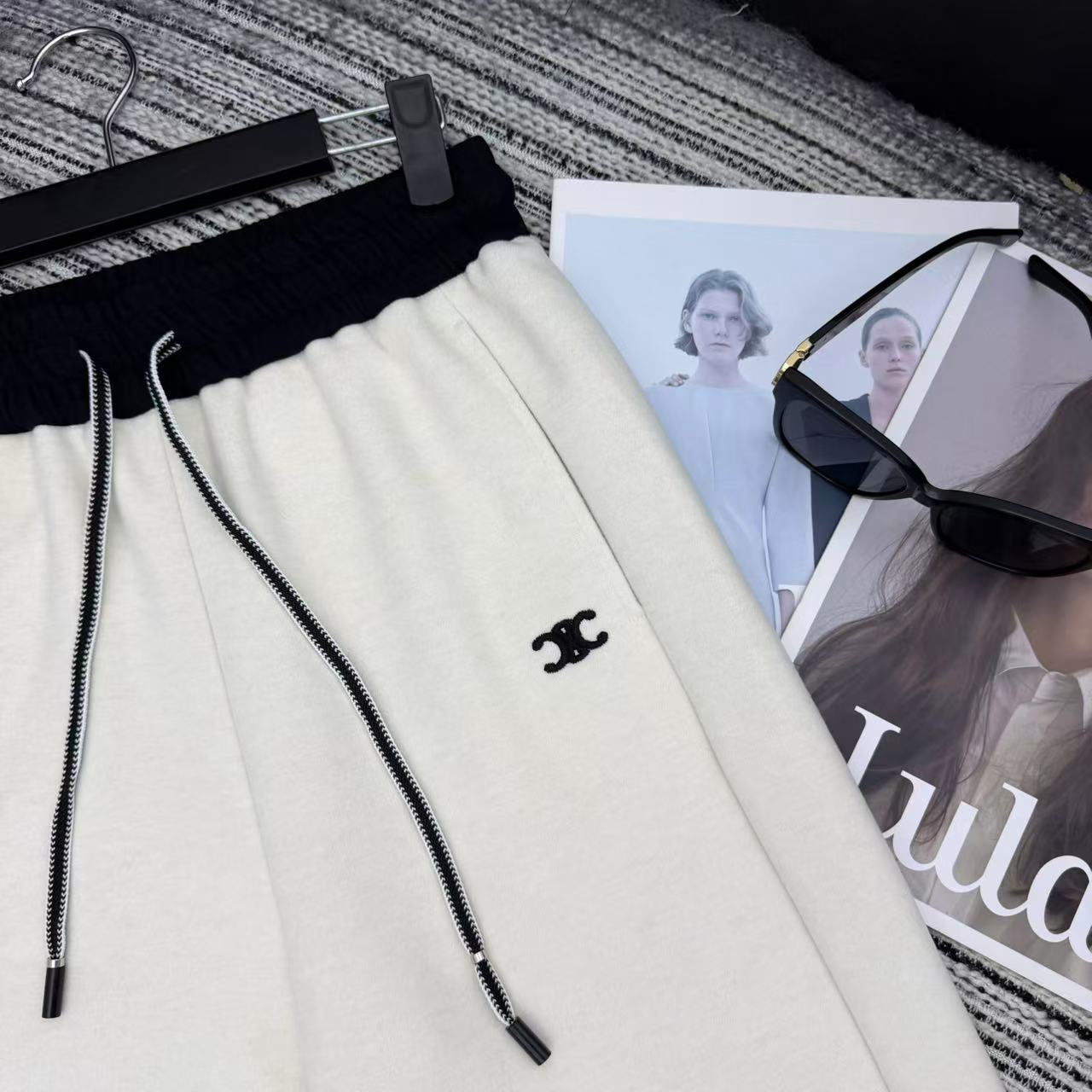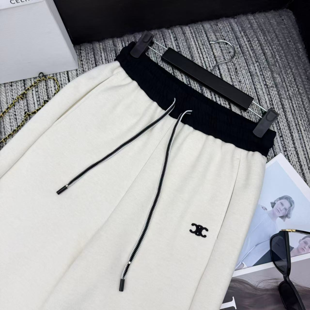 Details: New arch embroidery logo color-blocked elastic waist wide-leg pants in three colors, SML sizes.